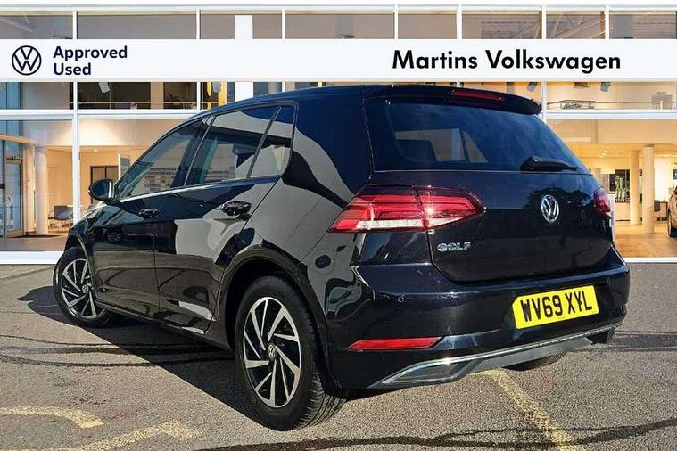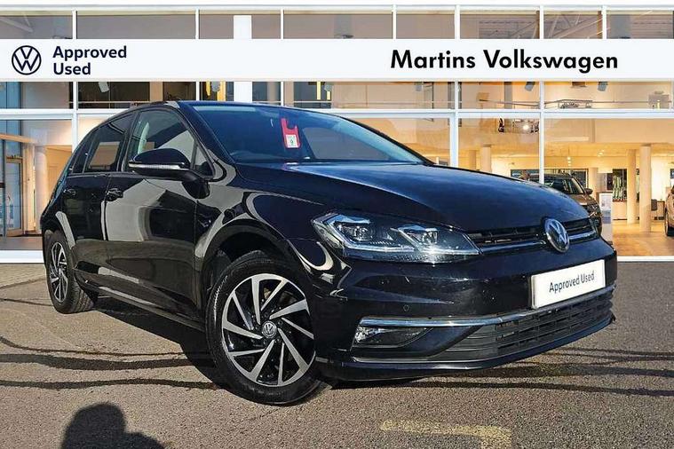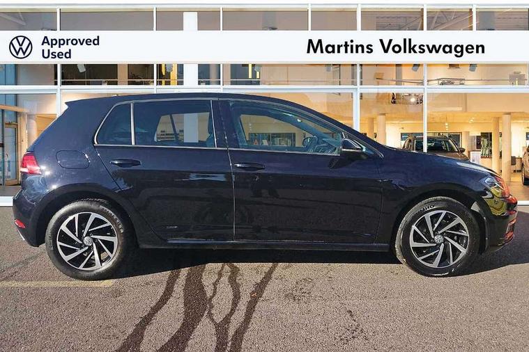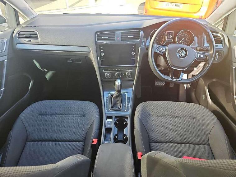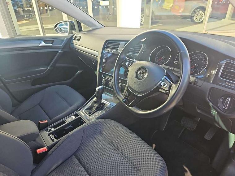 'Lights On' Reminder warning buzzer, ACC - Adaptive cruise control with front assist, forward collision warning, distance monitoring, city emergency brake and speed limiter, Bluetooth telephone and audio connection for compatible devices, Brake pad wear indicator warning light, Driver alert system, Driving Mode Selection with four preset modes - Eco, normal, sport or individual modes, Instrument cluster in white, Multifunction computer with visual gear change recommendation for fuel consumption, Power assisted speed sensitive electro-mechanical steering, Push tank flap, Speed limit display, Speedo, rev counter, electronic odometer, trip, service interval display, exterior temperature and fuel gauge, Stop/start system, Think blue trainer driver tips and journey analysis, Warning buzzer and light for front seatbelts unfastened, We Connect Go Dongle, Battery regeneration during braking, XDS electronic differential lock, Composition media system, DAB Digital radio receiver, Driver Personalisation profile selection, MP3/WMA compatability, Multi device interface (MDI) with USB connection, Personalisation 1.1 profile for media, Premium USB cable in choice of either Apple or Android smartphone compatibility, SMS Functionality, Title and cover art display, 4 X 20W output, USB connection and socket, USB and SD card connectivity, Auto dimming rear view mirror, Black front air intake and radiator grille with chrome insert, Black rear diffuser, Body colour bumpers, Body colour door handles, Body colour door mirrors with integrated indicators, Dusk sensor + automatic driving lights, Electric front windows, Electric rear windows, Electrically adjustable and heated door mirrors, Fully galvanised body, Heated rear windscreen, Hidden exhaust pipe, High level 3rd brake light incorporating LED Technology, LED front fog lights with static cornering light function, Range adjustable headlights via infotainment system with LED daytime running lights, Rear fog lamp, Rear number plate lights incorporating LED technology, Rear tinted glass 65% light absorbing from B pillar backwards, Rear window aerial, Rear window wash/wipe with intermittent wipe, Reflectors in all doors, Remote electrically foldable door mirrors, door mirror puddle lights and reverse activated kerb-view adjustment on passengers door mirror, Tailgate with integrated rear roof spoiler, Windscreen wipers/ intermittent wipe + 4 position delay, 12V socket in luggage compartment, 3 rear headrests, 4 load lashing points in luggage compartment, 60/40 split folding rear seat backrest, Auto fold down lever in rear seat backrest, Bag hook in luggage compartment x 2, Black decorative sleeve on gear handles, Cooled glovebox, Cover for storage compartment in centre, Cupholder cover, Dust/pollen filter, Front and rear reading lights X 2, Front centre armrest with storage compartment and two rear air vents, Front seat back storage pockets, Grab handles front x 2, rear x 2 with integrated coat hooks, Height and reach adjustable steering wheel, Illuminated vanity mirrors, Instrument lighting white adjustable panel illumination, Interior light delay, Isofix preparation for 2 rear child seats, Load through provision with rear centre armrest and cupholders x2, Luggage compartment lighting, Overhead storage box, Passenger underseat drawer, Pearl grey headlining, Storage box in luggage compartment, Storage compartment in roof console with cover, Storage compartments in centre console, Storage compartments in front doors, Storage compartments in rear doors, Stowable luggage compartment cover, Sun visors, Variable boot floor, height adjustable and removable, Convenience Pack - Golf, Light and Sight pack - Golf, Mirror pack - Golf, 3 rear three point seatbelts, Airbags - Driver's and front passenger's, curtain airbag, Driver's knee, front side impact and passenger's airbag deactivation switch, Anti-lock Braking System (ABS) with Hydraulic Brake Assist (HBA), Automatic post collision braking system, Child locks on rear doors, Driver/Passenger optimised head restraints, Electronic parking brake with auto hold, Electronic stability control (ESC) including Electronic differential lock (EDL) and ASR (Traction control) with deactivation via infotainment system, Front ventilated disc brakes and rear disc brakes, Pre crash preventive occupant protection, Three point height adjustable front seatbelts with tensioners, Tyre pressure loss indicator, Alarm with interior protection and deactivation via infotainment system, Electronic engine immobiliser, Brushed dark silver decorative inserts in dash and door panels, Chrome plated air vent surround, Chrome-plated light switch surround, Polar night black decorative inserts in centre console, Steel space saver spare wheel,