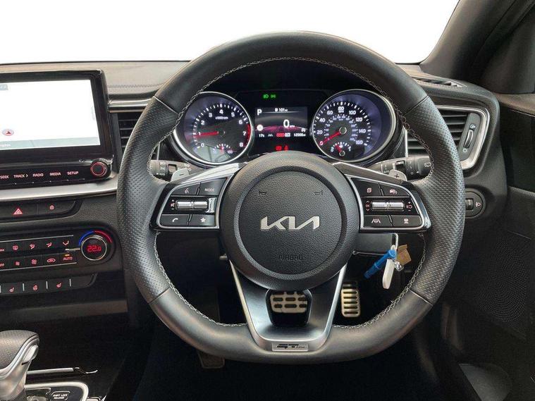 10.25" touchscreen satellite navigation, 4.2" supervision colour cluster display, Apple car play/Android Auto with voice control, Bluetooth with Voice Recognition & Music Streaming, Drive mode select (Normal and Sport), Driver attention warning + (DAW) with leading vehicle departure warning, Emergency call service, Emergency stop signalling system, Forward Collision-Avoidance Assist (FCA) - City/Pedestrian/Cyclist, Kia connect UVO, Lane Following Assist (LFA), Lane keep assist, Manual speed limit assist, Motor driven power steering, Rear parking sensor, Reversing camera system with dynamic guidelines (Integrated into centre fascia screen), Smart cruise control with stop/go functionality, Trip computer, Intelligent Stop and Go, 6 speaker audio system, DAB Radio with MP3, Illuminated USB ports, Steering wheel mounted controls, USB Fast Charger in Front Centre Console, USB type A port, All-round Electric Windows with Front Auto Up & Down Function, Auto dimming rear view mirror, Automatic defog system, Automatic headlights control, Body colour bumpers, Body colour exterior door handles, Body coloured and dark chrome rear skid plate, Body coloured side sill mouldings, Dark chrome window surround, Electric adjustable/heated/folding door mirrors with LED Indicators, Heated rear window with timer, High beam assist, High gloss black and dark chrome radiator grille, High gloss black door mirrors, High Gloss Black rear spoiler - roof, LED daytime running lights, LED front fog lights, LED Headlights, LED High-mounted Brake Light, LED honeycomb rear light, LED rear combination lights, LED rear fog light, Privacy glass (rear side windows and tailgate), Rain sensing front wipers, Rear side wing doors, Rear wash/wipe, Satin chrome dual exhaust trim, Tinted glass, Wide view drivers door mirror, Windscreen Washer Level Warning, 1 x Front 12V socket, 12V power socket in luggage compartment, 3 seat bench in 2nd row, 3 x passenger assist grips, 60/40 split folding rear seat, All-round height adjustable headrests, Aluminium pedals, Black headlining, Centre console storage box/armrest, Cloth/faux leather upholstery, Cupholders in centre console, Cupholders in rear armrest, Dash illumination dimmer switch, Door courtesy lamps, Driver & Front Passenger Sunvisors with Vanity Mirror Illumination & Ticket Holder, Driver + front passenger electric lumbar support, Driver's seat height adjuster, Dual Height Luggage Area Floor, Dual zone automatic air conditioning, Faux leather door centre trim, Front and rear door storage, Front cabin map light with sunglasses case, Front Passenger Seat Height Adjuster, Front seat back pockets, Heated front seats, Heated steering wheel, Interior door lock/unlock function, ISOFIX Child seat top tethers and anchor fixings, Leather D-Cut steering wheel, Leather handbrake, Luggage area light, Luggage area parcel shelf, Luggage hooks, Rear centre armrest, Rear coat hooks, Single front passenger seat, Tilt/telescopic adjustable steering wheel, All round 3-point seatbelts, Anti-lock braking system (ABS), Brake assist system, Dual front side airbags, Dual horn, EBD - Electronic brakeforce distribution, Electronic parking brake, Electronic stability control (ESC) and vehicle stability management (VSM), Front passenger airbag cut-off switch, Height adjustable front seatbelts, Hill start assist control (HAC), Impact sensing auto door unlocking, Rear door child safety locks, Seatbelt reminder warning, Twin curtain airbags, Twin front airbags, Tyre pressure monitoring system, Alarm system, Engine Immobiliser & Deadlocks, Locking wheel nuts, Remote central door locking with fold away key, Speed sensitive auto door locking, Satin Chrome Fascia Trim, 17" GT-Line alloy wheels, Tyre mobility kit,