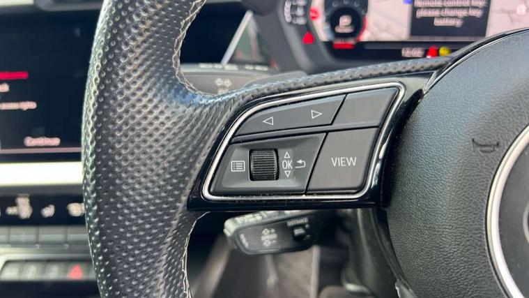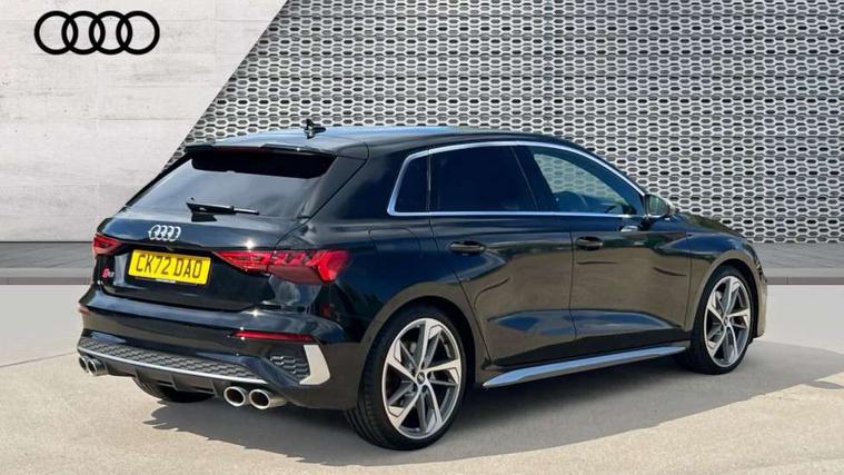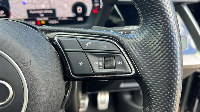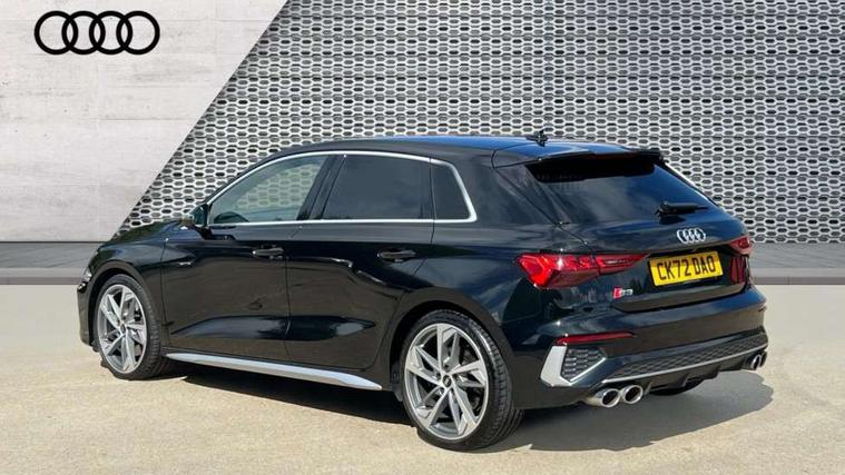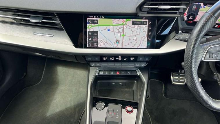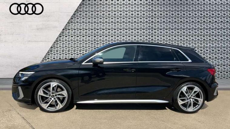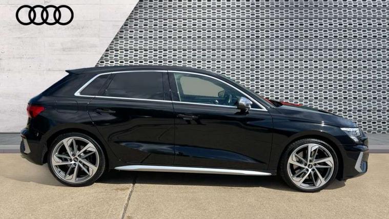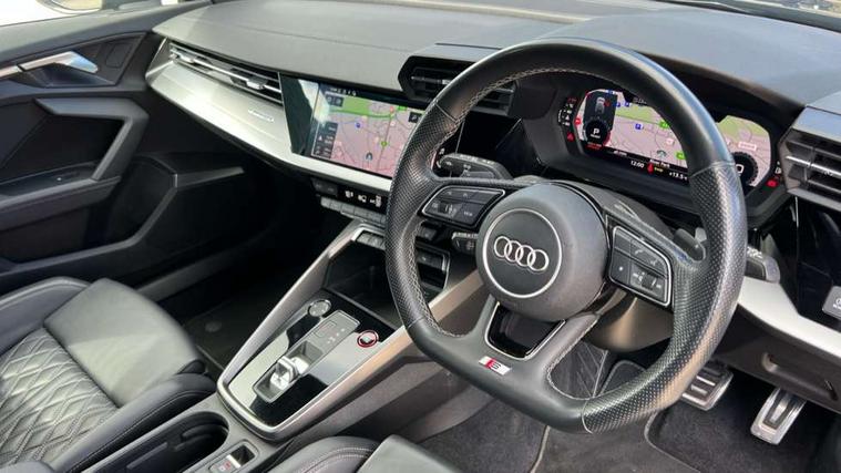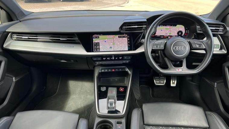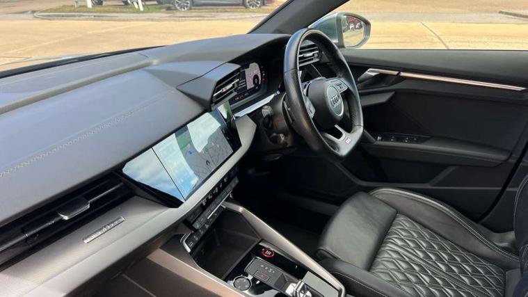 Audi drive select (Auto, Comfort, Dynamic, Efficiency and Individual), Audi smartphone interface, Audi Virtual Cockpit - 10.25" digital and colour instrument cluster, Automatic start/stop system with recuperation, Bluetooth interface, Collision avoidance assistant, e-Call (emergency call), Lane departure warning system, MMI Navigation Plus with high resolution 10.1" colour touch screen display, Progressive steering, Service indicator, Trip computer, Voice control system with natural language interaction, Quattro permanent all wheel drive, S sports suspension, 2xUSB-C connection with data and charging functions, 6 passive loudspeakers, DAB Digital radio, 3rd brake light, Acoustic glass windscreen, Aluminium window trim, Audi Beam uses LEDs to project the Audi S3 logo, Auto dimming frameless rear view mirror, Electrically adjustable/heated/folding/dimming door mirrors with kerb view includes integrated LED indications + kerb view function for passenger side, Front electric windows, Headlight washers, Illuminated aluminium inserts front door sills with S logo, LED daytime running lights, LED headlights with LED rear lights and dynamic rear indicators, Light and rain sensors, Privacy glass - dark tinted rear window, rear door and side windows, Rear electric windows, Rear side air outlets in grained matt black, Rear side wing doors, Rear wiper, 12V socket and storage compartment in front centre console, 3 seat bench in 2nd row, 40/20/40 split folding rear seat bench with cupholder, Black cloth headlining, Dual zone electronic climate control, Front and rear headrests, Front/rear floor mats, Heated front seats, Height and reach adjustable steering wheel, Illuminated vanity mirror, Interior lighting - glove compartment light and right hand side, Luggage compartment floor covering, Manually adjustable front seats, Seat side bolsters, Single front passenger seat, Stainless steel pedals and front footrest in black, Aluminium interior elements pack - A3 Sportback, Design body styling - A3 Sportback, LED interior lighting pack - A3 Sportback, Storage pack - A3 Sportback, 3x3 point rear seat belts, Audi pre sense front, Driver and front passenger airbag with passenger airbag deactivation, Electronic Stabilisation Control (ESC) including ABS, ASR and EDL, First aid kit with warning triangle and 2 safety vests, Front side airbags with head airbags and interaction airbag, Pre-sense front with pedestrian and cyclist detection, Seatbelt monitoring, Tyre pressure loss indicator, Anti theft alarm, Anti-theft wheel bolts, Electronically operated child lock, Immobiliser, Remote control central locking, Accent surfaces in the dashboard and centre console in platinum grey silk effect paint finish, Dark spectrum aluminium inlays,