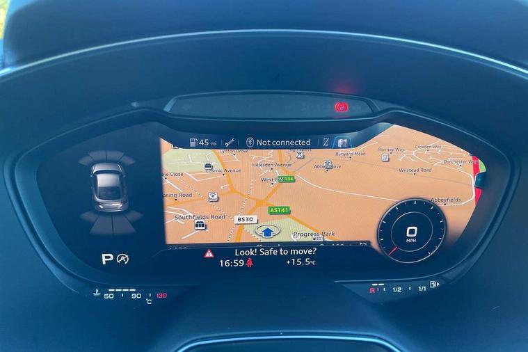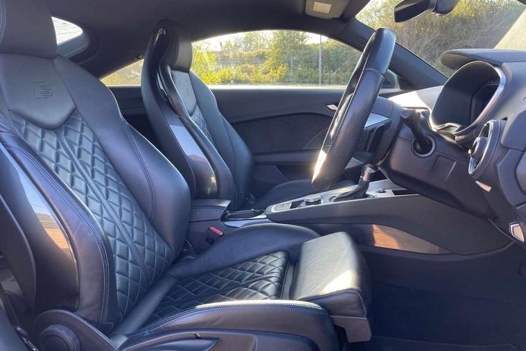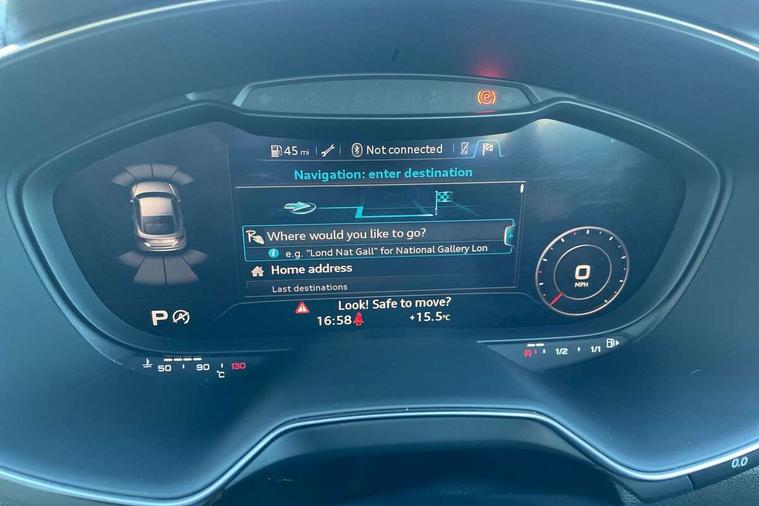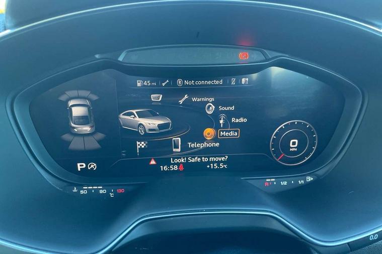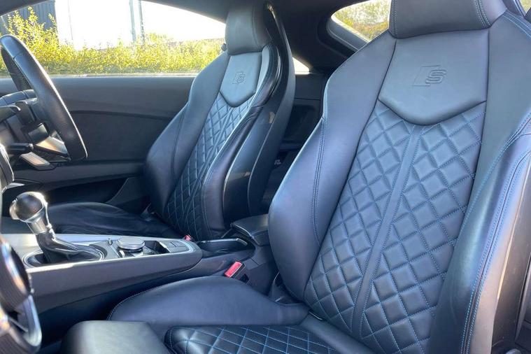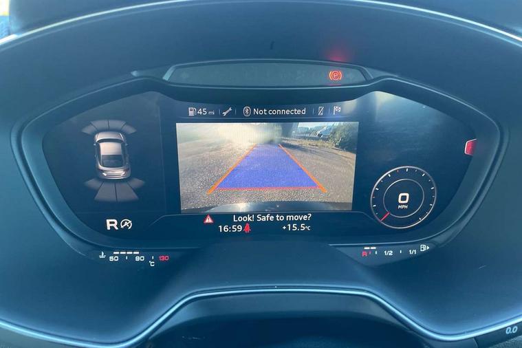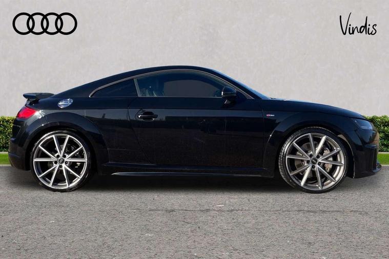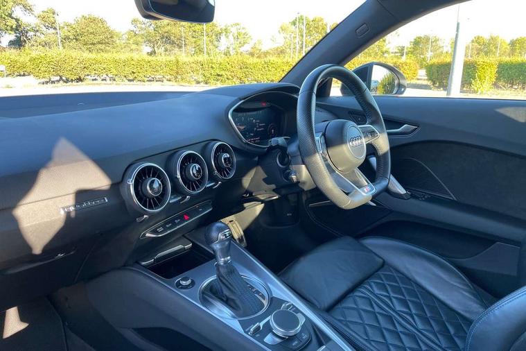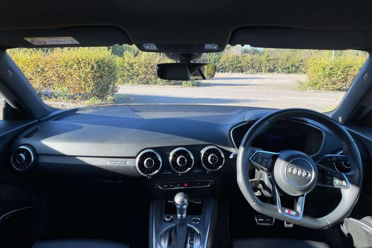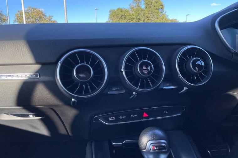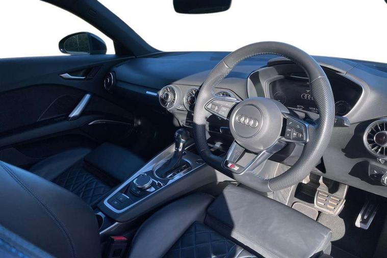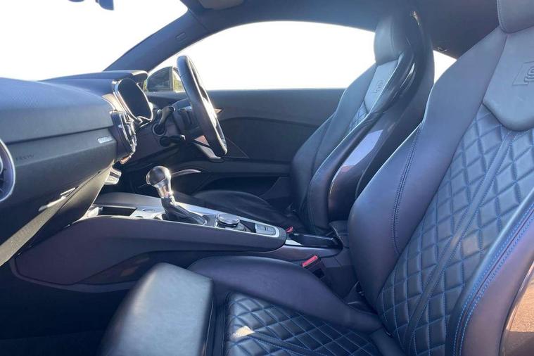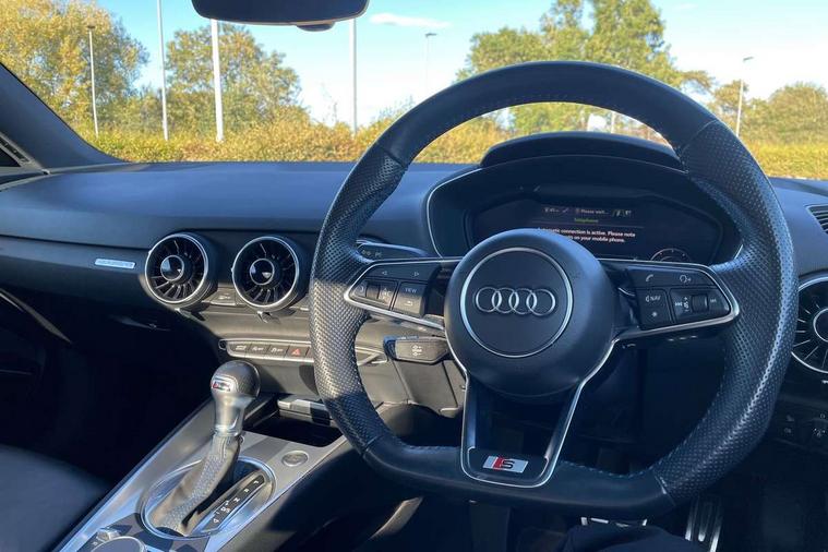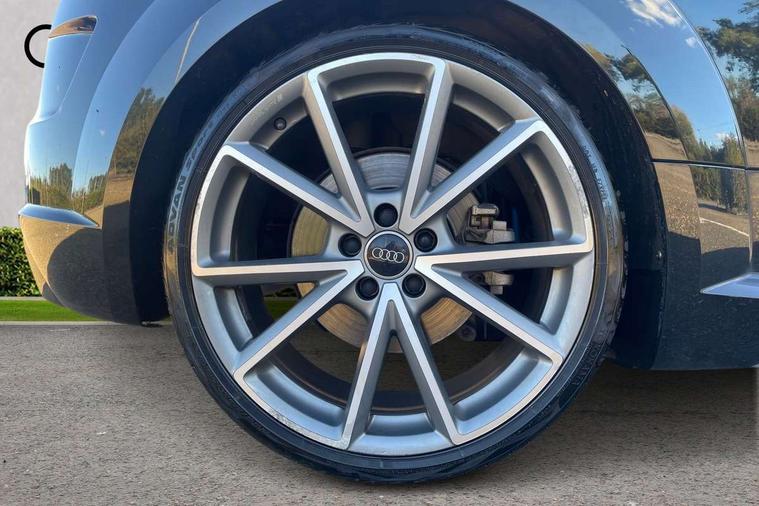 Audi active lane assist, Audi drive select with 4 Pre configured modes, Audi smartphone interface, Cruise control + speed limiter, MMI touch panel, Mobile phone preparation with bluetooth interface, Progressive power assisted steering, Service interval indicator, Start/Stop system with energy recuperation, TP memo, S line sports suspension, AM/FM radio, Bluetooth audio streaming, DAB Digital radio, MMI Radio with CD player and SD/XC card slot, Auto dimming rear view mirror, Auto headlight range control, Black chrome tailpipe, Black door mirrors, Dark privacy glass from B-pillar backwards, Dynamic rear indicators, Electric folding door mirrors, Electric front windows, Front fog lights, Green tinted heat insulating glass, Headlight wash system, LED daytime running lights, LED headlights with LED rear lights + dynamic rear indicators, Light and rain sensors, Sunband for windscreen, 12V socket, 3 spoke flat bottomed high multi-function leather sport steering wheel with gearshift paddles, 4 way electric lumbar support for driver and front passenger, Air conditioning, Black headlining, Extended aluminium look with stainless steel pedals, Front centre armrest, Front super sports seats, Heated front seats, Height adjustable driver's seat, Height adjustable front head restraints, Height/reach adjust steering wheel, ISOFIX child seat mounting for front passenger seat with airbag deactivation, Perforated leather gearknob, Rear head restraints, Rear top tether child seat ISOFIX attachment, Split folding rear seat, Top tether anchor plate for isofix child seat, Black styling pack - TT, Non smoking pack - TT/TT RS, 3 point front seat belts, ABS, ASR traction control, Brake energy regeneration, Curtain airbags, Driver and front passenger airbag with front passenger airbag deactivation, EDL traction control, Electromechanical parking brake, ESP, First aid kit, Front side airbags, Head airbags, Hill hold assist, Seatbelt warning, Tyre pressure warning, Warning triangle, Anti theft alarm, Anti theft wheel bolts, Immobiliser, Keyless Go, Remote central locking, Matt brushed aluminium inlays, Tool kit, Tyre repair kit,