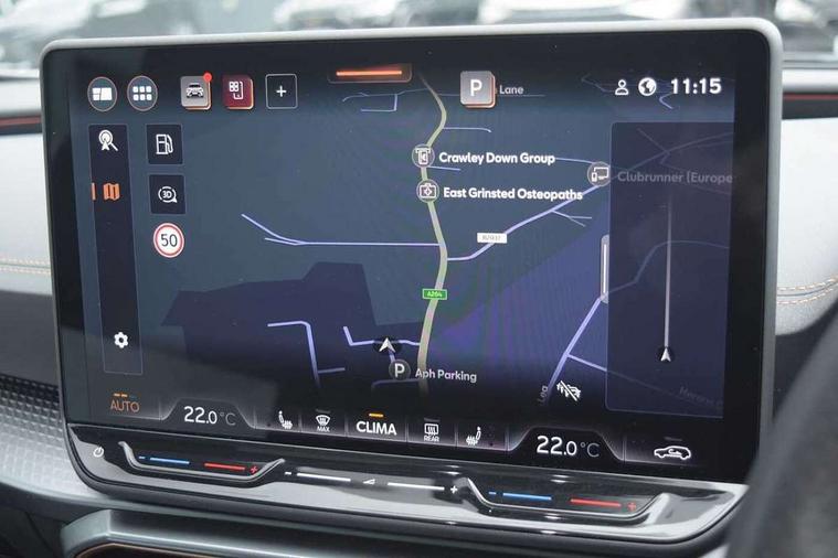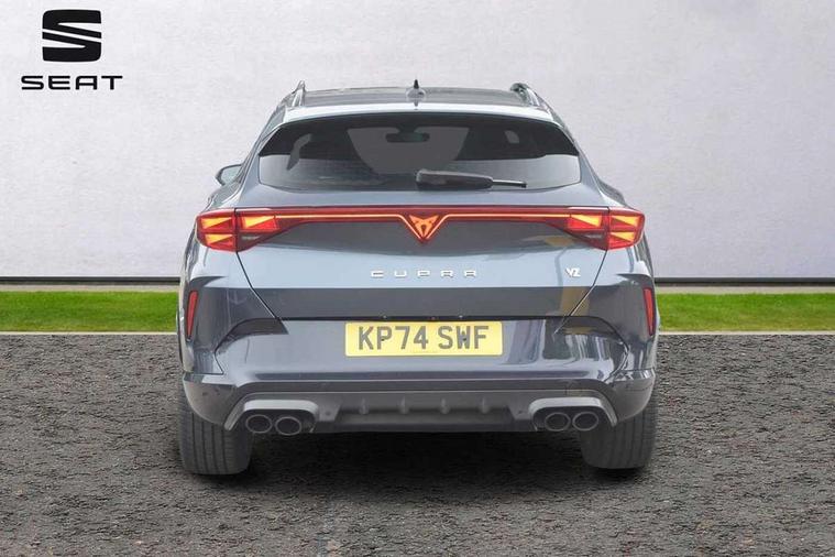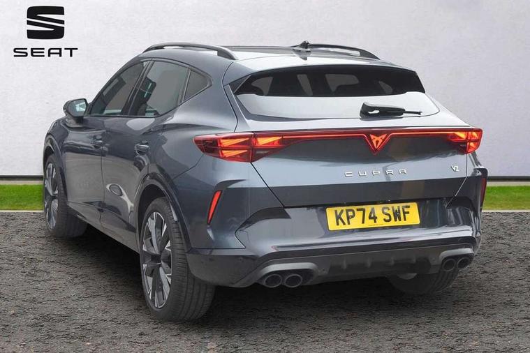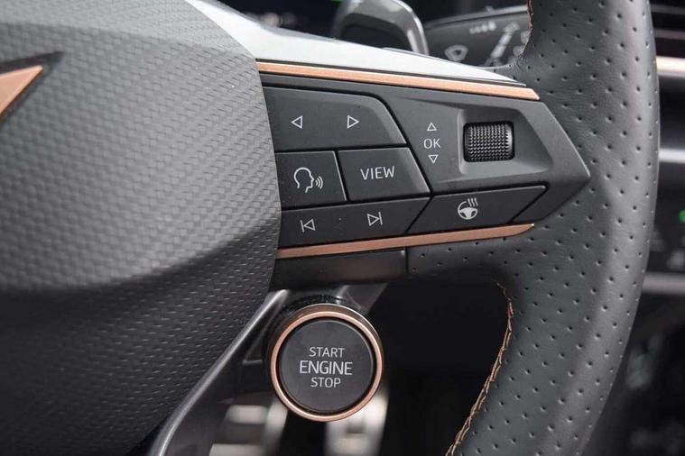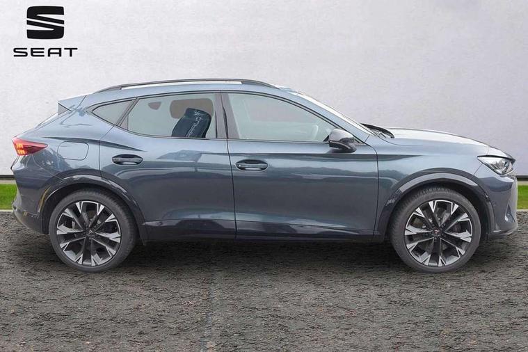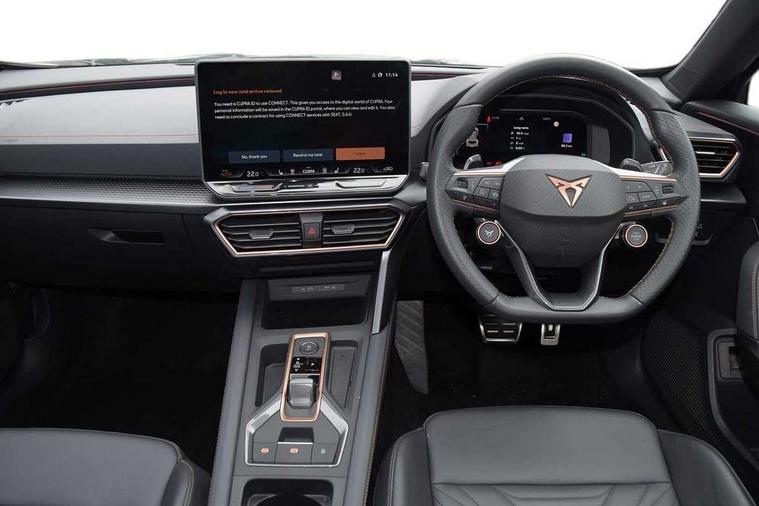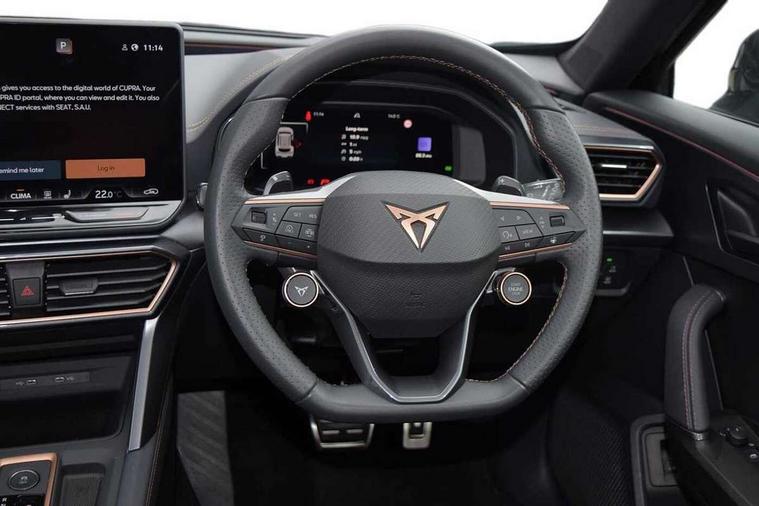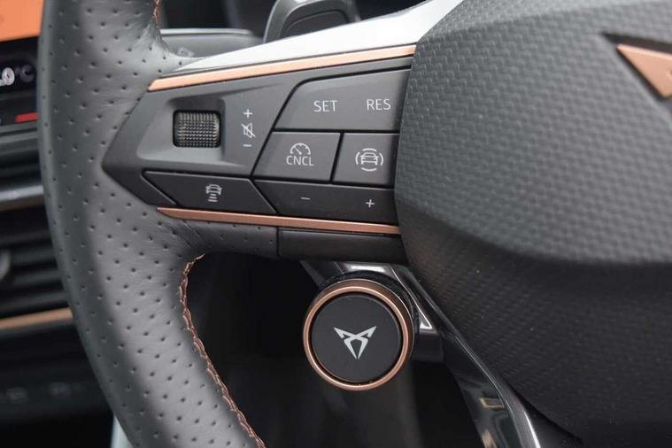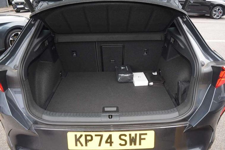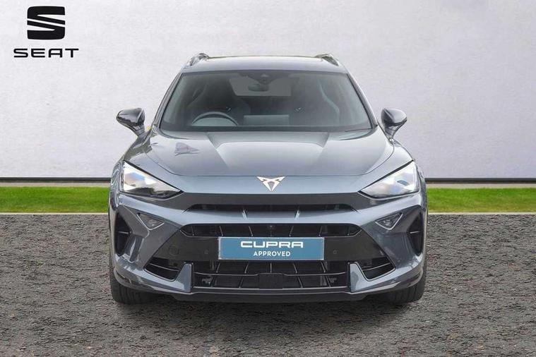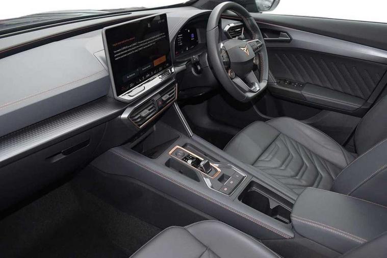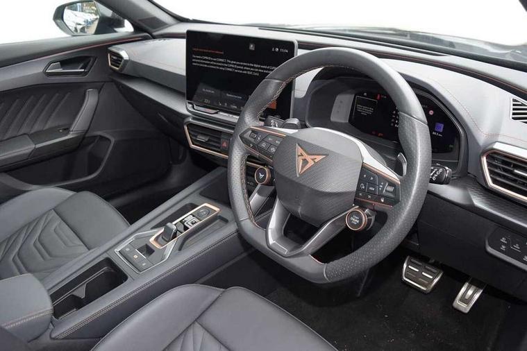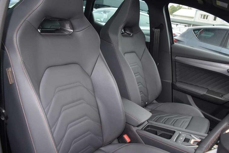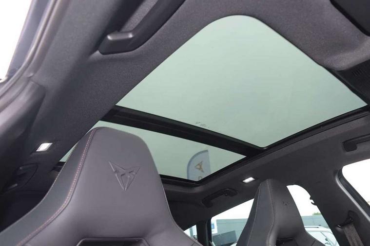 10.25" digital cockpit and configurable dashboard, Adaptive cruise control with follow-to-stop and speed limiter, Advanced driver alert system, Advanced lane assist with semi-automatic vehicle control in a medical emergency and traffic jam assist, Dynamic chassis control with driving profile selection (Comfort, Sport, CUPRA, Individual), Dynamic road sign display, Emergency steering support with turn assist, Forward collision warning with automatic braking, Full link phone integration, Intelligent park assist, RPM, trip computer, outside temp gauge, instrument light brightness, low fuel warning light, lights on reminder, gearshift indicator, Service interval indicator, Side and exit assist, Speed sensitive power steering, Start/stop system with regenerative braking, Top view camera, Virtual pedal and electric tailgate, Voice control system, Wired Android Auto, Wireless apple carplay, Wireless phone charger, Adaptive chassis control with continuous operation, CUPRA sport suspension, Electronic locking differential and dynamic traction support, 2 front and 2 rear USB type C sockets, Media system with navigation, 12.9" touchscreen display, voice control, DAB, steering wheel mounted controls, Auto dimming rear view mirror, Body colour door handles, Body coloured bumpers, Dark grey wing mirror, Daytime running light with automatic headlight control and coming home feature, Door panel ambient lighting, Dynamic headlight range control, Electric front/rear windows, Electrically adjustable heated and folding door mirrors with memory function, Gloss black roof rails and window surrounds, High beam assist, LED 3rd brake light, LED front fog lamps with cornering function, LED Taillights with dynamic indicator, Matrix LED headlights with multifunction camera, Rain sensing wipers, Rear diffuser with twin exhaust pipe on each side, Rear fog lights, Rear side wing doors, Rear wash/wipe, Tinted rear windows, Welcome lights (within exterior mirror housing), 12V socket, 2 front and 2 rear reading lights, 3 seat bench in 2nd row, 60/40 split rear bench seat with armrest and mechanical seat release, Black headlining, Black interior roof lining, Cupra sports pedals, Dust/pollen filter, Electrically adjustable front seats with lumbar support and memory function, Front and rear head restraints, Front centre armrest, Heated front seats, Heated supersports multifunction leather steering wheel with satellite buttons and gear shift paddles, Height/reach adjust steering wheel, Illuminated aluminium doorsteps, Illuminated interior front door sills, Illuminated sunvisor with mirror, Isofix, Leather dashboard, door insert and side trim panel, LED smart wraparound lighting, PVC/Leather upholstery, Satellite steering wheel, Single front passenger seat, Storage pockets on rear of front seats, Three zone climate control with control panel in rear, Variable luggage/load compartment floor, 3 point seatbelts on all rear seats, ABS, Brake control system - ESC and brake booster, Child proof door locks, Driver and front passenger airbags with front passenger airbag de-activation, Electronic parking brake, Front and rear disc brakes, Front side curtain airbags, Hill hold control, Pre-crash front and rear seat belt tensioner, window closure and hazard lights, Public e-call, Seat belt reminder for front and rear seats, Tyre pressure monitoring system, Anti theft alarm system, KESSY Advanced - Keyless start, keyless entry with SAFELOCK, Locking wheel bolts, Copper and aluminium interior detailing, 19" Artic machined sport black and silver alloy wheels, Breakdown and tool kit,