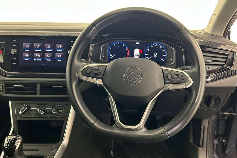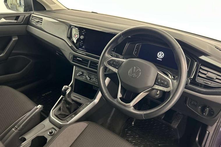 Adaptive cruise control without follow-to-stop and speed limiter, Bluetooth mobile phone interface, Driver alert system, Emergency call service, Front assist system, Power assisted speed sensitive steering, Preparation for We connect and We connect plus, Speedo and rev counter, electronic odometer, trip, service interval display and fuel gauge, Standard rear axle, Travel Assist - Lane keeping system and traffic jam assist, Travel assist including emergency assist, Trip computer, Warning signal and warning light for front and rear seatbelts not fastened, Washer fluid level indicator, Wireless app connect, Front wheel drive, Rear shock absorpion, Start-stop system with battery regeneration (recuperation - energy recovery during braking), DAB Digital radio, Diversity antenna for FM reception, Front and rear 6 speakers, Automatic dimming interior rear view mirror, Body colour bumpers, Body colour door handles, Body colour door mirrors, Electric front windows, Heat insulating darkened glass in side and rear windows, Heat insulating glass windscreen, Power folding adjustable/heated exterior mirrors and front passenger exterior mirror lowering function, Rain sensor, Rear electric windows, Rear fog light, Rear side wing doors, Rear windscreen washer and wiper with interval delay, Third brake light, 12V power socket in centre console, 2 front and 2 rear reading lights, 2 USB-C ports in the front, 2 USB-C charging sockets on the center console in the rear, 3 rear head restraints, 60/40 split folding rear seat and rear seat bench not split, Ceramique headliner, Chrome plated radiator grille inserts, air vent surrounds and light switch surrounds, Door and side trim panel, Driver and front passenger seat height adjustment, Driver/passenger sunvisors with illuminated vanity mirrors, Front centre armrest, Front seat backrest storage pockets, Front standard seats, Handbrake lever handle in leather, Hartley/Thomas cloth upholstery, Isofix child seat preparation easy-fit (for two outer rear seats, and front passenger seat) compatible with I-size, Leather trimmed gear knob, Luggage compartment cover, Luggage compartment floor, Luggage compartment lighting, Multifunction steering wheel, Single front passenger seat, Standard pedal cluster, Light and vision pack - Polo, 3 point height adj front seatbelts + pretensioners, 3x3 point rear seatbelts, ABS, Driver and front passenger airbag with front passenger airbag deactivation, Drivers and front passengers safety optimised head restraints, ESC (Electronic stability control) + EDL (Electronic Differntial lock) and ASR (Traction control), Extended and predictive pedestrian/ cyclist protection, Front curtain and side airbags with center airbag, Front disc brakes, Hill hold control, Manual child lock in rear doors, Rear drum brakes, Single tone horn, Tyre pressure loss indicator, Alarm with interior protection, Anti-theft alarm system with interior monitoring, backup horn, and towing protection, Anti-theft wheel bolts, Electronic engine immobiliser, Lava stone black gloss/matt decorative inserts in dash and front door panels, Low rolling resistance tyres,