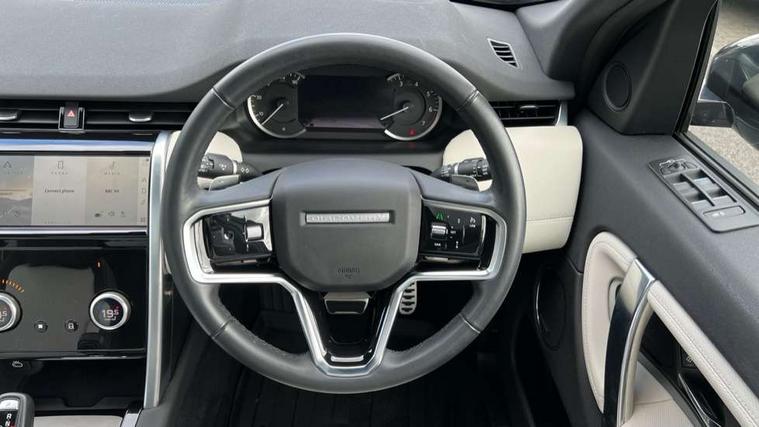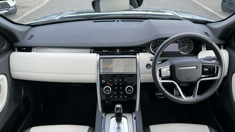 10" touch screen, Adaptive cruise control, Android Auto, Apple CarPlay, Blind spot assist, Clear exit monitor, Driver condition monitor, eCall emergency call system, Front and rear parking aid, InControl remote premium, Lane keep assist, Locking fuel flap, PAS, Pivi Pro connected navigation system with upgraded Infotainment, Powered tailgate/boot lid, Push button start, Rear collision monitor, Rear traffic monitor, Service interval indicator, Traffic sign recognition with adaptive speed limiter, Trip computer, Wade Sensing, 7 kW onboard charger, All terrain progress control, Coil suspension system, Dynamic stability control, Home charging cable, Public charging cable, Terrain Response 2, Bluetooth connectivity including audio streaming, Digital Audio Broadcast radio-DAB, Steering wheel mounted audio controls, 3rd brake light, Automatic headlight levelling, Automatic headlights, Electric front/rear windows, Electric heated/power fold door mirrors with approach lights and auto dimming driver side, Fixed panoramic sunroof with powered sunblind, Front and rear recovery eyes, Heated rear window, Heated windscreen including heated washer jets, Privacy glass, R Dynamic badge, Rain sensing windscreen wipers, Rear fog lights, Rear side wing doors, Rear wing door, Rear wiper, 5 seats, Bright metal pedals, Centre console with armrest, Footwell lights, Front and rear grab handles, Front passenger isofix child seat attachment, Loadspace cover, Loadspace light, Overhead lighting console, Overhead stowage for sunglasses, Rear headrests, Satin chrome gearshift paddles, Sunvisors with illuminated vanity mirrors, Tilt/reach adjustable steering wheel, Black exterior pack - Discovery sport R-Dynamic SE/HSE, Online pack with data plan - Discovery, 3 point seatbelts on all seats, ABS, Brake hold function, Child locks on rear doors, Collision mitigation braking system, Cornering brake control (CBC), Driver/Front Passenger airbags, Drivers knee airbag, Electronic brake force distribution, Electronic parking brake, Emergency brake assist, ESP + traction control, Hill descent control, Hill launch assist, Pedestrian airbag system, Rear seat ISOFIX, Roll stability control, Side and curtain airbags for front and 2nd row seats, Trailer stability control, Tyre pressure monitoring system, Battery Back Up System (BBUS) with tilt sensor, Global lock and unlock switch on driver door, Intrusion sensor, Keyless entry, Locking wheel nuts, Centre stack rails in noble chrome,