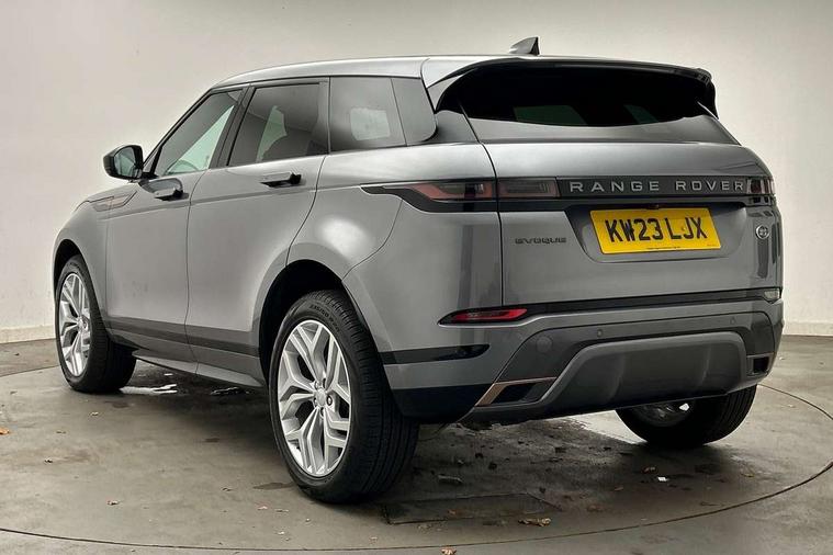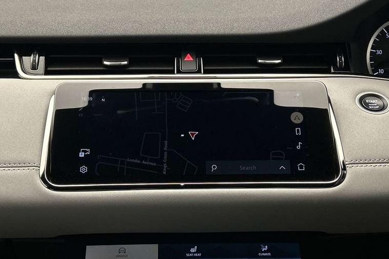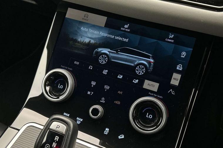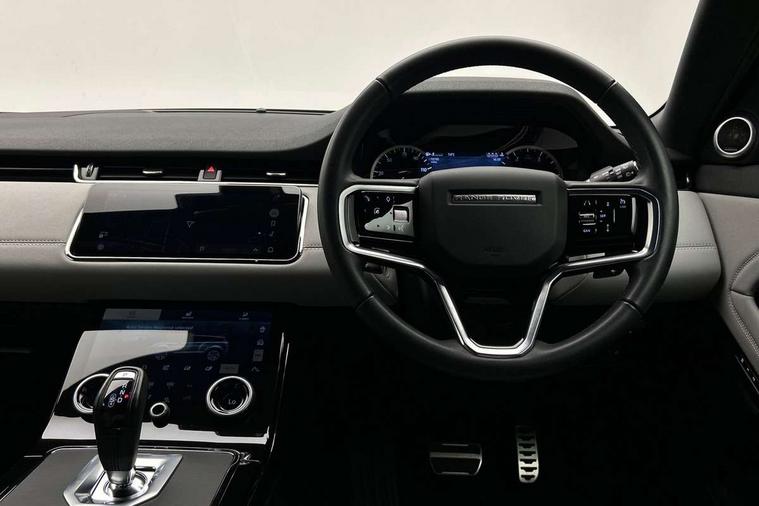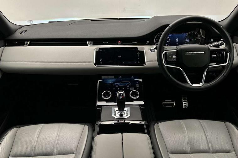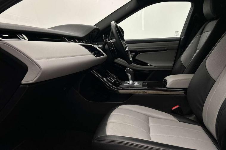 Adaptive cruise control, Android Auto, Apple car play, Blind spot assist, Bluetooth connectivity, Brake pad wear indicator warning light, Driver condition monitor, eCall emergency system, Electronic power assisted steering (EPAS), Front and rear parking aid, InControl remote, Land Rover InControl apps, Lane keep assist, Pivi pro connected includes upgraded infotainment, connected navigation pro, Nuance speech licence, Push button starter, Rear collision monitor, Rear traffic monitor, Traffic sign recognition with adaptive speed limiter, Voice control system, All terrain progress control, Efficient Driveline, Passive suspension, Terrain Response 2 Auto, Digital Audio Broadcast radio-DAB, Steering wheel mounted controls, Auto headlights, Automatic headlight levelling, Electric windows with one touch open/close and anti trap, Evoque and R-Dynamic badge, Flush deployable exterior door handles, Heated rear window with timer, Heated washer jets, Heated windscreen, Power fold, auto-dimming, heated door mirrors with approach lights and auto dimming driver side, Rain sensing windscreen wipers, Rear fog lights, Rear side wing doors, Rear wiper, Tailgate spoiler, Third brake light, 40:20:40 split folding rear seats with centre headrest and armrest, Ambient interior lighting, Bright metal pedals, Isofix system on outer rear seats, Overhead lighting console, Overhead stowage for sunglasses, Passive front head restraints, Rear air vents, Rear centre headrest, Rear head restraints, Satin chrome gearshift paddles, Single passenger seat, Sunvisors with illuminated vanity mirrors, Twin sliding front centre armrest, 3 rear 3 point seatbelts, Anti-lock braking system (ABS), Customer configurable autolock, DSC - Dynamic Stability Control, Electronic brake force distribution, Electronic parking brake, Electronic traction control, Emergency braking, Front and rear seatbelt reminder, Hill descent control, Hill launch assist, Low traction launch, Power operated child locks, Roll stability control, Six airbags - Driver and passenger airbags/driver knee airbag/front side airbag and curtain airbags, Torque vectoring brake, Tyre pressure monitoring system, Alarm, Immobiliser, Intrusion sensor, Keyless entry, Locking wheel nuts,