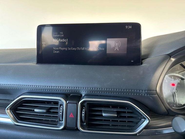 10.25" display with Mazda Connect infotainment, 7" colour TFT display, Apple car play/Android Auto, Blind spot monitoring with rear cross traffic alert, Bluetooth connectivity with voice control, Collision prevention assist, Connected services, Cruising Traffic Support, Electric power steering, Emergency stop signalling system, Engine start/stop button, Forward collision warning, Front and rear parking sensors, Integrated navigation system, Intelligent speed assist, Lane departure warning system, Lane keep assist, Qi wireless phone charging, Radar cruise control, Reversing camera, Service indicator, Traffic sign recognition (TSR), Trip computer, Windscreen projected colour active driving display (HUD) with memory, Cylinder Deactivation, i-stop, 2 USB sockets in rear, 2x USB sockets in front, AM/FM radio, Bluetooth audio streaming, Bose premium sound system with 10 speakers, DAB Digital radio, Multimedia Commander including separate volume dial, Steering wheel mounted audio controls, Adaptive front lighting system, Auto dimming rear view mirror, Automatic headlights, Black inlay dashboard panel, Body colour door mirrors, Body colour roof spoiler, Body coloured front and rear black lower bumper mouldings, Bright finish signature wing, Coming/leaving home lighting function, Door mirror integrated indicators, Dual chrome tailpipes, Dusk sensitive headlamps, Electric front/rear windows with one touch auto up/down, Front grille in gloss black finish, Gloss black B and C pillars garnish, High beam assist, Intermittent rear wash/wipe, LED auto levelling, LED daytime running lights, LED front fog lights, LED Headlights, LED third brake light, Power folding and heated door mirrors, Power tilt/slide sunroof, Privacy glass (rear side windows only), Rain sensing front wipers, Rear side wing doors, Satin black side mouldings, Scuff plates, Shark fin antenna, Signature LED rear combination lights, Vinyl with wood grain metal inlay door trim panel, Windscreen wiper de-icer, 12v electrical power outlet, 3 seat bench in 2nd row, 3 stage heated front seats, 40:20:40 Karakuri fold-flat seat system, 6 way electric adjustable passenger seat, 8 way electric driver seat with lumbar support + memory, Cargo room flat floor board with waterproof undertray, Driver seat power slide, recline and height adjustment, Driver, Front passenger and two rear grab handles with coat hooks, Driver/passenger front seatback pockets, Driver/passenger sunvisors + illuminated vanity mirrors (drivers with ticket holder), Dual zone climate control, Folding centre armrest with 2 cup holders, Front and rear door pockets, Front centre storage with two cupholders, Front passenger seat power slide, recline and height adjustment, Gear shift indicator, Heated steering wheel, Humidity sensor, Illuminated glovebox, Interior dome light with integral spotlight, ISOFIX child seat anchorage points attached on outer rear seats, Karakuri tonneau cover, Leather upholstery, Leather wrapped steering wheel and gear knob, Light roof lining, Luggage compartment LED lighting, Luggage compartment power outlet, Rear air vents, Rear headrests, Rear seat recline, Roof mounted sunglasses holder, Single front passenger seat, Three height adjustable head restraints, Tilt/height adjustable steering wheel, White interior LED illumination lighting, 3 point front seatbelts with pre-tensioners, 3 rear 3 point seatbelts, ABS, Advanced Smart City Brake Support - SCBS, Child locks on rear doors, Driver and front passenger side airbags, DSTC-Dynamic Stability and Traction Control, Dual front airbags, Electronic brake force distribution, Electronic parking brake with auto hold, ESP, Front and rear curtain airbags, Front passenger airbag deactivation, G-Vectoring control, Hill hold assist, Seatbelt reminder front and rear, Single stage passenger airbags, Smart brake support with forward obstruction warning, Tyre pressure monitoring system, Automatic door locking when moving off, Deadlock, Immobiliser, Power door locks, Remote central locking, Smart keyless entry, Thatcham Cat.1 alarm, 19" diamond cut black alloy wheels, Tyre repair kit,