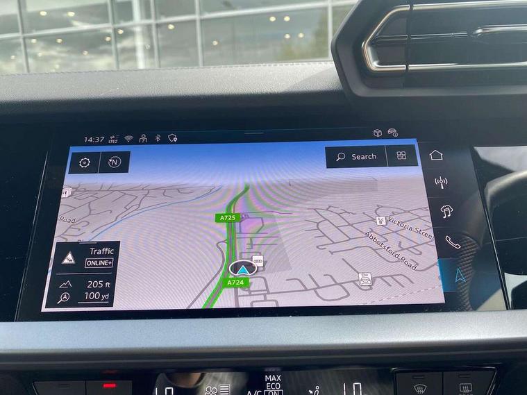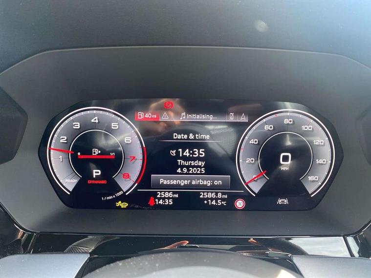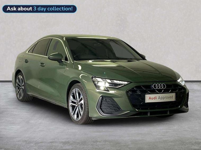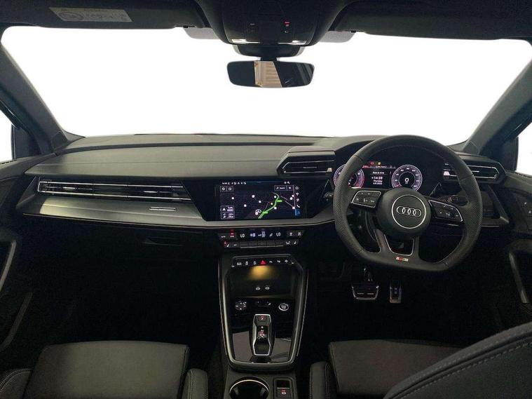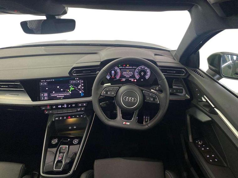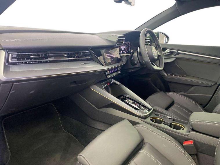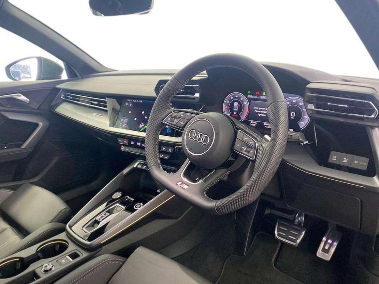 Adjustable speed limiter, Audi drive select, Audi smartphone interface with app store includes wireless Apple carplay, Android auto and Amazon alexa integration, Audi virtual cockpit plus - 12.3" full HD resolution dynamic digital instrument cluster, Automatic start/stop system with recuperation, Bluetooth interface, Camera based traffic sign recognition, Collision avoidance assistant, Cruise control, Distraction and Fatigue warning, e-Call (emergency call), Electromechanical power speed sensitive steering, Emergency assist, Lane departure warning system, MMI Navigation Plus with high resolution 10.1" colour touch screen display, Park Assist with parking system Plus, Service indicator, Trip computer, Voice control system with natural language interaction, Sports suspension, Audi Phonebox light with wireless charging, Audi sound system - 10 loudspeakers including centre loudspeaker and subwoofer, DAB Digital radio, USB ports with charging function in the rear, Acoustic glass windscreen, All weather light, Aluminium window trim, Auto dimming frameless rear view mirror, Automatic dynamic range control, Body colour exterior mirrors, Chrome exhaust tailpipes, Dipped beam, main beam, position light and turning light, Electrically adjustable/heated/folding/auto dimming door mirrors with integrated LED indications + kerb view function for passenger side, Exterior model badging, Front and rear side air inlets in grained matt black with dark liquid chrome frame, Front electric windows, Front radiator grill in high gloss dark chrome, Heat insulating glass windscreen, Illuminated door sills with aluminium inserts at the front with S logo, Intersection light, LED 3rd brake light, LED brake lights, LED daytime running x3, LED headlights with LED rear lights and dynamic rear indicators, LED rear number plate lights, LED reverse light, LED tail lights, Light and rain sensors, Manoeuvring light, Motorway light, Privacy glass - dark tinted rear window, rear door and side windows, Rear boot, Rear diffuser and grill in grained matt black with inlay in dark liquid chrome, Rear electric windows, Rear side wing doors, S line bumpers, Side S line emblems on front wings, Side sill trim in dark liquid chrome, Static Cornering lights, 12V socket and storage compartment in front centre console, 3 seat bench in 2nd row, 3 spoke flat bottomed leather multifunction sport steering wheel with gear shift paddles, 3-zone deluxe automatic air conditioning, 4 way electrically adjustable lumbar support for driver and front passenger, 40/20/40 split folding rear seat bench, Black cloth headlining, Black front and rear floor mats, Front and rear centre armrest in artificial leather with contrasting stitching on armrests and instrument panel, Front and rear headrests, Heated front seats, Height and reach adjustable steering wheel, Manual boot compartment lid, Manually adjustable front seats, Rear centre armrest with cupholder, S badging on the steering wheel, Seat side bolsters, Single front passenger seat, Stainless steel pedals and front footrest in black, Twin leather upholstery with front sports seats S embossed logo, Aluminium interior elements pack - A3, Multi-coloured LED interior lighting package with Multi-coloured contour lighting of instrument panel - A3, 3x3 point rear seat belts, Driver and front passenger airbag with passenger airbag deactivation, Electronic Stabilisation Control (ESC) including ABS, ASR and EDL, First aid kit with warning triangle and 2 safety vests, Front side airbags with head airbags and interaction airbag, Hill hold assist, Pre-sense front with pedestrian and cyclist detection, Seatbelt monitoring, Tyre pressure loss indicator, Anti theft alarm, Anti-theft wheel bolts, Electronically operated child locks, Immobiliser, Remote central locking with safelock, Black dashboard, Inlay in dark aluminium spectrum,