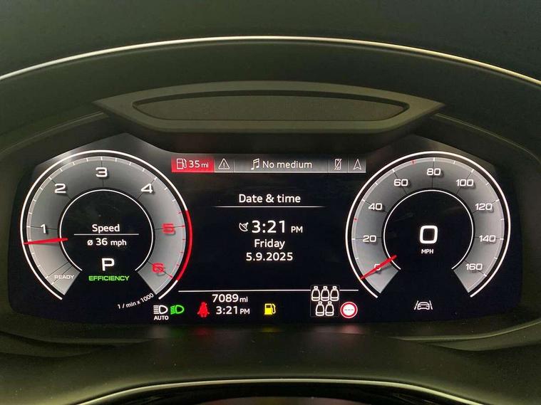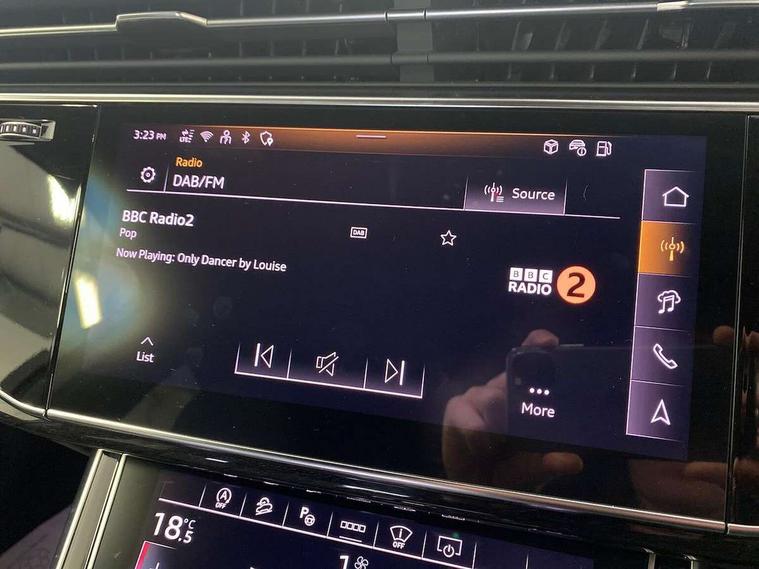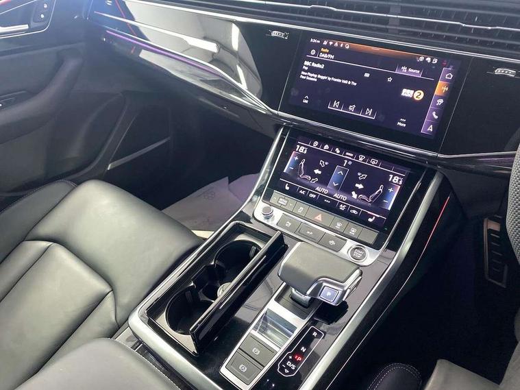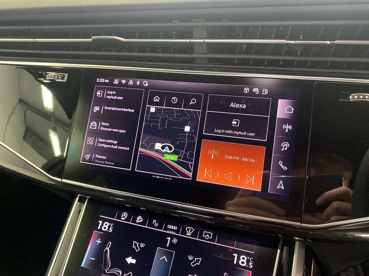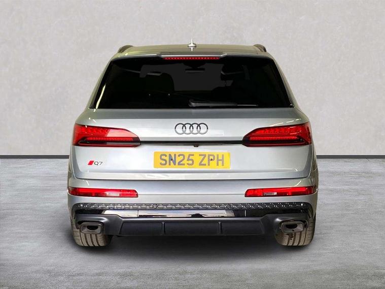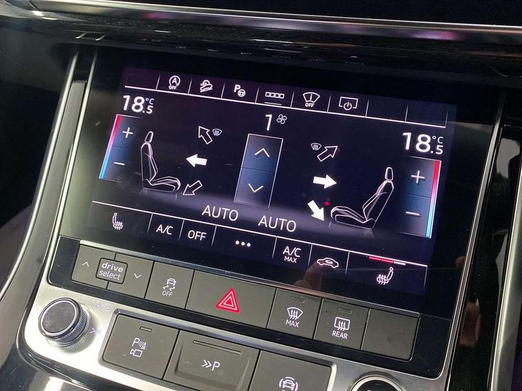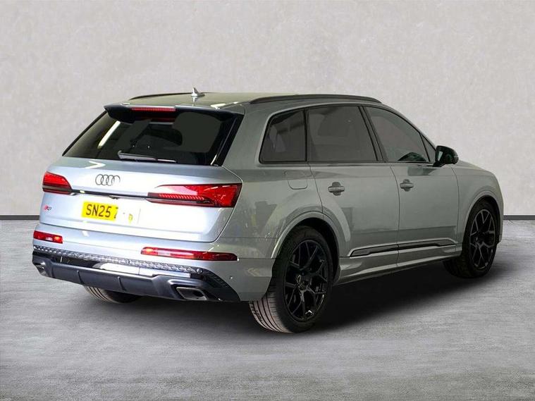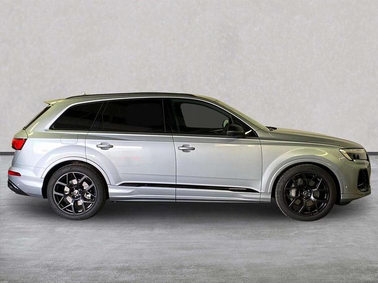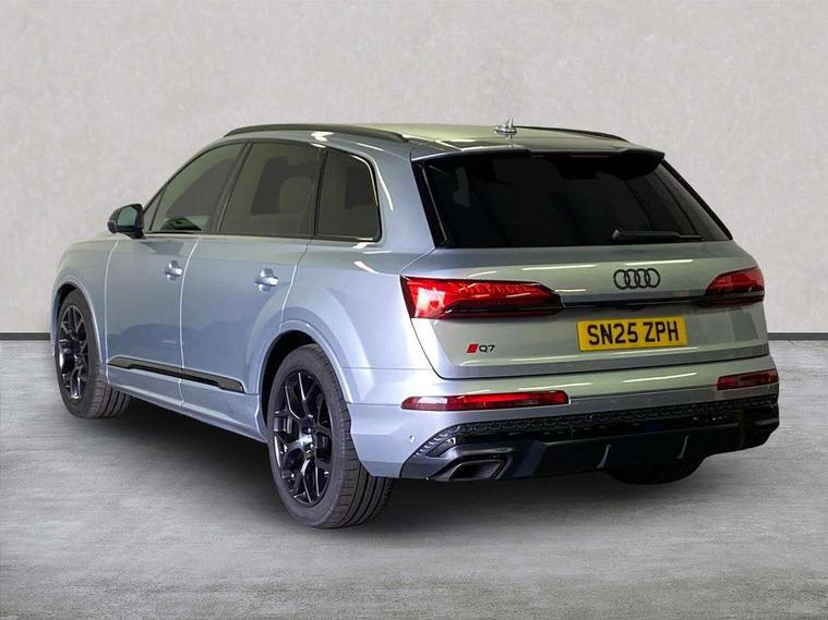 Audi connect safety and service (e-call), Audi connect with Amazon Alexa Integration, Audi drive select (Auto, Comfort, Dynamic, Efficiency, Individual, Off-road and All road), Audi phone box light with wireless charging, Audi virtual cockpit - 12.3" high-resolution LCD display with fully customisable instrument cluster, Bluetooth interface, Camera based traffic sign recognition, Electromechanical power steering, MMI navigation plus with MMI touch screens includes 10.1" and 8.6" screens with haptic feedback, Natural voice recognition, Operating buttons in Matte black, Parking system plus with 360 degree display (front, rear and side sensors) - acoustic and visual park assist system, Power operated tailgate, Rear view camera, Smartphone interface includes wireless Apple carplay/Android Auto, Start/stop system, 48V Mild hybrid technology, Adaptive air sports suspension, Quattro all wheel drive with self locking centre differential, Audi music interface - front 2 USB-C ports with charger and data functions, Audi sound system with 6 channel amplifier, 180 watt amplifying capacity and 10 loudspeakers including subwoofer, DAB digital radio module, Audi Beam uses LEDs to project S emblem with red rhombus onto the ground when opening the side doors (front/rear), Auto dimming frameless rear view mirror, Black exhausts, Black roof rails, Electrically adj heated/folding + automatically dimming exterior mirrors with memory + automatic kerb side function for passenger side exterior mirror, Heat insulating glass in windshield, Integrated LED indications in door mirrors, LED 3rd brake light, LED daytime running lights, LED rear tail lights, Loading edge protection in stainless steel, Matrix LED headlights with dynamic front and rear indicators, Privacy glass - dark tinted rear and rear side windows from B-pillar backwards, Rear side wing doors, Rear wiper, 2 seat bench in 3rd row, 2 zone automatic climate control, 3 seat bench in 2nd row, 7 seat layout with ISOFIX points for the front passenger seat and rear passenger seat, Black cloth headlining, Comfort front centre armrest, Electric adjustable front seat with 4 way lumbar support, driver memory functionality, Folding rear seats, Front head restraints, Front/rear floor mats, Heated front seats, Illuminated door sill trims with S logo, ISOFIX child seat mounting for front passenger seat and 2 outer rear seats with top tether child seat mounting for all 3 rear seats, LED interior ambient lighting, Luggage compartment cover, Luggage compartment sill protection in stainless steel, Rear head restraints, Single front passenger seat, Stainless steel pedals, Sunvisors with illuminated vanity mirrors, Black styling pack plus - Q7, 3 point seatbelts on all rear seats, Audi pre sense front, Child locks on rear doors, Convenience key with safelock and gesture tailgate, Driver and front passenger, front side and curtain airbags, Electromechanical parking brake, Electronic Stabilisation Control (ESC) including ABS, ASR and EDL, Extended pedestrian protection measures, Hill hold assist, Seatbelt reminder, Tyre pressure loss indicator, Warning triangle and first aid kit, Anti theft alarm with tow away protection, Anti-theft wheel bolts and wheel loosening detection, Keyless Go, Remote central locking, Polished oak trim with grey finish inlay, Tool kit, Tyre repair kit,