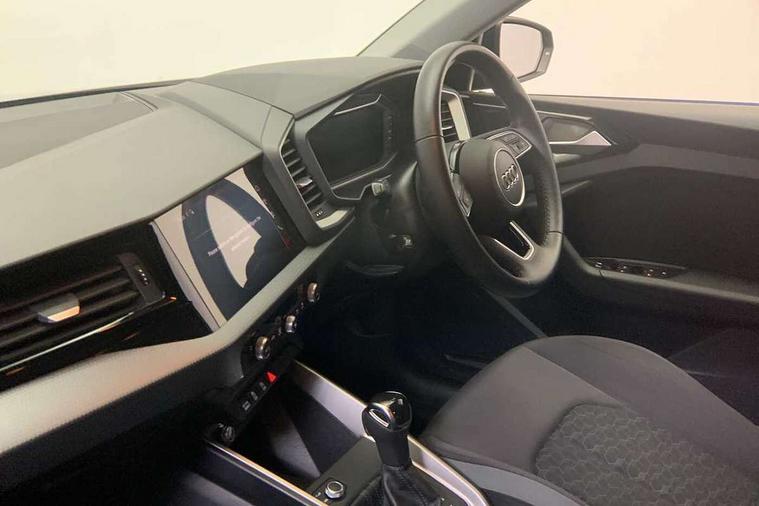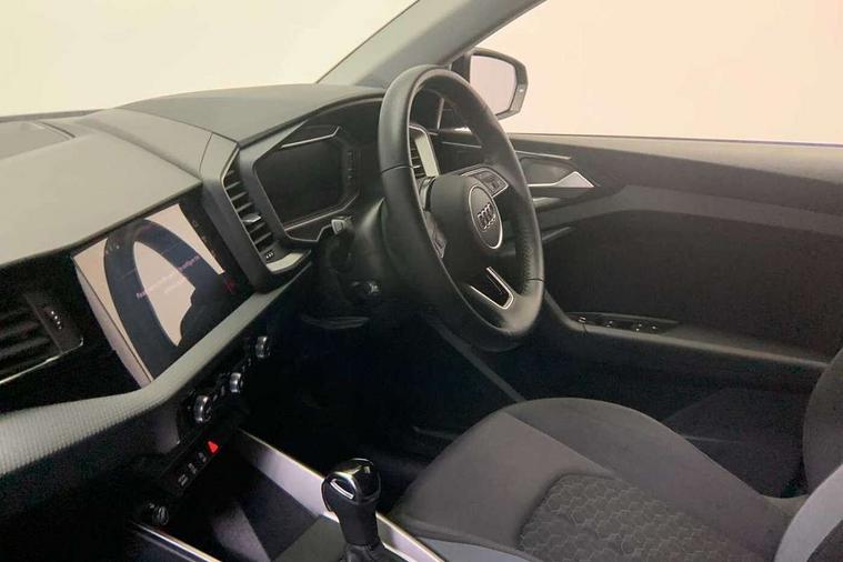 10.25" Digital instrument cluster display classis style instrument dials + speed, odometer, time, outside temperature, telephone menu + fuel level warning, Audi connect safety emergency and service including E-call, Audi drive select - power steering assistance + engine + gear shift 3 preset modes (auto, dynamic, efficiency and an Individual mode), Audi smartphone interface with connect compatible smartphone via USB directly MMI display + Nav, music, third party apps controlled via MMI controller, Automatic start/stop system, Bluetooth interface, Cruise control, Driver's information system, Electromechanical power steering, Lane departure warning system, Rear parking sensor, Service interval indicator, Speed limiter, Voice control system, Washer fluid level indicator, Dynamic suspension, 1 x SDXC card reader, 1 x USB type C and 1 USB type A charging points, DAB Digital radio, MMI radio plus with 8.8" colour MMI display screen and MMI touch, Auto dimming rear view mirror, Body coloured bumpers, Body coloured door mirrors, Electric front and rear windows, Electrically adjustable, heated, folding door mirrors with integrated LED side indicator, Front side air inlets in grained matt black and C frame in titanium black, Heat insulating glass windscreen and side windows, Heated rear windscreen, LED headlights with LED rear lights + dynamic rear indicators + headlight adjustment and high beam, turning light + LED daytime running lights, Radiator grille and rear diffuser in matt titanium black, Radiator protective grille frame in matt aluminium silver, Rain and light sensors, Rear fog lights, Rear wiper, Scandium grey tailpipe trim, Side front spoiler lips in grained matt black, 12V socket in centre console with two cup holders, 3 rear seats with headrests, 40:60 Split folding rear seat or folded fully, Door sill trims with aluminium inlay, Driver and passenger seat with manual height adjust with forward and backwards adjustment, Front head restraints, Front/rear floor mats, Height and reach adjustable steering wheel, ISOFIX child seat mounting for front passenger and outer rear seats including top tether attachment point of outer rear seats, Leather gear knob with aluminium trim, Leatherette handbrake grip, Luggage compartment light with front and rear reading lights, Manually adjustable lumbar support in front seats, Novum cloth upholstery with front sport seats, Titanium grey cloth headlining, Luggage compartment pack - A1, 3x3 point rear seatbelts, Audi pre-sense front with pedestrain and cyclist recognition, Brake assist function, Driver and front passenger airbag with front side and head airbags, Electronic Stability Control including ABS, EBD, ASR and EDL, Front and rear seatbelt reminder, Front passenger airbag deactivation switch, Hill hold assist, Seatbelt height adjustment for front seats, Seatbelt monitoring, Tyre pressure warning light, Warning triangle and first aid kit, Anti theft alarm, Anti theft wheel bolts and loose wheel warning, Immobiliser, Remote central locking with 2 foldaway keys, Aluminium trim for control switches, air vents and digital instrument cluster, Silver grey accent areas including air vents, door handle recesses and centre console in diamond paint finish, Slate grey inlays polygon structure in fine paint finish,