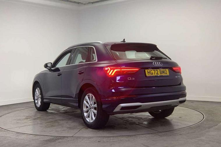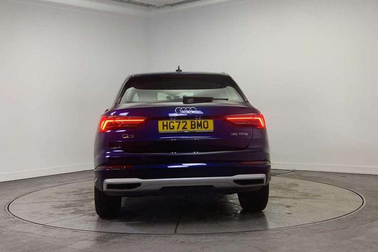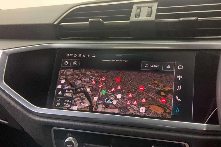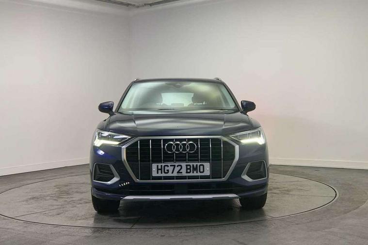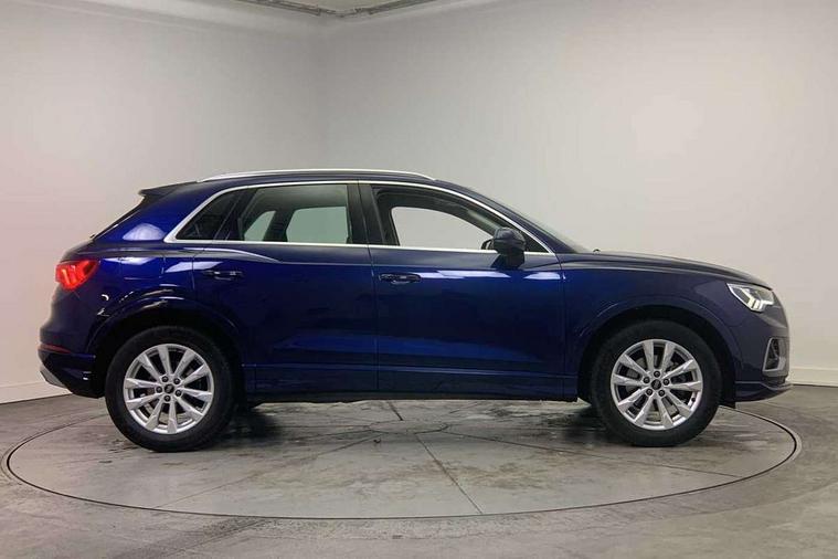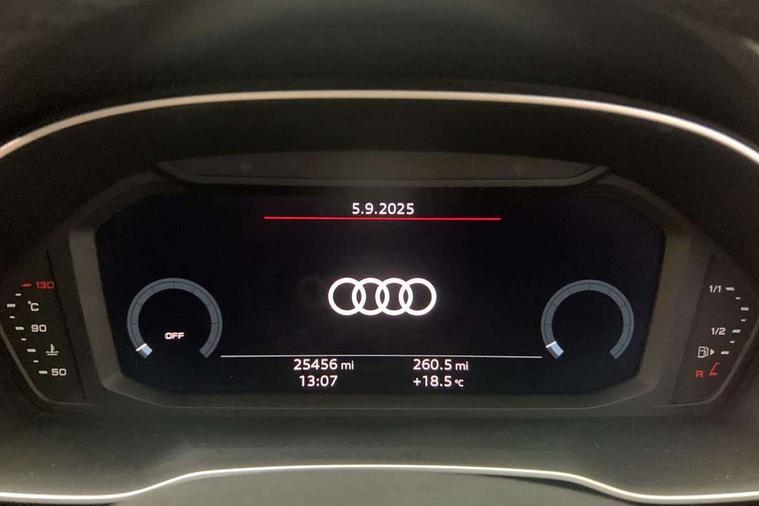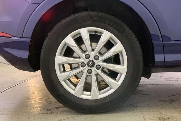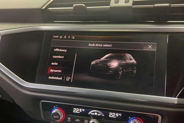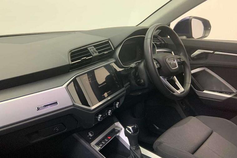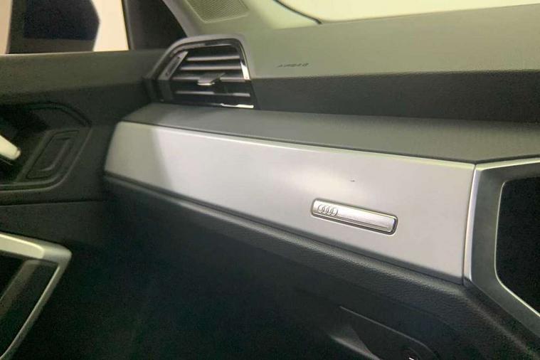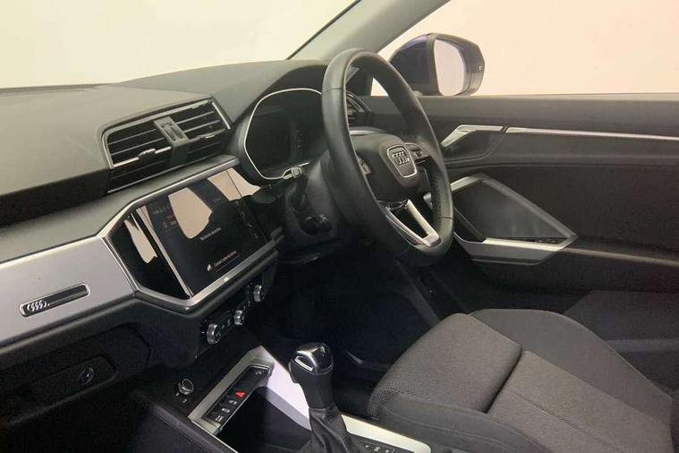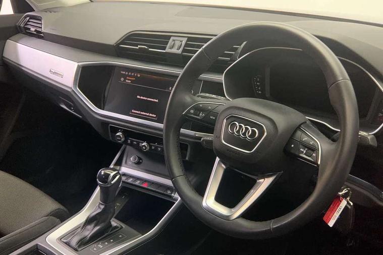 Amazon alexa Integration, Audi drive select, Audi lane departure warning, Audi Virtual Cockpit - 10.25" display, Bluetooth interface, Camera based traffic sign recognition, Legal emergency call, MMI Navigation Plus with high resolution 10.1 inch touchscreen colour display, Power operated tailgate, Progressive steering, Service interval indicator, Smartphone interface includes wireless Apple carplay/Android Auto, Start stop system with recuperation, Voice control system with natural language interaction, Standard suspension, 2 USB-C ports with charge and data functions, 6 passive loudspeakers, DAB digital radio module, Acoustic windscreen, Aluminium roof rails, Aluminium window trim, Auto dimming frameless rear view mirror, Body coloured bumpers, Electrically folding, adjustable and heated door mirrors with integrated LED side indicators and kerb view function for passenger side, Front and rear electric windows, Front fog lights, Front side air inlets in matt selenite silver, Front spoiler in matt selenite silver, Grille vertical bars in aluminium silver/Matt, High gloss black finish B and C pillars, LED Dynamic rear indicators, LED headlights with LED daytime running lights, LED rear lights, LED third brake light, Rain and light sensors, Rear diffuser strip in matt selenite silver, Rear side wing doors, Rear wiper, Titanium black radiator grille, Variable front intermittent wipers, 12V socket in rear centre console, 3 seat bench in 2nd row, 3 spoke multi-function leather steering wheel, 40:20:40 folding with manual adjustment for 60:40 forwards/backwards position and backrest angle, Door sill trims with aluminium inlay, Dual zone electronic climate control, Front and rear floor mats, Front and rear headrests, Front and rear roof module including reading lights, Front centre armrest, Glove compartment lighting, Height and reach adjustable steering wheel, ISOFIX child seat mounting for front passenger with airbag deactivation and outer rear seat including top tether attachment point for outer rear seats, Luggage compartment light, Lunar silver cloth headlining, Manual front seats with height adjustment, Single front passenger seat, Stainless steel luggage compartment sill finisher, Non smoking pack - Q3, 3x3 point rear seatbelts, 6 airbags - Driver, front passenger, curtain and side windows, Audi pre-sense front with pedestrain and cyclist recognition, Electrically operated child locks on rear doors, Electromechanical parking brake, Electronic stabilisation control including ABS, ASR and EDL, Front seatbelt reminder, Hill descent control, Hill hold assist, Pre sense basic, Seatbelt monitoring, Tyre pressure warning, Warning triangle and first aid kit, Anti theft alarm, Anti theft wheel bolts, Immobiliser, Remote central locking, Detail dashboard around MMI touch colour display in glass look, black with surround in aluminium look, Micrometallic silver inlay,