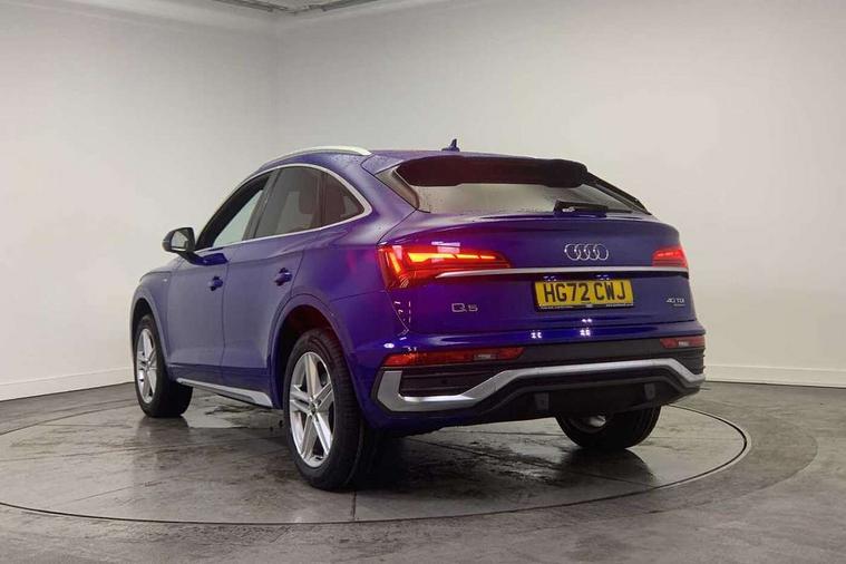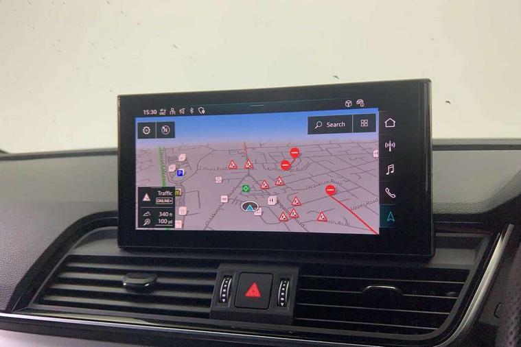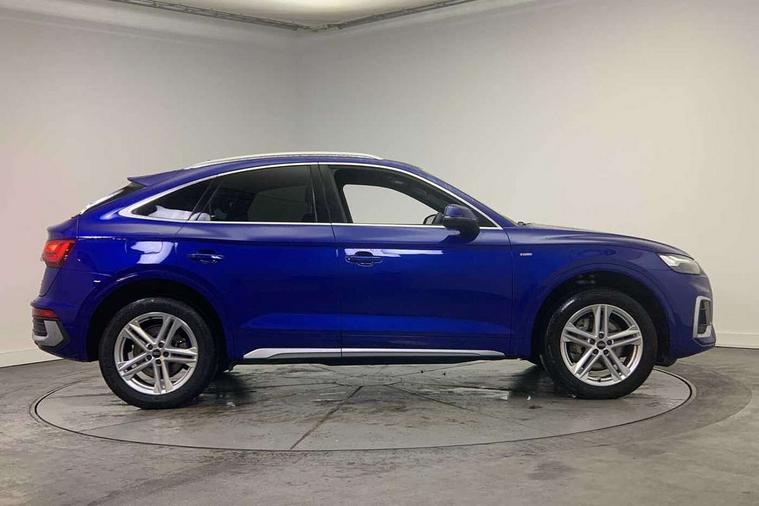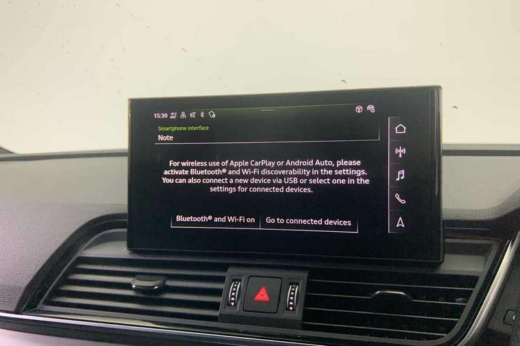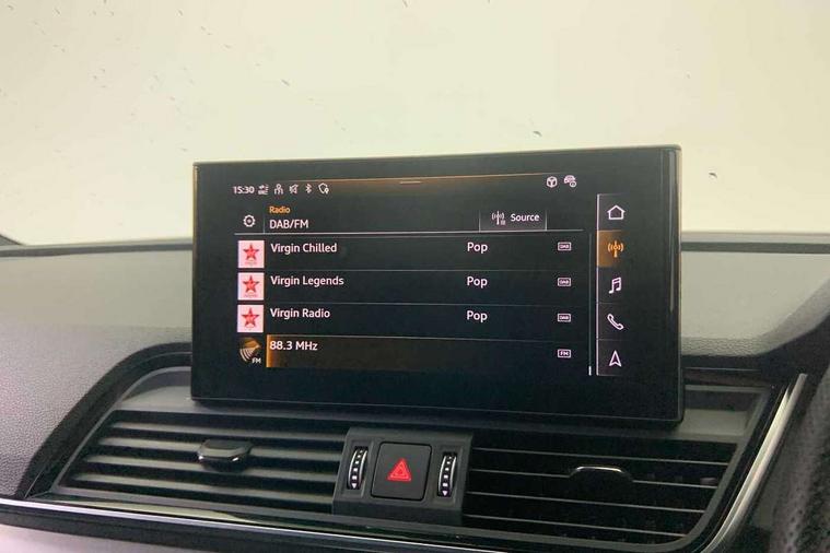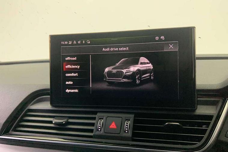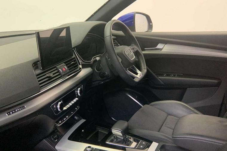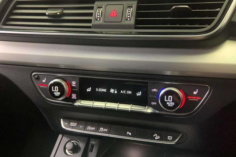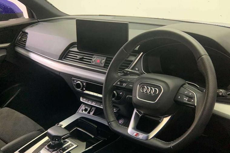 Audi connect safety and service (e-call), Audi connect with Amazon Alexa Integration, Audi drive select, Audi virtual cockpit plus with 12.3" screen and three different layout designs, Audi wireless smartphone interface, Automatic start-stop system with coasting functionality and efficiency programme, Bluetooth interface, Electro - mechanical power assisted steering, MMI navigation plus with 10.1" touch screen, Power tailgate, Reversing camera, Service interval indicator, Voice control system with Audi hotword activation "Hey Audi", Diesel particulate filter, Quattro on demand, S line sports suspension, 2 x USB charging port with aux input socket, DAB Digital radio, Acoustic windscreen, Aluminium roof rails, Audi matrix LED headlights with dynamic front and rear indicators, Auto dimming door mirrors, Auto dimming rear view mirror, Automatic headlight adjustment, Automatic headlights and windscreen wipers, Body colour door mirrors, Body colour rear diffuser with matt aluminium silver surrounds, Body colour underbody protection, Chrome plated exhaust trims, Daytime running lights, Door sills in Selenite silver, Electric adjustable/heated/folding door mirrors, Front air inlet surrounds in aluminium, Front and rear electric windows, Front radiator grille in honeycomb design, Headlight washers, High level LED brake light, Lower bumpers painted in contrast Manhattan grey, Rear chrome trim strip below lights, Rear privacy glass and rear side windows, Rear side wing doors, Rear wiper, Roof bars, S Line badges on the front wings, S Line front and rear bumpers, S Line rear spoiler, S Line side skirts, 3 rear headrests, 40:20:40 split folding 3 rear bench seat in 2nd row with rear centre armrest, Black cloth headlining, Comfort front centre armrest, Contrast stitching on seats, steering wheel and gear lever gaiter, Deluxe 3 zone electronic climate control, Front head restraints, Front/rear floor mats, Gear lever in black leather, Heated front seats, Height/reach adjustable steering column, Illuminated door sill trims with S logo, ISOFIX child seat mounting and top tether, Manual seat adjustment with 4-way electric lumbar support, Removable luggage compartment floor, Single front passenger seat, Stainless steel pedals, Sunvisors with vanity mirrors, Trunk roller cover, High gloss pack - Q5, LED interior light pack - Q5, 3 point seatbelts on all seats, 6 airbags - Driver, front passenger, curtain and side airbags, Electrically operated child locks on rear doors, Electromechanical parking brake, Electronic stabilisation control including ABS, ASR and EDL, Front passenger airbag deactivation, Hill descent control, Hill hold assist, Multi collision brake assist, Pop-up bonnet for pedestrian protection, Pre sense city, Seat belt force limiter, Seatbelt monitoring, Tyre pressure warning, Warning triangle and first aid kit, Anti theft alarm, Anti-theft wheel bolts, Keyless Go access/ignition system, Remote central locking, Matt brushed aluminium inlays,