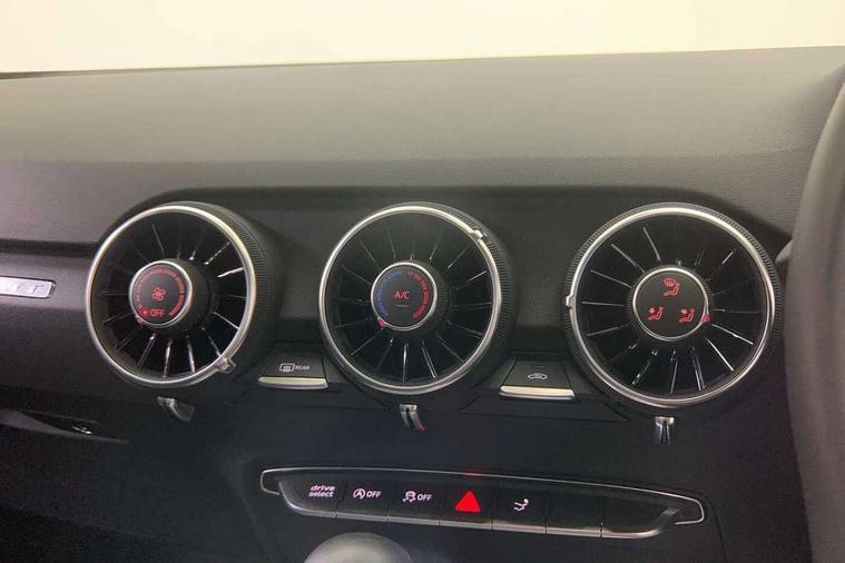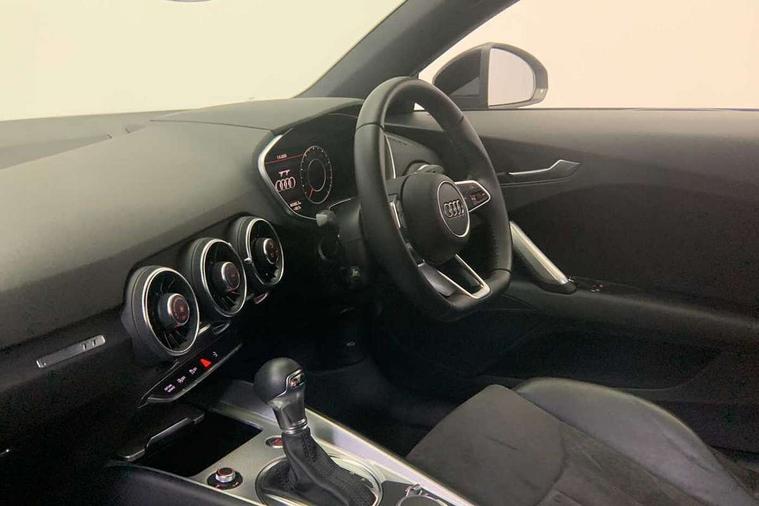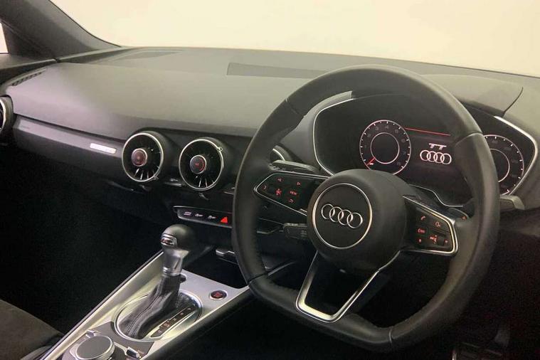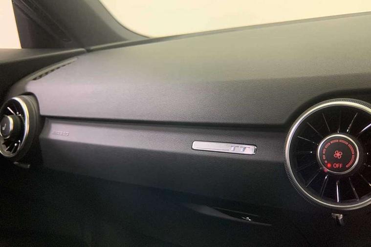 Audi drive select with 4 Pre configured modes, Audi smartphone interface, Audi virtual cockpit - 12.3" high-resolution LCD display with fully customisable instrument cluster, Cruise control + speed limiter, MMI touch panel, Mobile phone preparation with bluetooth interface, Progressive power assisted steering, Service interval indicator, Start/Stop system with energy recuperation, TP memo, Sports suspension, AM/FM radio, Bluetooth audio streaming, DAB Digital radio, MMI Radio with CD player and SD/XC card slot, Auto dimming rear view mirror, Body colour bumpers, Body colour electrically adjustable and heated door mirrors with built in LED side indicators, Electric folding door mirrors, Electric front windows, Front fog lights, Green tinted heat insulating glass, Light and rain sensors, Retractable rear boot spoiler, Sunband for windscreen, Xenon headlights with LED daytime running lights with automatic headline range control + LED rear lights, brake lights and rear indicators, 12V socket, 3 spoke flat bottomed high multi-function leather sport steering wheel with gearshift paddles, Alcantara/Leather upholstery includes seat centre panels, door trim inserts in black Alcantara with side bolsters, head restraints in black leather, Aluminium door sill trims, Front centre armrest, Front sports seats, Heated front seats, Height adjustable driver's seat, Height adjustable front head restraints, Height/reach adjust steering wheel, ISOFIX child seat mounting for front passenger seat with airbag deactivation, Rear head restraints, Rear top tether child seat ISOFIX attachment, Split folding rear seat, Non smoking pack - TT/TT RS, 3 point front seat belts, ABS, ASR traction control, Curtain airbags, Driver and front passenger airbag with front passenger airbag deactivation, EDL traction control, Electromechanical parking brake, ESP, First aid kit, Front side airbags, Head airbags, Hill hold assist, Seatbelt warning, Tyre pressure loss indicator, Warning triangle, Anti theft alarm, Anti theft wheel bolts, Immobiliser, Keyless Go, Remote central locking, Aluminium design inlays, Tool kit, Tyre repair kit,