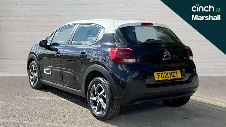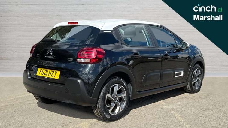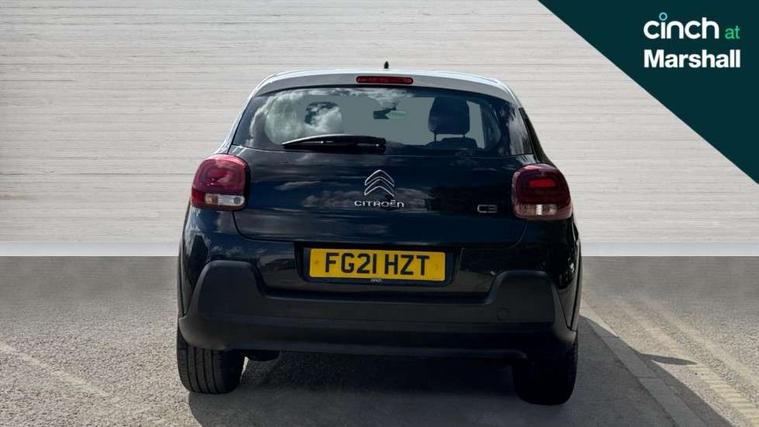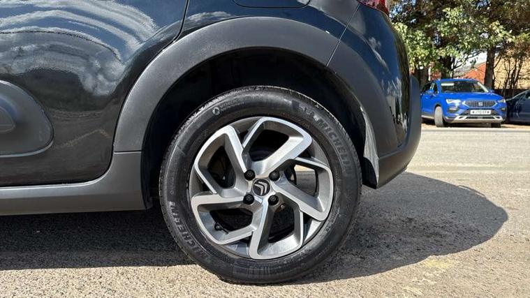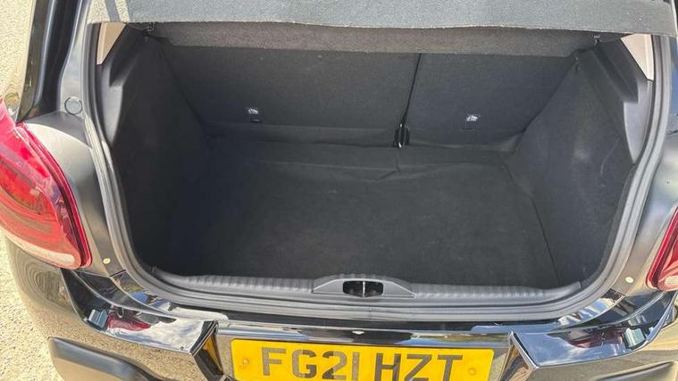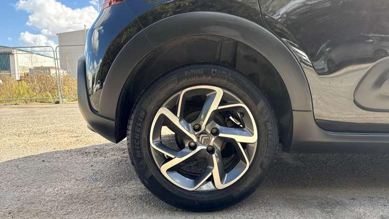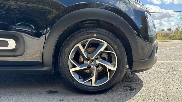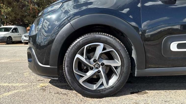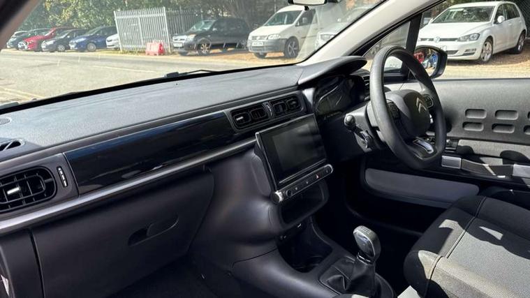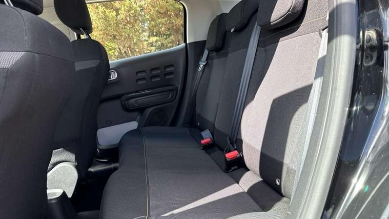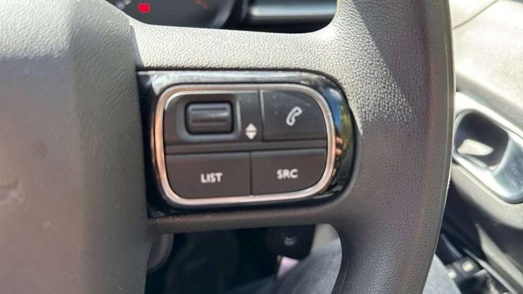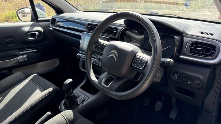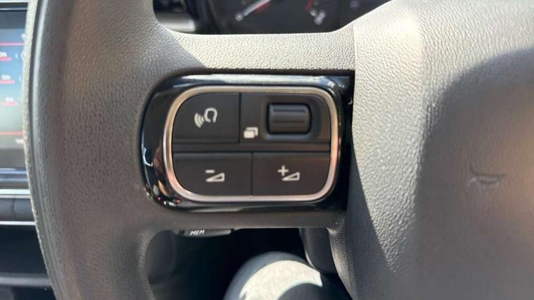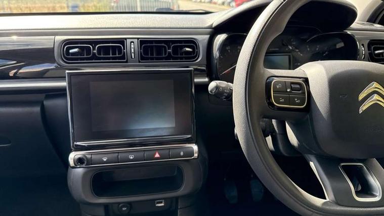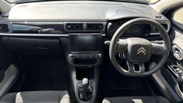 Coffee Break Alert, Cruise control + speed limiter, Exterior temperature display, Instrument cluster with white LCD and analogue gauges, Multi function trip computer, Rear parking sensors, Variable assistance power steering, USB connection, 3D rear light signature, Automatic activation of hazard warning lights, Body colour bumpers, Body colour door handles, Chrome decoration on front face, under chevrons and around daytime running lights, Citroen illuminated signature in LED headlights and LED daytime running lights, Electric folding and heated door mirrors, Electric front windows with one touch/anti-pinch, Fog lights integrated into front bumper, LED Headlights, Manual rear windows, Matt black finish B pillar, Rear windscreen wiper with intermittent mode linked to vehicle speed and automatic activation when reverse gear selected, Roof colour rear view mirror caps, Standard day night switchable interior rear view mirror, Tinted side windows, 1/3 to 2/3 split folding rear seat, 12V socket, Automatic air conditioning, Driver and passenger's sun visor with courtesy mirror, Driver's seat height adjustment, Fixing boot light, Front lighting panel with map reading lights, Front seats adjustable with forward back slide and adjustable backrest, Height adjustable front head restraints, Height/reach adjust steering wheel, ISOFIX mounting on outer rear seats with top tether and labels indicating fixing points, Mica cloth upholstery, Parcel shelf, Seatbelt unfastened on the move audible and visual alert for front and rear seats, Soft touch gear lever with leather effect gaiter and overstitching, Storage space under touchscreen with rubber mat, Three rear seats with head restraints, Upholstered armrest in front and rear doors, Safety pack 1 - C3, Visibility pack with automatic lights - C3, ABS with Electronic brakeforce distribution and Emergency braking assistance, Driver and front passenger seatbelts with pyrotechnic pretensioners and force limiters, Driver's airbag, Electric child locks, ESP with anti skid system, Front passenger airbag, Front passenger airbag deactivation, Front side airbags + front/rear curtain airbags, Hill start assist, Manual parking brake with chrome finish button, Mono-tone horn, Three rear three point seatbelts with outer seats have pretensioners and force limiters, Tyre pressure monitoring system, Anti theft alarm, Automatic door and boot locking when moving off with automatic unlocking in case of impact, Central locking with locked indicator and interior one touch lock button, Immobiliser, Remote control central locking with two plip keys, Gloss black dashboard finish with grey surround, 16" Hellix diamond black alloy wheels, Tyre puncture repair kit,