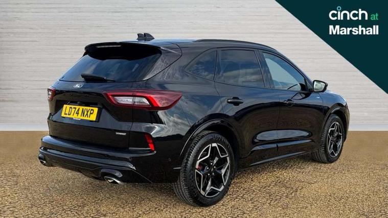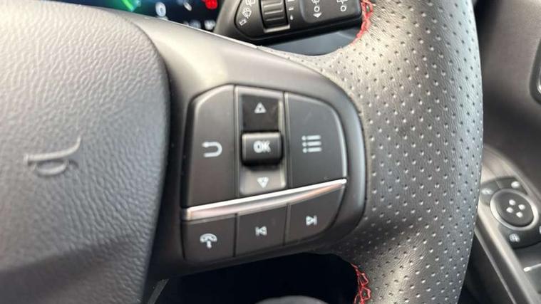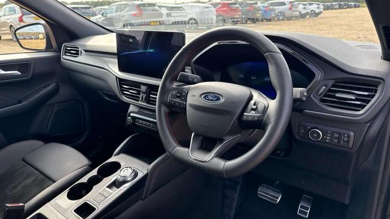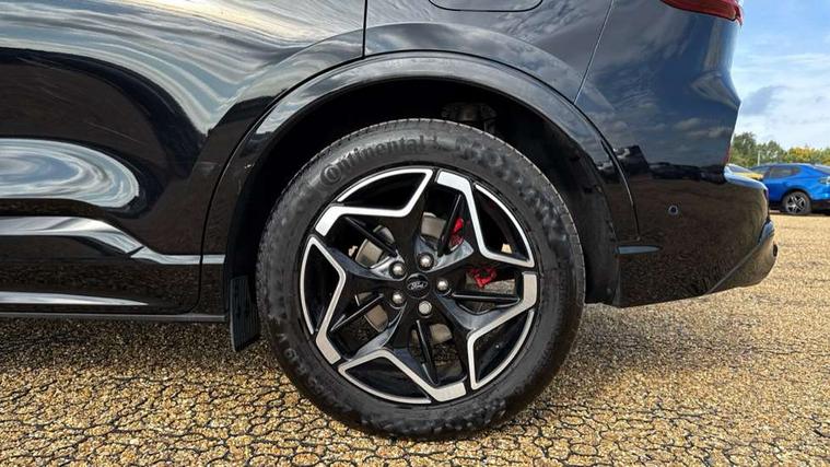 12.3" digital colour instrument cluster, 360 degree camera, e-Call (emergency call), Ford easy fuel, Ford SYNC 4 Navigation with 13" touchscreen, DAB radio, emergency assistance, Andriod Auto/Apple CarPlay, 5G modem & Ford Pass connect, Front and rear parking sensors, Hands free power tailgate, Lane centering assist, Lane keeping aid with lane departure warning, Power assist steering, Selectable drive modes, Service interval indicator, Sports suspension, Twist beam rear suspension, B&O premium audio system with 10 speakers, subwoofer and 2 USB ports, Auto headlamps with high and low beam, Black roof rails, Body colour bumpers, Front LED fog lamps, Large rear spoiler, LED daytime running lights, LED rear lights, Pop out door edge protectors, Power front/rear windows with global close, Power heated folding door mirrors with puddle lights, memory function and camera, Power opening panoramic roof, Quickclear heated windscreen, Rain sensing wipers, Rear privacy glass, Rear side wing doors, Rear wiper, ST-Line body styling kit, Third brake light, 12 way ergonomic power adjust driver's seat with memory (AGR certified), 12 way ergonomic power adjust passenger seat (AGR certified), 2nd row sliding seats, Electronic automatic temperature control (EATC), Front and rear head restraints, Partial premium touch sensico upholstery, Rear centre head restraint, Single front passenger seat, Sports seats, Driver assistance pack with intelligent adaptive cruise control - Kuga FHEV/PHEV, Winter pack - Kuga, 3x3 point rear seatbelts, Airbags - front driver/passenger, front and rear curtain, Drivers knee airbag, Dynamic brake support, Electronic stability control (ESC) and ABS, Evasive steering assist, Ford MyKey Gen 2 safety system, Manual child proof rear door locks, Pre collision assist with autonomous emergency braking, Rear seat Occupancy alert, Red brake calipers, Tyre pressure monitoring system, Engine immobiliser, Keyless entry and Ford power start button (Keyless start), Locking wheel nuts, Remote powered central double locking doors, Thatcham category 1 alarm,