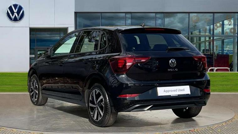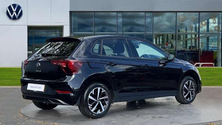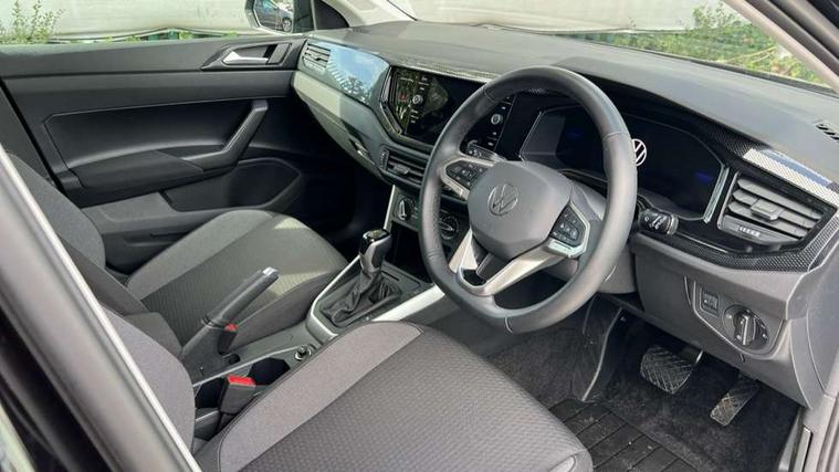 Advanced driver attention and drowsiness monitor, Bluetooth mobile phone interface, Dynamic road sign display, Emergency call service, Multifunction front facing camera for distance control, Park distance control, Power assisted speed sensitive steering, Predictive adaptive cruise control without follow-to-stop and speed limiter, Preparation for navigation system with media and internet package, Preparation for We connect and We connect plus, Rear view camera, Speedo and rev counter, electronic odometer, trip, service interval display and exterior temperature gauge, Standard rear axle, Travel Assist - Lane keeping system and traffic jam assist, Travel assist including emergency assist, Trip computer, Warning signal and warning light for front and rear seatbelts not fastened, Washer fluid level indicator, Wireless app connect, Front wheel drive, Rear shock absorpion, Start-stop system with battery regeneration (recuperation - energy recovery during braking), DAB Digital radio, Diversity antenna for FM reception, Front and rear 6 speakers, Automatic dimming interior rear view mirror, Automatic headlight control with LED separate daytime running lights with coming/leaving home function, Body colour bumpers with chrome inserts, Body colour door handles, Body colour door mirrors, Electric front windows, Engine badge deletion, Headlight range adjustment, Heat insulating and laminated safety glass windshield, LED Headlights, LED rear combination lamps, Power folding adjustable/heated exterior mirrors and front passenger exterior mirror lowering function, Rain sensor, Rear electric windows, Rear fog light, Rear side wing doors, Rear tinted glass from B-pillar backwards approx 65% tinted, Rear windscreen washer and wiper with interval delay, Third brake light, 12V power socket in centre console, 2 front and 2 rear reading lights with switch off delay and dimmer, 2 USB-C ports in the front, 2 USB-C charging sockets on the center console in the rear, 3 rear head restraints, 60/40 split folding rear seat and rear seat bench not split, Ceramique roof lining, Chrome plated radiator grille inserts, air vent surrounds and light switch surrounds, Door and side trim panel, Driver and front passenger seat height adjustment, Driver/passenger sunvisors with illuminated vanity mirrors, Front centre armrest, Front seat backrest storage pockets, Front standard seats, Handbrake lever handle in leather, Hartley/Thomas cloth upholstery, Headliner in recycled material, Isofix child seat preparation easy-fit (for two outer rear seats, and front passenger seat) compatible with I-size, Leather trimmed gear knob, Luggage compartment cover, Luggage compartment lighting, Removable luggage compartment floor, Single front passenger seat, Standard climatic zones, Standard pedal cluster, Three spoke leather wrapped multifunction steering wheel with shifting paddles, Light and vision pack - Polo, 3 point height adj front seatbelts + pretensioners, 3 point seat belt for centre rear seat, 3 point seatbelts, outer rear with ECE lable, ABS, Driver and front passenger airbag with front passenger airbag deactivation, Drivers and front passengers safety optimised head restraints, ESC (Electronic stability control) + EDL (Electronic Differntial lock) and ASR (Traction control), Extended and predictive pedestrian/ cyclist protection, Front assist with autonomous emergency braking (for Adaptive Cruise Control ACC up to 130 mph), Front curtain and side airbags with center airbag, Front disc brakes, Hill hold control, Manual child lock in rear doors, Rear drum brakes, Single tone horn, Tyre pressure loss indicator, Alarm with interior protection, Anti-theft alarm system with interior monitoring, backup horn, and towing protection, Anti-theft wheel bolts, Electronic engine immobiliser, Lava stone black gloss/matt decorative inserts in dash and front door panels, 16" Torsby alloy wheels, Low rolling resistance tyres,