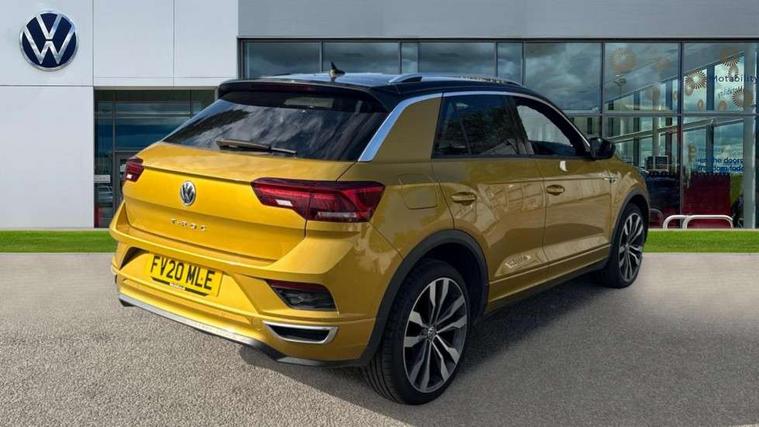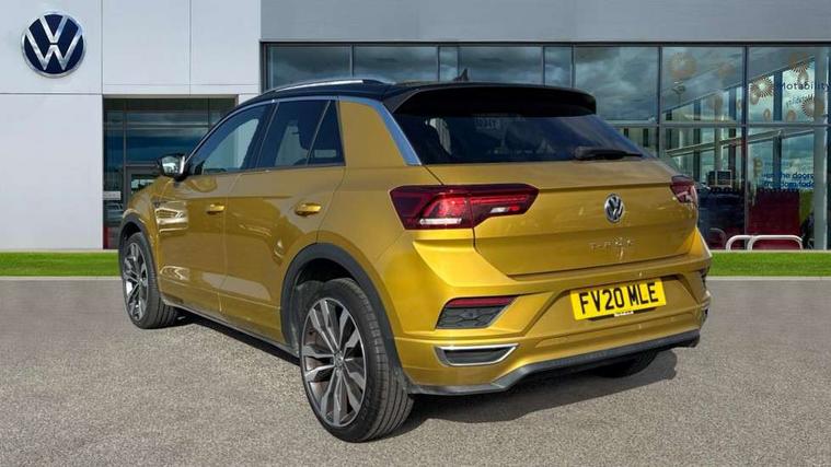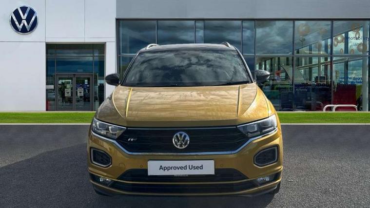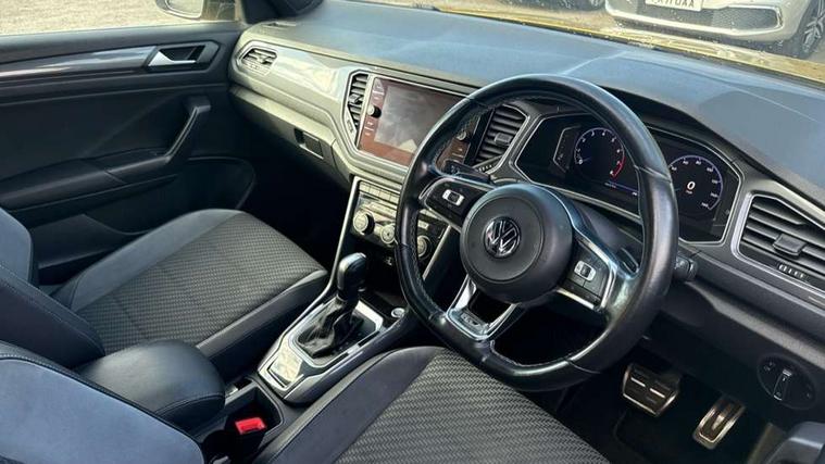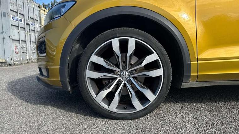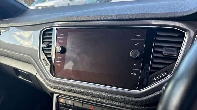 'Lights On' Reminder warning buzzer, 2 USB connection charging sockets, Active Info Display, 10.3" high resolution TFT dash display screen with customised information, Adaptive cruise control with front assist, radar sensor controlled distance monitoring, city emergency braking, App-Connect, Automatic start/stop system, Bluetooth telephone and audio connection for compatible devices, Car information display, Car-Net Security and Service, Discover navigation, 8" touch screen navigation/infotainment system with Car-Net, European map, CD/radio, 2D/3D map and speed limiter, Driver alert system with audible and visual fatigue detection system, Driver tips and journey analysis, Lane assist, Multifunction computer with visual gear change recommendation for fuel consumption, Service interval indicator, Think blue trainer driver tips and journey analysis, Voice activation, Warning sound and light for doors and tailgate open, Warning sound and light for front seatbelts unfastened, Battery regeneration during braking, DAB Digital radio, Dynamic navigation based on TMC+, Multi device interface (MDI) with USB connection, Music playback - MP3, WMA and AAC files, Premium USB cable in choice of either Apple or Android smartphone compatibility, SD card slot, Simultaneous pairing of 2 compatible mobile devices, SMS functionality - read, compose and send SMS messages using touch-screen display, Three route options - Fast, Short, Eco, Title and cover art display, Auto dimming interior rear view mirror, Black grained lower door protectors, Body colour door handles, Body colour rear roof spoiler, Chrome effect left and right trapezoid exhaust tailpipe fascia surround, Chrome trim on upper and lower radiator grille, Dusk sensor, Electrically foldable, adjustable and heated door mirrors with puddle lights and reverse activated kerb-view adjustment on passenger's door mirror, Front and rear electric windows, Front fog lights with static cornering function, Front windscreen wiper with intermittent wipe and 4 position delay, Fully galvanised body, Heated rear window, High level 3rd brake light, LED darkened rear light clusters, LED rear number plate lights, Manual coming/automatic leaving home lighting function, Rain sensor, Rear tinted glass from B-pillar backwards approx 65% tinted, Rear wash/wipe with intermittent wipe setting, 12V socket in centre console storage area, 2 Front and rear reading lights incorporating LED technology, 3 rear head restraints, 4 load lashing points in luggage compartment, Aluminium pedals, Ambient lighting in front footwell and light strips below trim in front doors, Black roof lining and sun visors, Branded points of interest, Carbon flag cloth upholstery, Climate control - 2 zone electronic air conditioning with automatic air recirculation and allergy filter, Drawer under drivers seat, Front and rear carpet mats with contrast stitching, Front centre armrest with storage compartment, longitudinal and height adjustable and two rear air vents, Front cupholders x 2, Front footwell illumination, Front seat back storage pockets, Front sports seats with R-Line logo on seat backrest, Glovebox, Height adjustable front seats, Height/reach adjust steering wheel, Illuminated vanity mirrors, Instrument lighting, white adjustable panel illumination, Interior light delay, Isofix easy fit child seat preparation for 2 outer rear seats, Load through provision with single cup holder when folded down, Luggage compartment cover, removable, Luggage compartment lighting, R Line badge, Split folding rear seat backrests with centre armrest, Storage compartment in left and right luggage area, Storage compartment in rear doors, Storage compartments in driver and front passenger doors, Three spoke multifunction leather trimmed steering wheel including gear knob and paddle shift with aluminium inserts contrast stitch and R Line logo, Unique R Line door sill protectors, R line styling pack - T-Roc, 3 rear three point seatbelts, ABS, Curtain airbags, Driver and front passenger safety-optimised head restraints, Drivers and front passengers airbags with passengers deactivation switch, Electronic parking brake with auto hold, Electronic stability control (ESC) includes ASR, EDL, EDTC and trailer stabilisation function, Front seat side impact airbags, Predictive pedestrian protection, Rigid safety cell with front and rear crumple zones, Three point height adjust front seatbelts + pretensioners, Tyre pressure loss indicator, Ventilated front and rear disc brakes, Volkswagen roadside assistance, Alarm with interior protection and deactivation via infotainment system, Electronic engine immobiliser, Remote central locking with 2 remote folding keys, Shadow steel decorative inserts in dash and door panel, 19" Suzuka alloy wheels with low rolling resistance tyres and anti wheel bolts, Space and weight saver spare wheel,