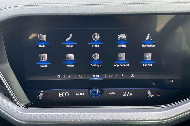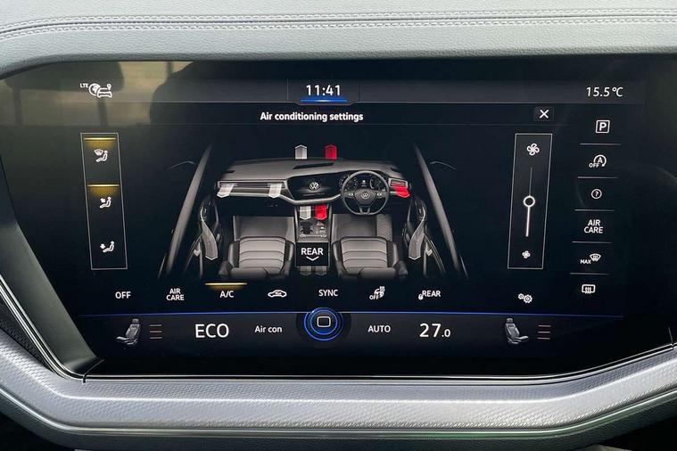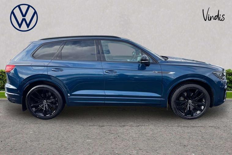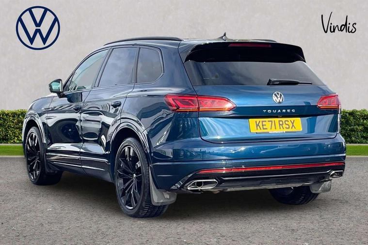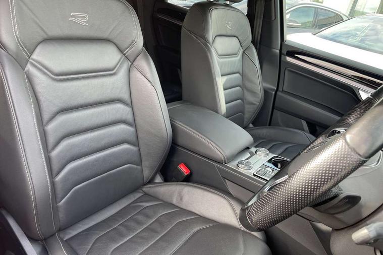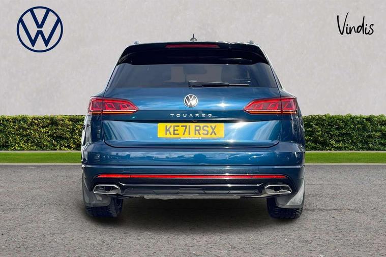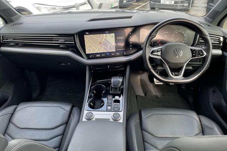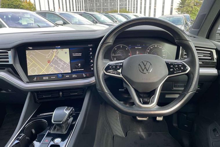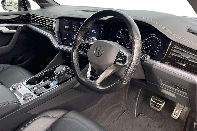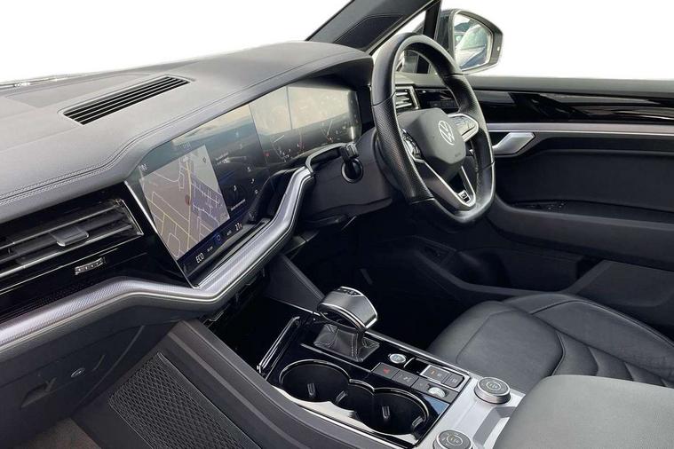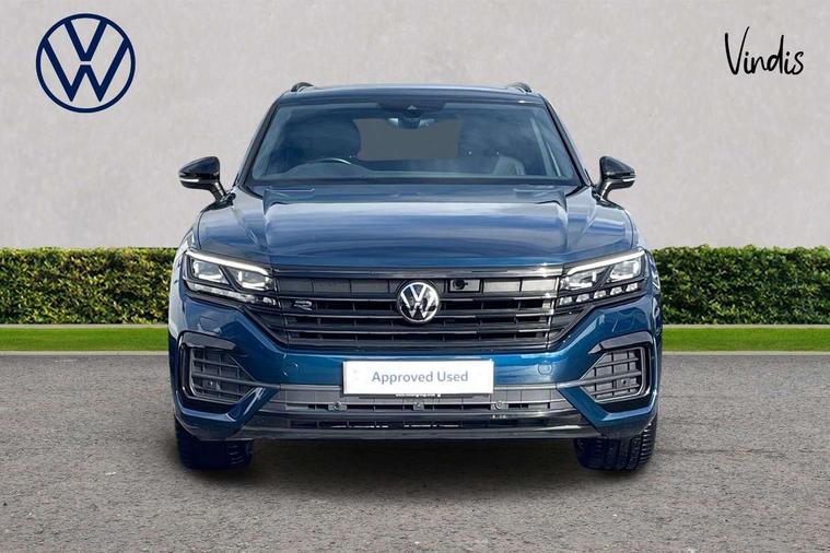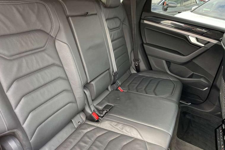 2D/3D map view, ACC - Adaptive cruise control with front assist, forward collision warning, distance monitoring, city emergency brake and speed limiter, Apple car play/Android Auto, Audible and visual fatigue detection system, Bluetooth hands free telephone connection, Car information display, Drive select with Damper control, Driver alert system, Driver profile selection, Dynamic road sign display camera controlled system with visual warning for traffic and road signs, eCall emergency system, Fully electric tailgate + keyless entry and start, Instrument cluster, MirrorLink, Multifunction camera with lane assist, Multifunction computer premium with 7" colour display, One touch indicators with repeat function, Service interval indicator, Speed sensitive power steering, Start/stop system with regenerative braking, Tailgate power latch, Think blue trainer driver tips and journey analysis, Traffic sign recognition, Voice control system, Wireless Smartphone charger, 24 litre AdBlue tank, Torsen limited slip differential, DAB Digital radio, Dynamic navigation based on TMC+, Gesture control for infotainment system, Multi device interface (MDI) with illuminated USB-C connection, Music playback - MP3, WMA and AAC files, SD card slot, Simultaneous pairing of 2 compatible mobile devices, SMS functionality - read, compose and send SMS messages using touch-screen display, Title and cover art display, Volkswagen media control, Adaptive low beam for urban and motorway use, Auto dimming rear view mirror, Automatic coming/leaving home lighting function, Automatic headlights, Black anodised roof rails, Black door mirrors, Black rear diffuser, Black side window surrounds, Black upper and lower grille louvres extending into headlights and radiator grille, Body colour door handles, Body coloured wheel arches, C signature gloss black front air intake, Chromed tailpipe on the left and right integrated in the bumper with trapezoid design, Dusk sensor, Dynamic headlight range control, Electric front tilt/slide panoramic sunroof and fixed rear sunroof, Electrically power adjustable, heated, folding, auto dimming, front passenger exterior door mirror lowering function, Front and rear electric windows, Galvanised body, Gloss black finish B pillar, Gloss black rear diffuser, Headlight washers, Heat insulating darkened glass in side and rear windows, Heated windscreen washer jets, IQ.Light-LED matrix headlight, daytime running light with dynamic cornering light and indicator, LED rear fog light, LED rear number plate lights, Plastic scuff plates in door apertures, Poor weather light, Puddle lights, Rain sensor, Rear side wing doors, Rear wiper, 12V socket in front and rear centre console and boot, 2 Coat hooks on B pillar, 3 rear head restraints, 3 spoke sport heated leather multi-function sports steering wheel with gear shift paddles - generation 2, 4 way adjustable front head restraints, 4 way electric lumbar support for driver and front passenger, 4 zone climate control, 40:20:40 split folding slide/recline rear seat, B pillar vents, Black lower edge of door extending sills, Branded points of interest, Double sun visor for drivier and passenger with LED illuminated vanity mirrors, Electric luggage compartment cover, Folding rear centre armrest with 2 cupholders, Front + rear carpet mats, Front centre armrest with storage box, Gear shift indicator, Height/reach adjust steering wheel, Illuminated air conditioned glovebox, Isofix preparation for 2 rear child seats, Jack and tool kit, Leather trimmed gear knob with gloss black inlay/aluminum trim, Leatherette door trim, LED luggage compartment lighting, Load through provision, Luggage compartment with load lashing rings, Plastic loading edge protection, Rear seat remote release levers, Soul black headlining, Stainless steel pedals, Innovision cockpit pack - Touareg, 3 point front seatbelts with pre-tensioners, ABS, Active bonnet, Automatic post collision braking system, Curtain airbags, Driver/Front Passenger airbags, EBD + Brake Assist, EDL, Electronic parking brake with auto hold, ESC with ASR, Front seat side impact airbags, Hill descent control, Hill start assist, Passenger airbag deactivate switch, Seatbelt warning lamp and buzzer, Three 3 point rear seatbelts, Two tone horn, Volkswagen roadside assistance, Warning triangle and first aid kit, Alarm with interior monitoring in cab, backup horn and towing protection, Child security locks for front and rear doors, Electronic engine immobiliser, Remote central locking, Black decorative trims on the side windows, High gloss black centre console,