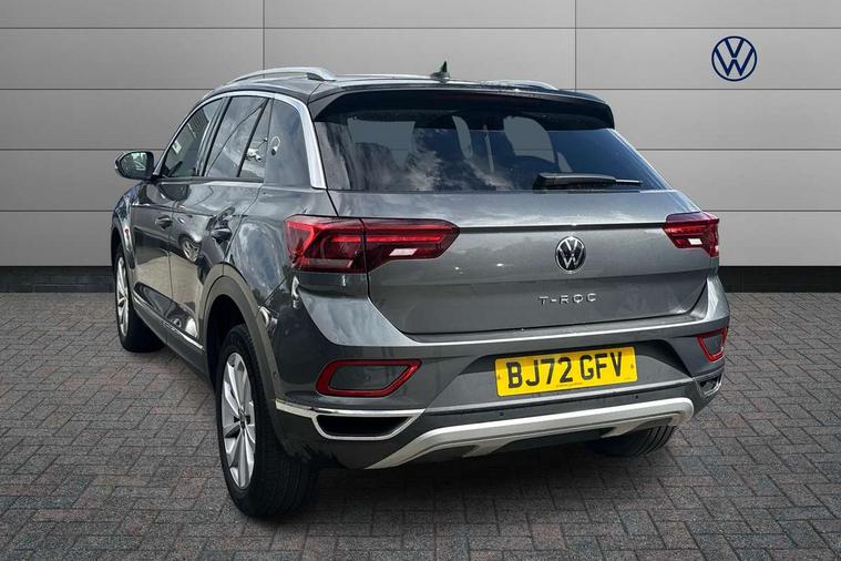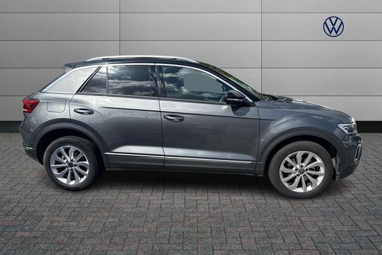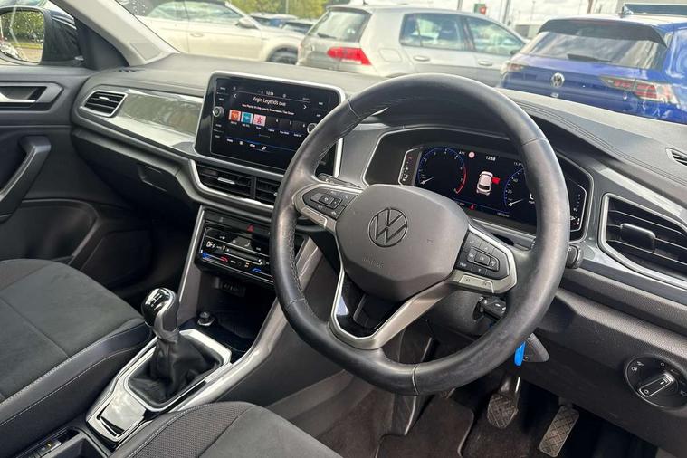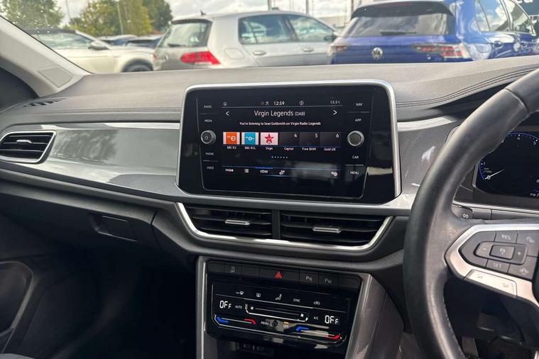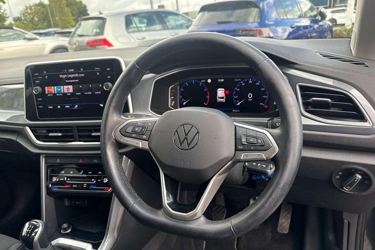 10.25" Digital cockpit pro, Bluetooth mobile phone interface, Driver alert system with fatigue detection, Driver tips and journey analysis, Dynamic road sign display, Emergency call service, Lane keeping system Lane Assist, Modified key software - reduce switch off time for key status change to Long no motion, Online services, Park assist including front and rear parking sensors, Power assisted speed sensitive steering, Service interval indicator, Tailgate/trunk lid release from outside, Think blue trainer driver tips and journey analysis, Warning sound and light for front seatbelts unfastened, Wireless app connect, Battery regeneration during braking, Front shock absorption, Rear shock absorption chassis with increased ride height, Start/stop function with battery regeneration, Diversity antenna for FM reception, Front and rear 6 speakers, Music playback - MP3, WMA and AAC files, Premium USB cable in choice of either Apple or Android smartphone compatibility, SD card slot, Simultaneous pairing of 2 compatible mobile devices, Title and cover art display, We Connect and We Connect Plus functionality, 3rd brake light, Auto dimming interior rear view mirror, Automatic hazard lights activation under emergency braking, Automatic headlight control with LED separate daytime running lights with coming/leaving home function, Body colour sports bumpers with silver metallic underbody fascia, Dynamic headlight range control with self adjusting whilst driving, Extended roof spoiler, Exterior mirrors aspherical on driver side, convex on front passenger side, External USB type C socket and charging sockets, Front windscreen wiper with intermittent wipe and 4 position delay, Heated rear window, LED Plus headlamps, LED rear combination lamps, LED rear number plate lights, LED tail lamp rear comination lamps, Light mode for poor weather, rain, fog or snow, Power windows with comfort operation and circuit breaker, Rain sensor, Rear exhaust tailpipe, Rear fog light on one side and reversing lights on both sides, Rear side wing doors, Rear wash/wipe with intermittent wipe setting, Remote electrically foldable door mirrors, puddle lights and reverse activated passenger's door mirror, 12V power socket in centre console, 3 rear head restraints, 3 seat bench in 2nd row, 4 load lashing points in luggage compartment, Air care climatronic air conditoning system with active combination filter and 2-zone temperature control, Chrome plated radiator grille inserts, air vent surrounds and light switch surrounds, Door and side trim panel with leatherette insert, Drawer under drivers seat, Front + rear carpet mats, Front centre armrest, Front comfort sports seats, Front cupholders x 2, Front footwell illumination, Instrument lighting, white adjustable panel illumination, Interior ambient lighting and surround lighting, Interior light delay, Isofix child seat preparation, Leather gearshift handle, LED interior light with switch off delay/dimmer and 2 front/rear LED reading lights, Load-through provision with cup holder when folded down ('Unsplit rear seat bench, split folding backrest, with centre armrest), Luggage compartment lighting, Non-folding front passenger seat backrest, Single front passenger seat, Storage compartment in left and right luggage area, Storage compartment in rear doors, Storage compartments in driver and front passenger doors, Sunvisors with illuminated vanity mirrors, Variable boot floor, height adjustable and removable, Driver assistance pack without proactive passenger protection - T-Roc, 3 point height adj front seatbelts + pretensioners, 3 point seatbelts in outer rear with ECE label, ABS, Child locks on rear doors, Driver and front passenger airbag with front passenger airbag deactivation, Driver and front passenger safety-optimised head restraints, Drivers seatbelt reminder, Electronic parking brake, Electronic Stability Control (ESC) inc EDL (Electronic Differential Lock) and ASR (Traction Control), Front and rear passengers curtain airbag system including front side airbags, Front assist with city emergency braking and pedestrian monitoring, Front disc brakes, Front seat side impact airbags, Predictive pedestrian protection, Rear disc brakes, Single tone horn, Tyre pressure loss indicator, Volkswagen roadside assistance, Alarm with interior protection, Anti-theft alarm system with interior monitoring, backup horn, and towing protection, Remote central locking with SAFELOCK, radio remote control with 2 remote control folding keys, Trims for alloy wheels,