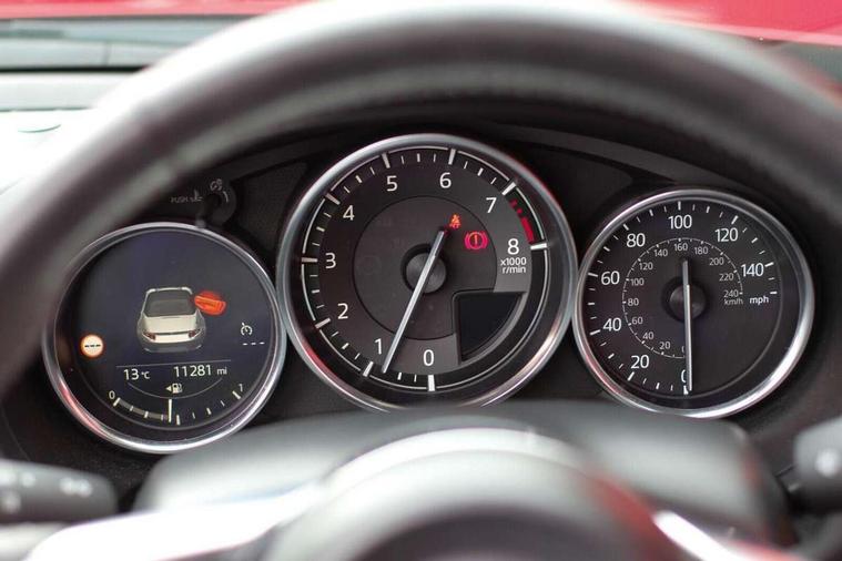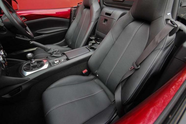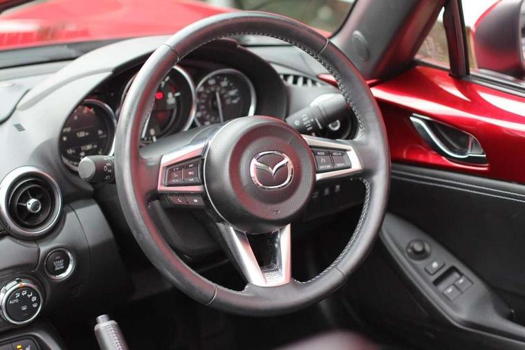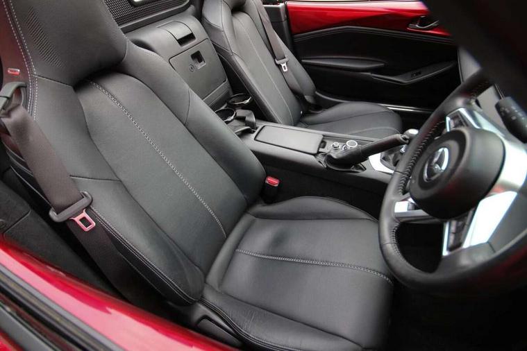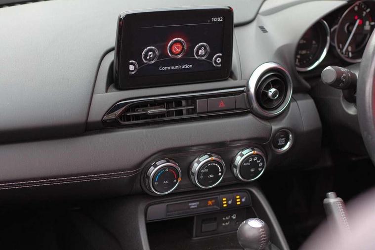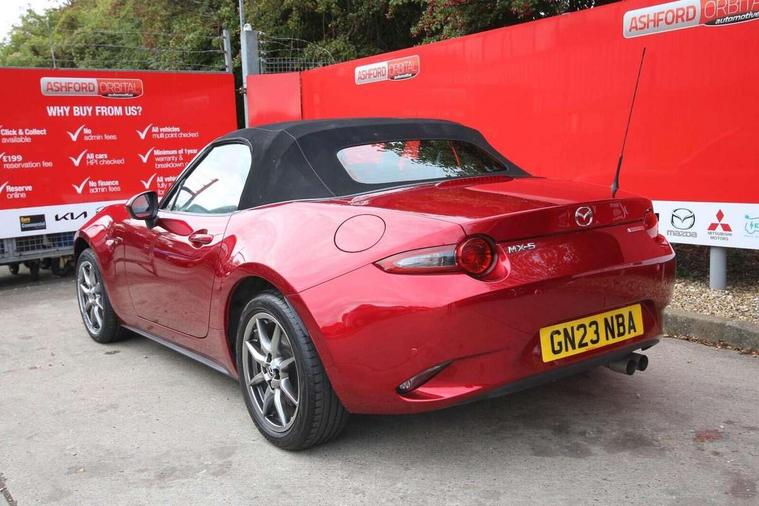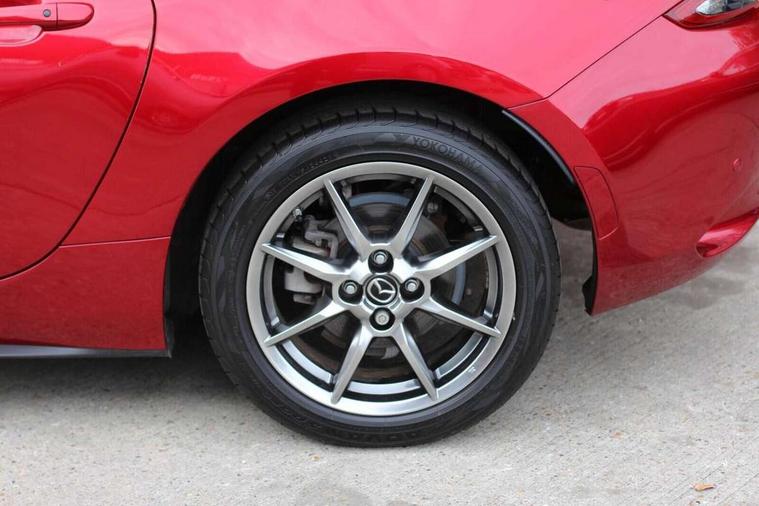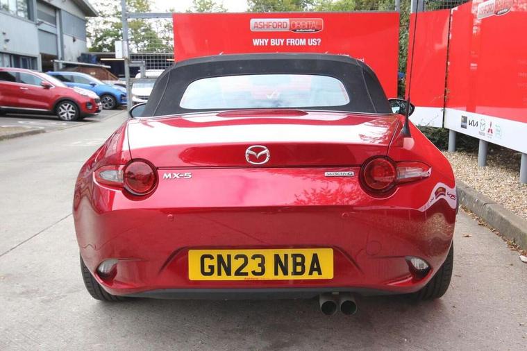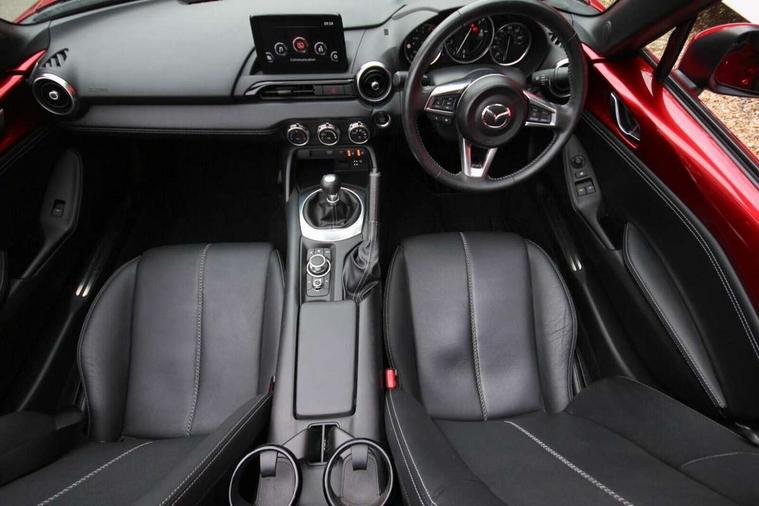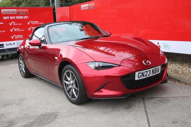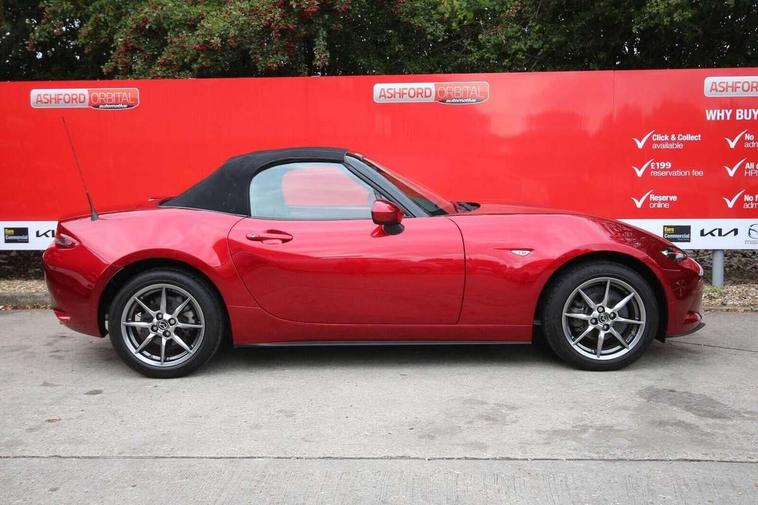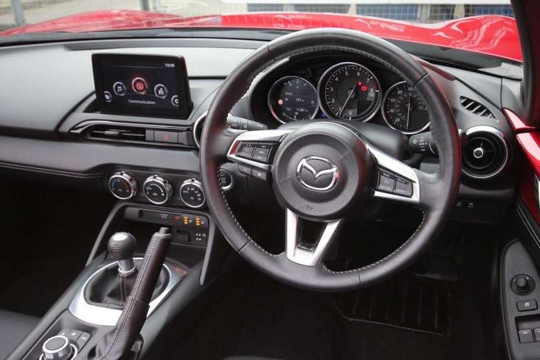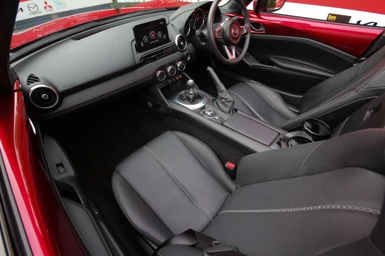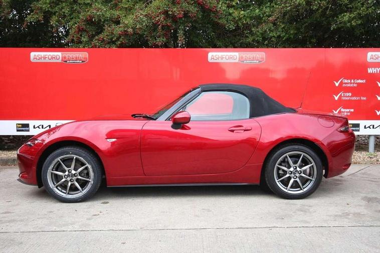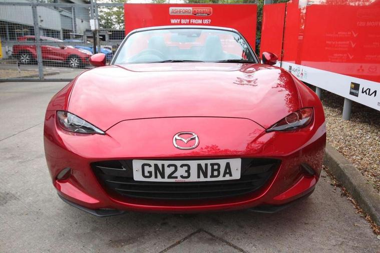 7" colour touch screen with Mazda connect infotainment, Aha and stitcher app, Analogue speedometer, Apple car play/Android Auto, Cruise control + speed limiter, Driver alert system, eCall emergency call system, Emergency stop signalling system, Engine start/stop button, Hands free phone preparation, Integrated bluetooth with hands-free calling, bluetooth audio and easy access to phone contacts, Integrated navigation system, Lane departure warning system, Multi dot display tachometer and electric odometer, PAS, Rear parking sensor, Service indicator, Traffic sign recognition, Trip computer, Water temperature gauge, I-ELOOP, i-stop, 2 USB/aux input socket, Multimedia Commander including separate volume dial, Premium Bose sound system with 9 speakers with 2 in each front headrest, AM/FM/DAB radio and MP3, Steering wheel mounted audio/bluetooth controls, Adaptive front lighting system, Auto dimming rear view mirror, Automatic headlamp levelling, Black scuff plates with stainless steel insert, Body colour bumpers, Body colour co ordinated interior upper door trim, Body coloured electric/heated door mirrors, Coming/leaving home lighting function, Dual exhaust pipes, Dusk sensitive headlamps, Electric front windows/one touch facility, High mounted rear brake light with Black coloured cover, LED 3rd brake light, LED daytime running lights, LED Headlights, LED indicator lights, LED rear lights, Manually operated black premium cloth soft top with heated rear glass window, Piano Black fashion bars, Rain sensing front wipers, Rear boot, 12V socket, Centre console storage box, Chrome Air conditioning dials, Climate control air conditioning, Coin Box, Driver and front passenger sunvisors with covered vanity mirror and driver ticket holder, Driver seat manual slide, recline and tilt adjustment, Front centre armrest, Front head restraints, Gear shift indicator, Heated front seats, in 3 heat levels, Interior courtesy light, ISOFIX front passenger seat child seat compliance, Leather gear knob, Leather handbrake lever, Leather steering wheel, Lockable rear centre box with lid, Passenger seat + manual slide/recline adjust, Perforated leather upholstery, Side door trim in black vinyl with silver stitching, Single front passenger seat, Sports seats, Tilt/telescopic steering column, Two cupholders, Windblocker, 3 point ELR front seatbelts with pretensioners, ABS+Electronic Brake force Distribution, Deployable Hood System (DHS), Driver and front passenger airbags, Driver and passenger seatbelt reminder audible warning, Front dynamic yaw stability control, Hill hold assist, Passenger airbag deactivate switch, SCBS - Smart City Brake Support, rear plus front with autonomous emergency braking, Side airbags, Traction control, Tyre pressure monitor, Remote central locking with deadlocking and remote boot release, Smart keyless entry, Superlocking, Thatcham category 1 alarm + immobiliser, Chrome air vent surrounds, Chrome meter rings, Dashboard panel - vinyl leather Black, 16" Bright Silver alloy wheels, Tyre puncture repair kit,
