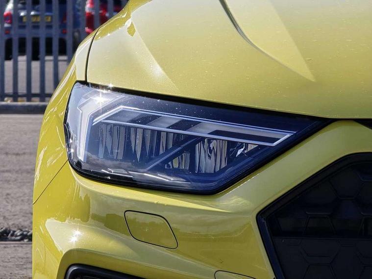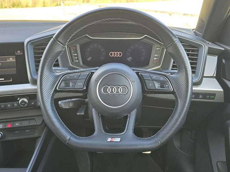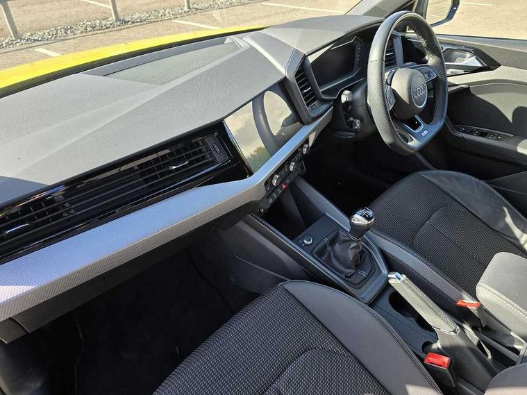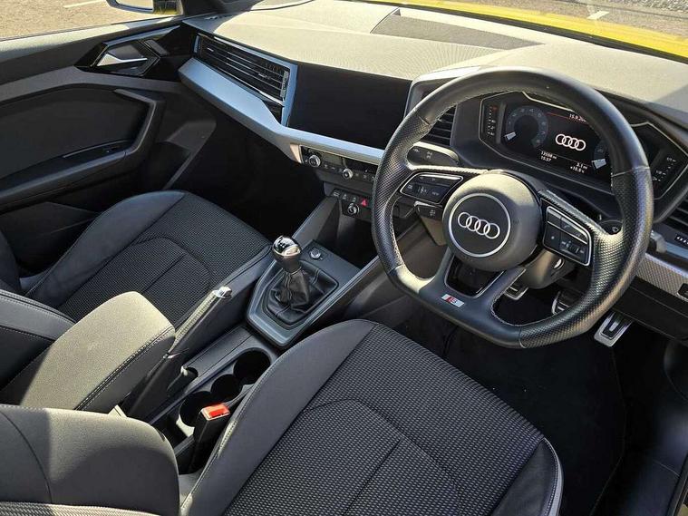 10.25" Digital instrument cluster display classis style instrument dials + speed, odometer, time, outside temperature, telephone menu + fuel level warning, Audi drive select - power steering assistance + engine, Audi smartphone interface with connect compatible smartphone via USB directly MMI display + Nav, music, third party apps controlled via MMI controller, Automatic start/stop system, Bluetooth interface, Cruise control, Driver's information system, Electromechanical power steering, Emergency e-call, Lane departure warning system, Rear parking sensor, Service interval indicator, Speed limiter, Voice control system, Washer fluid level indicator, Sports suspension, 2 x USB type C connection points, 6 passive loudspeakers, DAB Digital radio, MMI radio plus with 10.1" colour MMI display screen and MMI touch, Auto dimming rear view mirror, Black door mirrors, Black side skirts, Body coloured bumpers, Door sill trims with aluminium inlays and logo, Electric front and rear windows, Electrically adjustable, heated, folding door mirrors with integrated LED side indicator, Front wing badges, Heat insulating glass windscreen and side windows, Heated rear windscreen, High level LED brake light, LED headlights with LED rear lights + dynamic rear indicators + headlight adjustment and high beam, turning light + LED daytime running lights, Privacy glass, Rain and light sensors, Rear fog lights, Rear side wing doors, Rear wiper, Side front spoiler lips in grained matt black, 12V socket in centre console with two cup holders, 3 rear seats with headrests, 3 seat bench in 2nd row, 3 spoke flat bottomed multi-function plus leather steering wheel with S badging, grips in preforated leather and contrast stitching, 40:60 Split folding rear seat or folded fully, Black cloth headlining, Driver and passenger seat with manual height adjust with forward and backwards adjustment, Front and rear black floor mats with contrast stitching in fine silver, Front head restraints, Front passenger seat, Height and reach adjustable steering wheel, ISOFIX child seat mounting for front passenger and outer rear seats including top tether attachment point of outer rear seats, Leather gear knob with aluminium trim, Leatherette handbrake grip, Luggage compartment light with front and rear reading lights, Manual air conditioning, Manually adjustable lumbar support in front seats, Stainless steel pedals, Black styling pack - A1 Sportback Black Edition, LED interior lighting pack - A1, Luggage compartment pack - A1, 3x3 point rear seatbelts, Audi pre-sense front with pedestrain and cyclist recognition, Brake assist function, Driver and front passenger airbag with front side and head airbags, Electronic Stability Control including ABS, EBD, ASR and EDL, Front passenger airbag deactivation switch, Hill hold assist, Manual rear child locks, Seatbelt height adjustment for front seats, Seatbelt monitoring, Tyre pressure warning light, Warning triangle and first aid kit, Anti theft alarm, Anti theft wheel bolts and loose wheel warning, Immobiliser, Remote central locking with 2 foldaway keys, Aluminium trim for control switches, air vents and digital instrument cluster, Black dashboard, Silver grey inlays polygon structure in diamond paint finish, Structured grey accent areas including air vents, door handle recesses and centre console in quartz paint finish, 18" 7 spoke rotor design alloy wheels in gloss anthracite black, diamond cut finish,