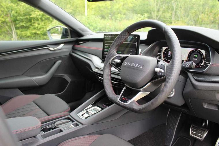 1x USB Typc C port in rear view mirror, 4x USB Type C ports - 2x in front centre console and 2x in rear (45W), Drive mode selection, Driver fatigue sensor, eCall emergency system, Electronic engine sound, Front assist system, Progressive dynamic steering, Traffic sign recognition, Turn Assist, Virtual Cockpit - 10.25" digital display, Voice control system, Wireless charging (15W) with cooling function, Wireless SmartLink for Apple CarPlay and Android Auto, Electronically controlled limited slip differential, vRS suspension, 13" touchscreen display with navigation, DAB Digital radio, Aero front windscreen wipers with intermittent function, Auto dimming rear view mirror, Black sport exhaust pipes, Body colour bumpers, Body colour door handles, Bumpers with rear red reflector strip, Electric front and rear windows, Exterior gloss black sports styling including front grille, window surrounds, door mirrors and badging, Gloss black diffuser, Gloss black roof rails, Gloss black spoiler, Heated rear windscreen, High beam control, High level third brake light, Ice scraper in fuel cap, LED daytime running lights, Logo projection in front doors, Rain and light sensors, Rear fog light on one side and reversing lights on both sides, Rear privacy glass, Rear side wing doors, Rear window wiper, Unique vRS bumpers and exterior styling, 12 volt socket in boot, 2x umbrella in door, 3 rear headrests, 3 seat bench in 2nd row, 4 foldable roof handles, Aluminium pedals, Front head restraints, Front sport seats, Heated front seats, Illuminated glovebox, Interior door handles in dark chrome, Jumbo Box storage, Luggage compartment lighting x2 lights, Mechanical rear seat release from boot, Single front passenger seat, Steering wheel in black leather with black stitching, Storage compartments in left and right of boot, Sun visors with mirrors, Sunglasses storage, Three spoke leather sports multifunction steering wheel with paddles, Ticket holder, Unsplit rear bench seat, split folding backrest with centre armrest with cupholder, Waste bin in door panel, Comfort package - Octavia Estate, Family package - Octavia, Light and view package plus - Octavia, vRS Design Selection pack - Octavia, 3x3 point rear seat belts, Alarm with interior monitoring, tilt sensor and back up horn, Curtain airbags and front side airbags, Driver and front passenger airbags, Drivers knee airbag, Electronic parking brake, ESC including ABS, EBV, MSR, ASR, EDS, HBA, DSR, Front central airbag, Hill hold assist, ISOFIX on front passenger seat and outer rear seats, Passenger airbag deactivate switch, Red brake calipers, Three point seat belts in front and rear, Two tone horn, Tyre pressure monitor, Visual and acoustic seat belt reminder, Warning reflectors in front door, Anti-theft wheel bolts, Keyless entry and start/stop, Remote central locking, Gloss black air vent surrounds, 19" Elias anthracite alloy wheels,