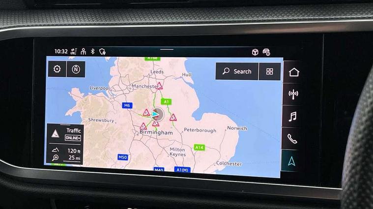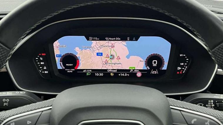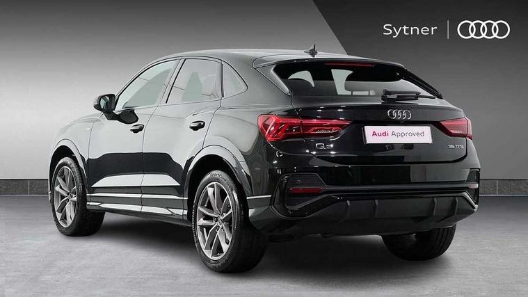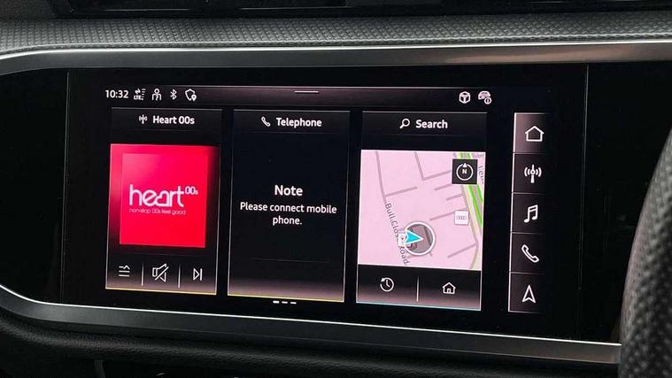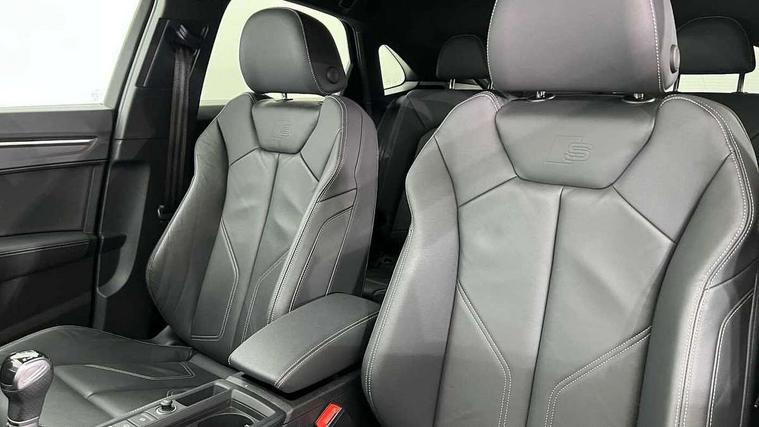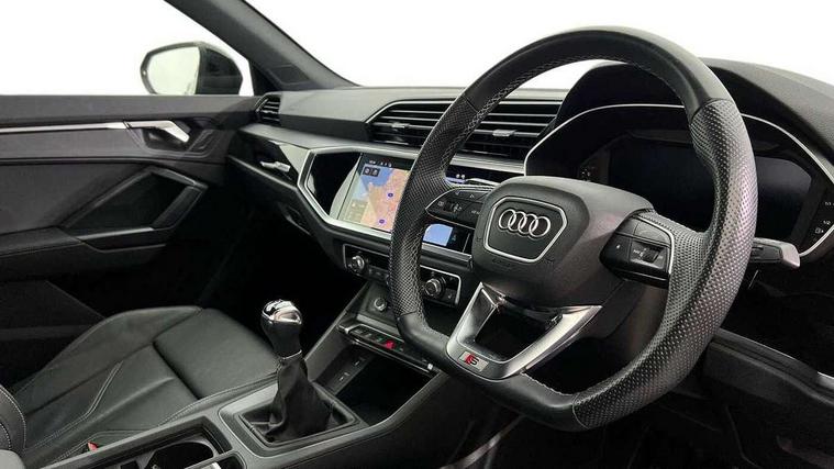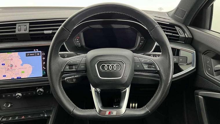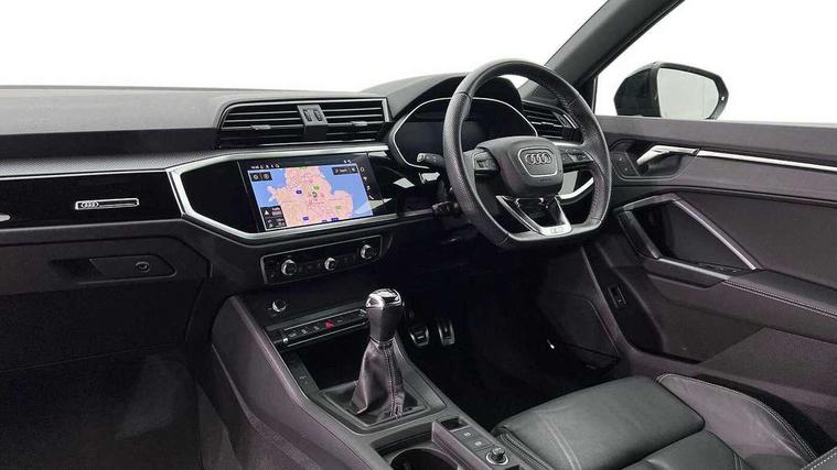 Amazon alexa Integration, Audi drive select, Audi lane departure warning, Audi Virtual Cockpit - 10.25" display, Bluetooth interface, Camera based traffic sign recognition, Cruise control + speed limiter, Legal emergency call, MMI Navigation Plus with high resolution 10.1 inch touchscreen colour display, Power operated tailgate, Progressive steering, Rear parking sensors, Service interval indicator, Smartphone interface includes wireless Apple carplay/Android Auto, Start stop system with recuperation, Voice control system with natural language interaction, Sports suspension, 2 USB-C ports with charge and data functions, 6 passive loudspeakers, DAB digital radio module, Acoustic windscreen, Auto dimming frameless rear view mirror, Black roof rails, Electrically folding, adjustable and heated door mirrors with integrated LED side indicators and kerb view function for passenger side, Front and rear electric windows, Front fog lights, Grille vertical bars in aluminium silver/Matt, High gloss black finish B and C pillars, LED Dynamic rear indicators, LED headlights with LED daytime running lights, LED rear lights, LED third brake light, Privacy glass dark tinted rear and rear-side windows (from B-pillar backwards), Rain and light sensors, Rear diffuser grille in grained matt black, Rear diffuser strip in matt titanium black, Rear side wing doors, Rear wiper, S line bumpers in contrasting Manhattan grey, Variable front intermittent wipers, 12V socket in rear centre console, 3 seat bench in 2nd row, 3 spoke flat bottomed multi-function leather sport steering wheel, 40:20:40 folding with manual adjustment for 60:40 forwards/backwards position and backrest angle, Adjustable rear seat bench/backrest with centre armrest and cupholder, Black cloth headlining, Dual zone electronic climate control, Front and rear black floor mats with contrast stitching in rock grey, Front and rear headrests, Front and rear roof module including reading lights, Front centre armrest, Glove compartment lighting, Height and reach adjustable steering wheel, Illuminated door sill trims with S logo, ISOFIX child seat mounting for front passenger with airbag deactivation and outer rear seat including top tether attachment point for outer rear seats, Luggage compartment light, Manual front seats with height adjustment, Perforated leather gearknob, Single front passenger seat, Stainless steel luggage compartment sill finisher, Stainless steel pedals, Ambient lighting pack - Q3, Black styling pack - Q3, Non smoking pack - Q3, 3x3 point rear seatbelts, 6 airbags - Driver, front passenger, curtain and side windows, Audi pre-sense front with pedestrain and cyclist recognition, Electrically operated child locks on rear doors, Electromechanical parking brake, Electronic stabilisation control including ABS, ASR and EDL, Front seatbelt reminder, Hill descent control, Hill hold assist, Pre sense basic, Seatbelt monitoring, Tyre pressure warning, Warning triangle and first aid kit, Anti theft alarm, Anti theft wheel bolts, Immobiliser, Remote central locking, Detail dashboard around MMI touch colour display in glass look, black with surround in aluminium look, Leatherette door armrest, Piano black inlay,