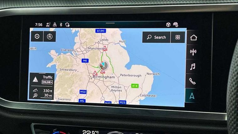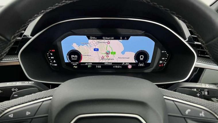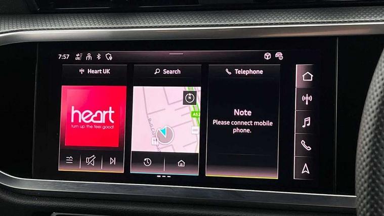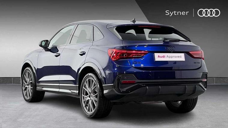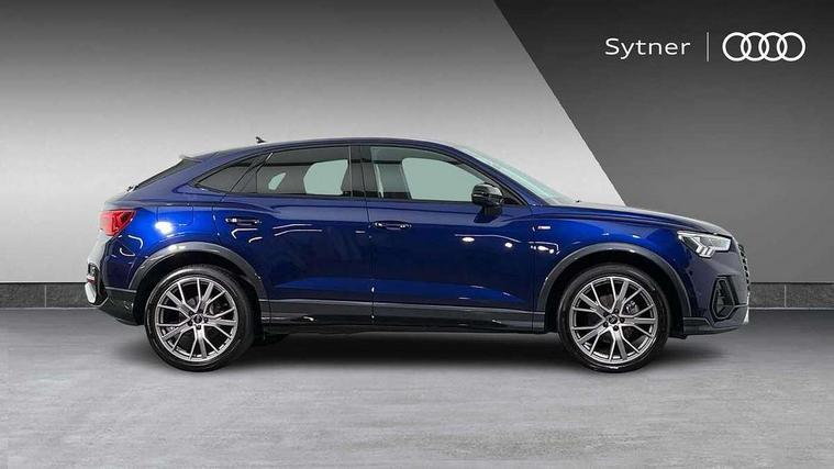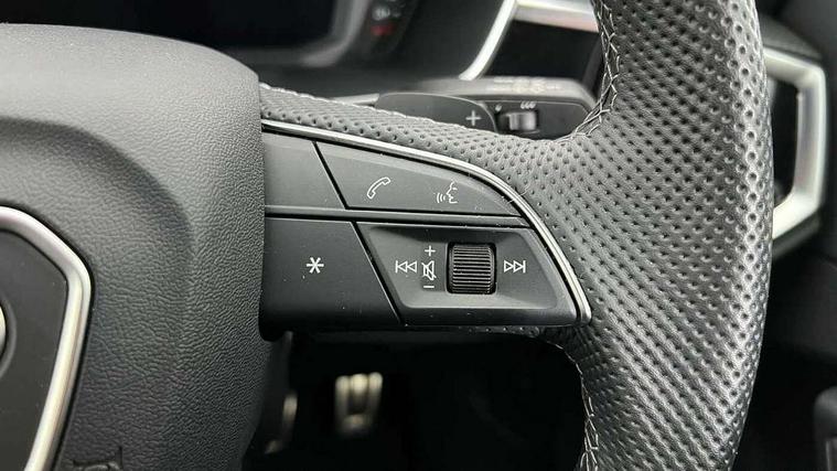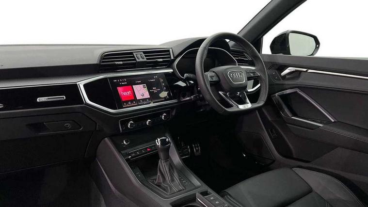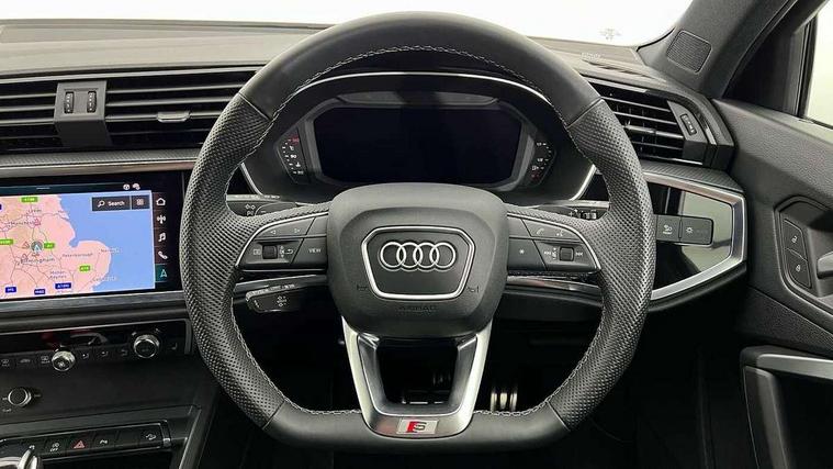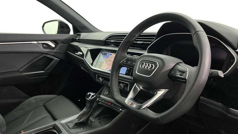 Audi connect safety and service, Audi drive select, Audi lane departure warning, Audi Virtual Cockpit - 10.25" display, Bluetooth interface, Camera based traffic sign recognition, Distraction and Fatigue warning, Legal emergency call, MMI Navigation Plus with high resolution 10.1 inch touchscreen colour display, Power operated tailgate, Progressive steering, Service interval indicator, Smartphone interface includes wireless Apple carplay/Android Auto, Start stop system with recuperation, Voice control system with natural language interaction, Diesel particulate filter, Sports suspension, 2 USB-C ports with charge and data functions, 6 passive loudspeakers, DAB digital radio module, Acoustic windscreen, Audi Beam uses LEDs to project the Audi logo onto the ground as you exit your Q3, Auto dimming door mirrors, Auto dimming frameless rear view mirror, Diffuser grille in grained matt black, Diffuser trim in selenite silver, Electrically folding, adjustable and heated door mirrors with integrated LED side indicators and kerb view function for passenger side, Front and rear electric windows, Front fog lights, Front underbody protection in manhattan grey paint finish, High gloss black finish B and C pillars, LED Dynamic rear indicators, LED headlights with LED daytime running lights, LED rear lights, LED third brake light, Privacy glass dark tinted rear and rear-side windows (from B-pillar backwards), Rain and light sensors, Rear side wing doors, Rear underbody protection in matt black, Rear wiper, S line front and rear bumpers and side skirts in contrasting Manhattan grey paint finish, Variable front intermittent wipers, 12V socket in rear centre console, 3 seat bench in 2nd row, 40:20:40 folding with manual adjustment for 60:40 forwards/backwards position and backrest angle, Adjustable rear seat bench/backrest with centre armrest and cupholder, Black cloth headlining, Dual zone electronic climate control, Electric lumbar support, Front and rear black floor mats with contrast stitching, Front and rear headrests, Front centre armrest, Height and reach adjustable steering wheel, Illuminated door sill trims with S logo, ISOFIX child seat mounting for front passenger with airbag deactivation and outer rear seat including top tether attachment point for outer rear seats, Luggage compartment sill protection in stainless steel, Manual front seats with height adjustment, Perforated leather gearknob, Single front passenger seat, Stainless steel pedals, Twin leather upholstery with front sport seats + S embossing, Black styling pack - Q3, Non smoking pack - Q3, 3x3 point rear seatbelts, 6 airbags - Driver, front passenger, curtain and side windows, Audi pre-sense front with pedestrain and cyclist recognition, Electrically operated child locks on rear doors, Electromechanical parking brake, Electronic stabilisation control including ABS, ASR and EDL, Front seatbelt reminder, Hill descent control, Hill hold assist, Pre sense basic, Seatbelt monitoring, Tyre pressure warning, Warning triangle and first aid kit, Anti theft alarm, Anti theft wheel bolts, Immobiliser, Remote central locking, Aluminium look interior elements, Detail dashboard around MMI touch colour display in glass look, black with surround in aluminium look, Leatherette door armrest, Piano black inlay,