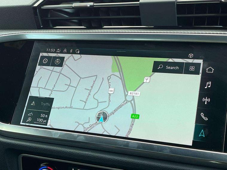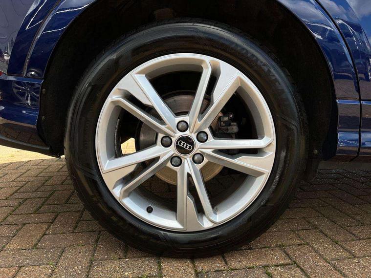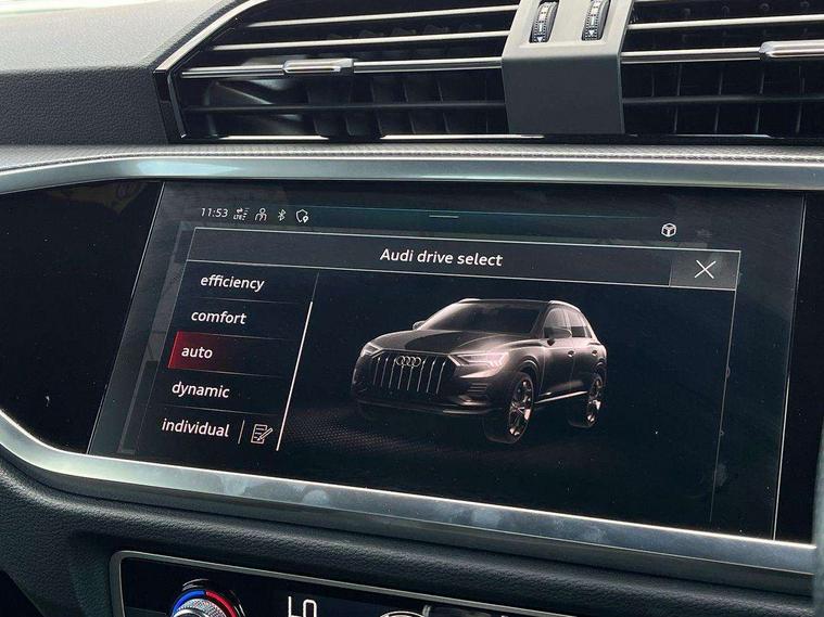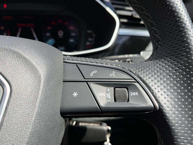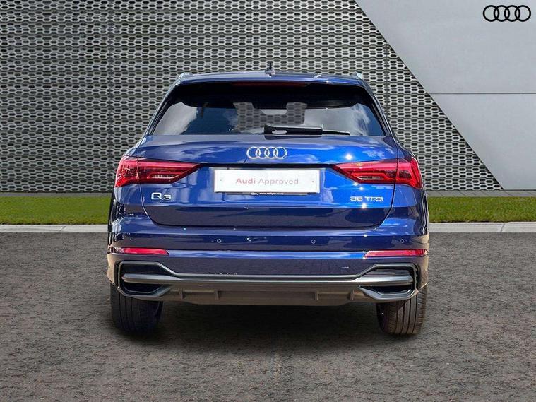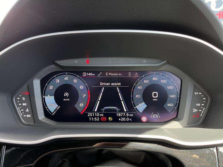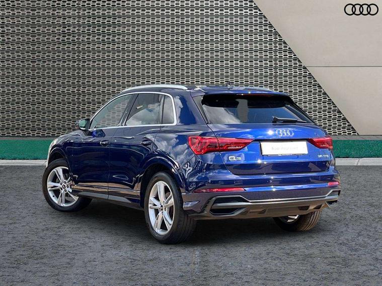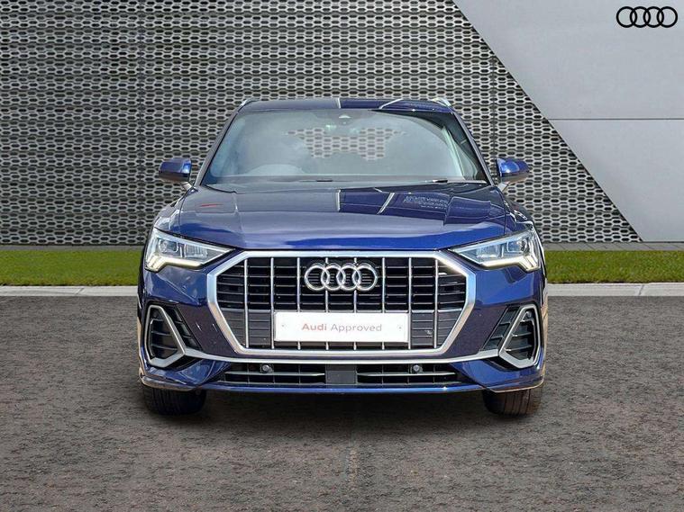 Amazon alexa Integration, Audi connect safety and service (e-call), Audi drive select, Audi lane departure warning, Audi Virtual Cockpit - 10.25" display, Bluetooth interface, Camera based traffic sign recognition, Cruise control + speed limiter, MMI Navigation Plus with high resolution 10.1 inch touchscreen colour display, Power operated tailgate, Progressive steering, Rear parking sensors, Service interval indicator, Smartphone interface includes wireless Apple carplay/Android Auto, Start stop system with recuperation, Voice control system with natural language interaction, Sports suspension, 2 USB-C ports with charge and data functions, 6 passive loudspeakers, DAB digital radio module, Acoustic windscreen, Aluminium roof rails, Aluminium window trim, Auto dimming frameless rear view mirror, Body coloured bumpers, Electrically folding, adjustable and heated door mirrors with integrated LED side indicators and kerb view function for passenger side, Front and rear electric windows, Front fog lights, Front side air inlets in matt platinum grey, Front spoiler blade in matt platinum grey, Grille vertical bars in aluminium silver/Matt, High gloss black finish B and C pillars, LED headlights with LED daytime running lights and dynamic rear indicator, LED rear lights, Privacy glass dark tinted rear and rear-side windows (from B-pillar backwards), Rain and light sensors, Rear diffuser strip in matt titanium black, S line badges on front wings, S Line front and rear bumpers, Side skirt insert in matt Platinium grey, Silver chrome grille surround, Titanium black radiator grille, 12V socket in rear centre console, 40:20:40 folding with manual adjustment for 60:40 forwards/backwards position and backrest angle, Adjustable rear seat bench/backrest with centre armrest and cupholder, Black cloth headlining, Dual zone electronic climate control, Front and rear black floor mats with contrast stitching in rock grey, Front and rear headrests, Front and rear roof module including reading lights, Front centre armrest, Glove compartment lighting, Height and reach adjustable steering wheel, Illuminated door sill trims with S logo, ISOFIX child seat mounting for front passenger with airbag deactivation and outer rear seat including top tether attachment point for outer rear seats, Luggage compartment light, Manual front seats with height adjustment, Perforated leather gearknob, Stainless steel luggage compartment sill finisher, Stainless steel pedals, Non smoking pack - Q3, 3x3 point rear seatbelts, 6 airbags - Driver, front passenger, curtain and side windows, Audi pre-sense front with pedestrain and cyclist recognition, Electrically operated child locks on rear doors, Electromechanical parking brake, Electronic stabilisation control including ABS, ASR and EDL, Hill descent control, Hill hold assist, Pre sense basic, Seatbelt monitoring, Tyre pressure warning, Warning triangle and first aid kit, Anti theft alarm, Anti theft wheel bolts, Remote central locking, Dark matt brushed aluminium inlay, Detail dashboard around MMI touch colour display in glass look, black with surround in aluminium look, Leatherette door armrest,