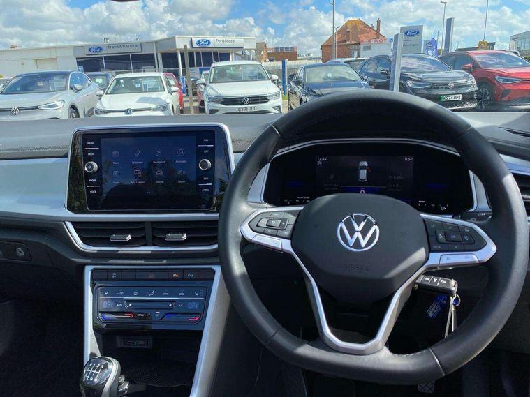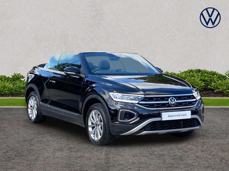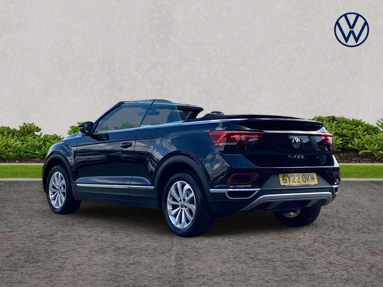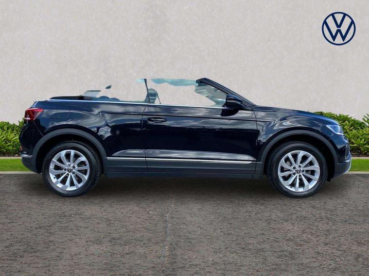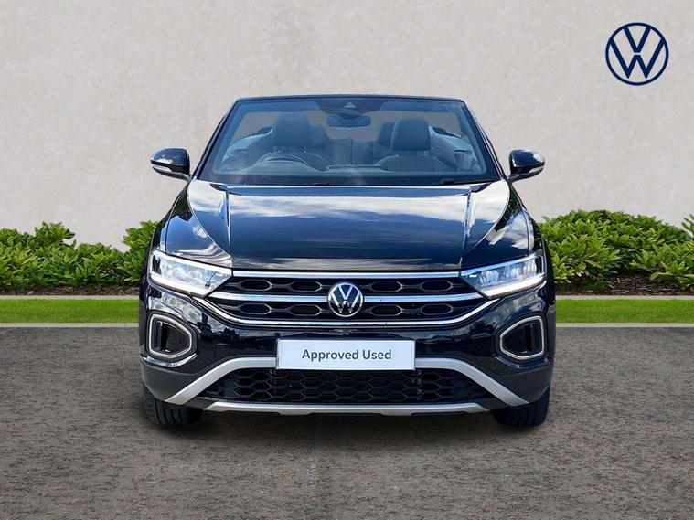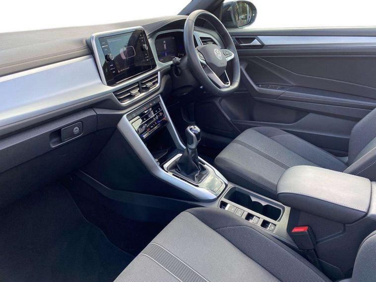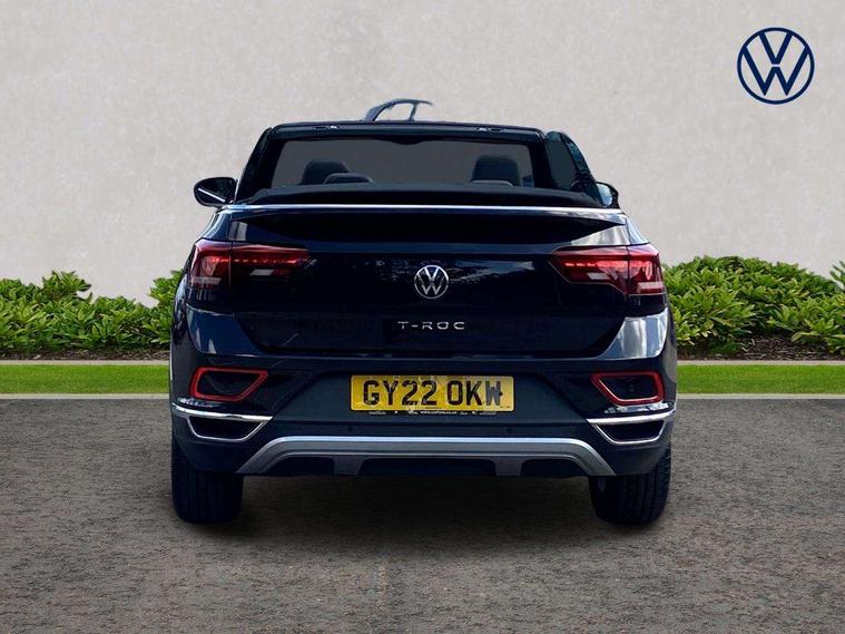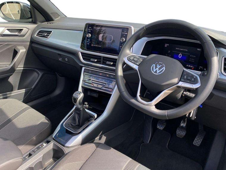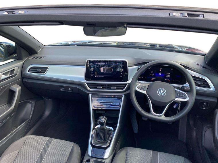 Driver assistance package - T-Roc cabriolet, Trims for alloy wheels, Anti-theft alarm system with interior protection and central locking system with SAFELOCK, radio remote control and 2 remote control folding keys, Electronic engine immobiliser, Diversity antenna for FM reception, Music playback - MP3, WMA and AAC files, SMS functionality - read, compose and send SMS messages using touch-screen display, Title and cover art display, USB-C Interface and USB charging socket, We Connect and We Connect Plus functionality, 2 x 3-point seatbelts/outer rear seats with ECE label, Driver and front passenger airbag with front passenger airbag deactivation, Driver and front passenger safety-optimised head restraints, Drivers seatbelt reminder, Electronic parking brake, Electronic Stability Control (ESC) including ABS, ASR and EDL, Front and rear disc brakes, Front assist with autonomous emergency braking, Pedestrian monitoring, Predictive pedestrian protection, Rigid safety cell with front and rear crumple zones, Side airbag/thorax airbag system, for front passengers, Single tone horn, Three point height adjust front seatbelts + pretensioners, Tyre pressure loss indicator, Volkswagen roadside assistance, Auto dimming interior rear view mirror, Automatic hazard lights activation under emergency braking, Automatic headlight control with LED separate daytime running lights with coming/leaving home function, Black roof, Body colour door handles, Body colour rear spoiler, Body coloured bumpers and radiator grille with chrome trim and front fog lamps with chrome bezel, Chrome effect left and right trapezoid exhaust tailpipe fascia surround, Dark red rear combination lamps in LED technology, Exterior mirrors aspherical on driver side, convex on front passenger side, Headlight range control, Heat insulating glass windscreen, High level 3rd brake light, LED Headlights, LED rear number plate lights, Power operated canvas convertible top, Power windows with comfort operation and circuit breaker, Rain sensor, Rear boot, Rear exhaust tailpipe, Rear fog light on one side and reversing lights on both sides, Remote electrically foldable door mirrors, puddle lights and reverse activated passenger door mirror, Volkswagen roundel, Windscreen wiper with intermittent wipe light, Without exterior ambient lighting, 12V socket in centre console storage area, 2 LED front reading lights, 2 seat bench in 2nd row, 50:50 Split folding rear seat backrests with fixed rear seat bench, Air care climatronic air conditoning system with active combination filter and 2-zone temperature control, Ambient lighting with logo projection, Black door lower parts with chrome trim, Chrome plated surround to light, mirror and window switch, Door and side trim panel with leatherette insert, Easy entry backrest release, Front and rear carpet mats with black stitching, Front centre armrest, Front cupholders x 2, Front door pockets, Front seat back storage pockets, Heated multi function steering wheel, Height/reach adjust steering wheel, Instrument lighting, white adjustable panel illumination, Interior light delay, Interior light in footwell, Interior lighting with switch off delay and contact switches on all doors, Interior white ambient lighting and surround lighting, Isofix child seat preparation, Lockable glove compartment with light, Luggage compartment lighting, Rear head restraints, Single front passenger seat, Sun visors with illuminated vanity mirrors, Adaptive cruise control and speed limiter, Bluetooth mobile phone interface, Brake pad wear indicator, Car information display, Driver alert system with fatigue detection, Driver tips and journey analysis, Dusk sensor, Emergency call service, Modified key software - reduce switch off time for key status change to Long no motion, Multifunction computer with visual gear change recommendation for fuel consumption, Multifunction front facing camera, Park assist including front and rear parking sensors, Speedo and rev counter, electronic odometer, trip, service interval display and exterior temperature gauge, Start/stop system with brake energy recovery, Tailgate/trunk lid release from outside, Warning sound and light for front seatbelts unfastened,