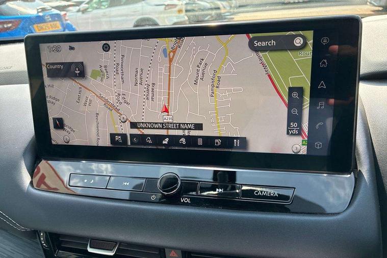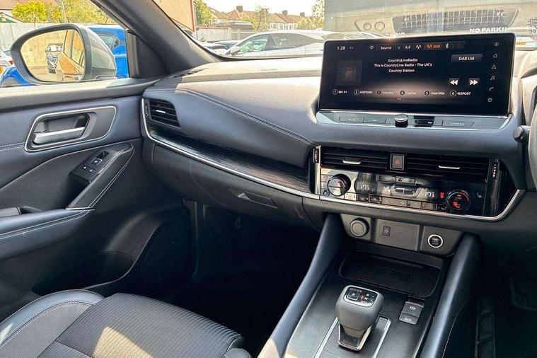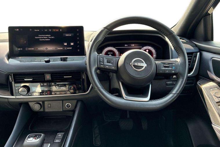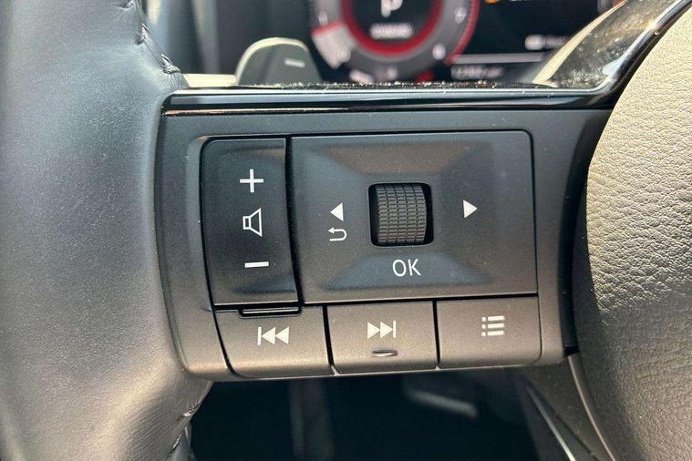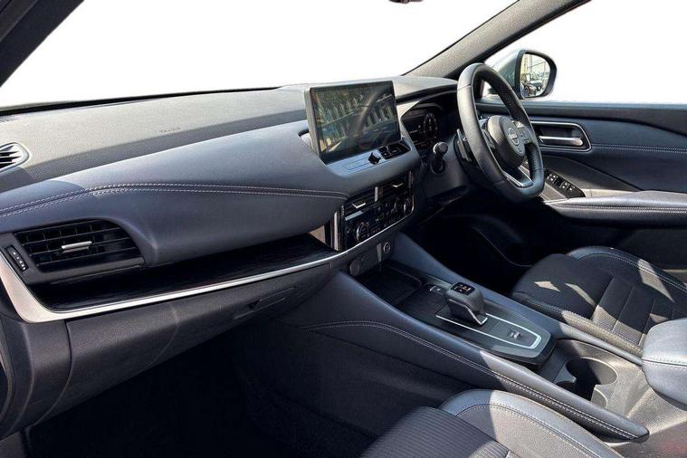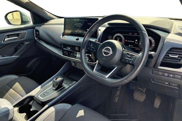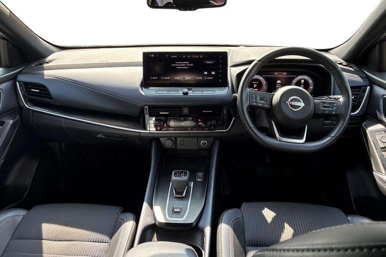Advanced windscreen head up display, Android auto/Apple CarPlay (Wired), Blind spot warning, Drive modes (sport, normal, eco), Electric speed sensitive power steering, Emergency and breakdown call, Front and rear parking sensors, Full Digital 12.3" TFT Digital Combimeter, Google maps services - search, weather, 3D maps and Google street view, Hands free power tailgate, Idle stop/start system, Intelligent around view monitor, Intelligent Cruise control (ICC), Intelligent driver alert system, Intelligent forward collision warning, Intelligent lane intervention, Lane departure prevention, Lane departure warning system, Lane keep assist, Moving object detection, Nissan connect 12.3 inch touchscreen infotainment system, Nissan connect navigation, ProPilot, Push button starter, Rear cross traffic alert, Rear view camera, Remote control services - door locks, lights, horn and car locator, Telematics - notifications and connectivity services, TomTom live traffic services, Traffic jam pilot, Traffic sign recognition with legal speed adjustment, Trip computer, Virtual personal assistant and firmware over the air capability, Wireless apple carplay, Wireless charging pad, 6 speakers, AM/FM audio system with DAB, Bluetooth audio streaming, Front USB connections (Type-A and Type-C), Rear USB charging only ports (Type-A and Type-C), Auto dimming rear view mirror, Auto rear wiper when reversing, Automatic hazard signal with emergency stop signal, Body colour mirror caps, Body coloured door handles, Bodyside mouldings, Chrome side window finisher, Door handle with button, Electric auto folding door mirrors, Electrically adjustable and heated door mirrors with LED turn indicator, Follow me home headlights, Front and rear LED turning signals, Headlights auto levelling system, Intelligent auto headlights, LED daytime running lights, LED headlights with adaptive driving beam, LED rear lights, One touch front and rear electric windows with remote opening and closing, Partially body coloured bumpers, Privacy glass, Rear bumper with graphite insert, Rear reversing light (bulb lighting), Rear roof spoiler, Rear side wing doors, Rear styling plate, Shark fin antenna, Splash free rain sensing wipers, Super UV and infrared cut glass, Thermaclear heated windscreen, Three blink turn signal, 12v power socket in dashboard and luggage, 2x Rear coat hooks, 3 bench rear seats in 2nd row, 3 rear headrests, 4 folding assist grip, 6 Luggage hooks - 4 on floor, 2 on side, 60/40 split folding rear seat bench, Ambient lighting around centre console, Ambient lighting in front doors, Centre console storage tray, Chrome interior door handles, Cloth/syntech leather monoform upholstery, Dark black/blueish PVC wrapping, Dark headlining, Driver and front passenger sunvisors with illuminated vanity mirrors, Driver seat back pocket, Dual zone automatic climate control with pollen filter, Electrically adjustable driver seat, Electrically adjustable lumbar support for driver, Front and rear door storage, Front centre console and armrest, Front cupholders x 2, Front door with bottle holders, Glovebox with light, Hard trunk cover, Heated front seats, Heated steering wheel, Height adjustable driver's seat, Height adjustable front headrests, Height adjustable passenger seat, Leather steering wheel, Luggage board system, Luggage space lighting, Manual lumbar support on passenger seat, Manually adjustable passenger (slide recline + lifter), Multifunction steering wheel, Passenger seat back pocket, Rear armrest with 2 cupholders, Rear door bottle holders, Single front passenger seat, Soft PVC kneepad, Steering wheel gearshift paddles, Steering wheel switches, Tilt/telescopic adjustable steering wheel, Two rear isofix child seat anchorage points with top tether, Welcome light and doors with console tray ambient lighting, Glass roof pack with roof rails - Qashqai, 3x3 point rear seatbelt pretensioners + load limiters, ABS with EBD and brake assist, Active brake limited slip, Auto hold function, Child locks on rear doors, Curtain and front side, far side airbags, Driver and passenger airbags, Driver, passenger and 2nd row rear seat belt reminder, Electronic parking brake, Front seatbelt pretensioners + load limiters, Height adjustable front seatbelts, Hill start assist, Intelligent blind spot intervention, Intelligent front emergency braking with pedestrian, cyclist recognition and junction assist, Intelligent rear automatic braking, Tyre pressure monitoring system, Vehicle dynamic control, Capless fuel filler, Engine immobiliser, Intelligent Key, Remote central door locking with deadlocking, Thatcham Cat.1 alarm, Interior instrumental panel C finisher, 19" Alloy wheels, Tyre puncture repair kit,