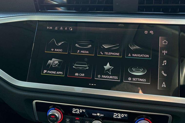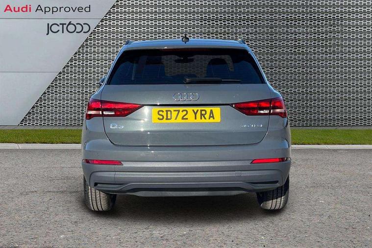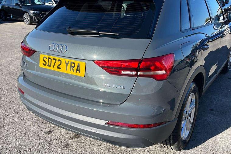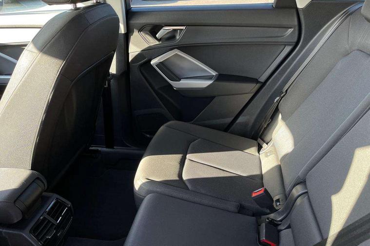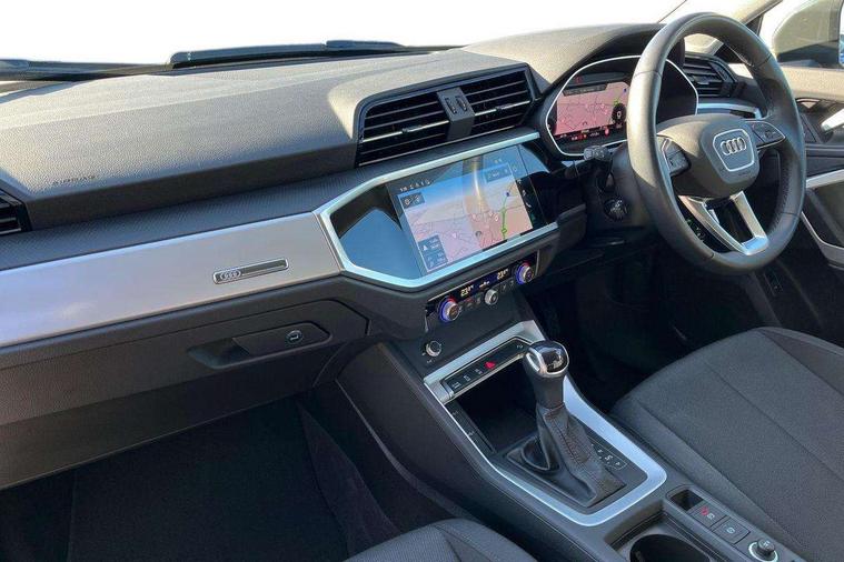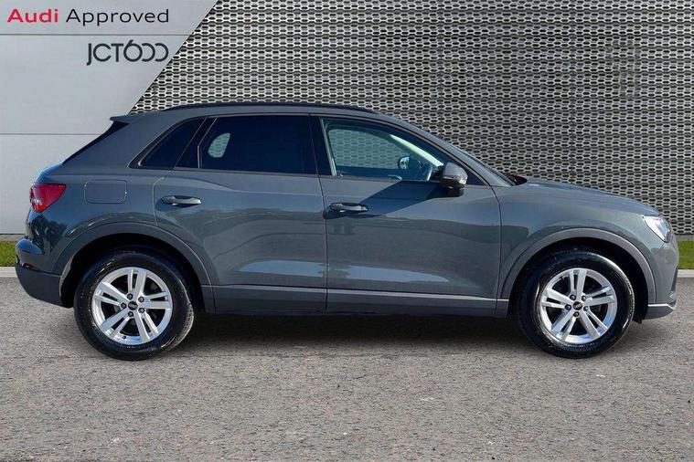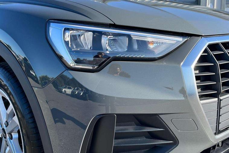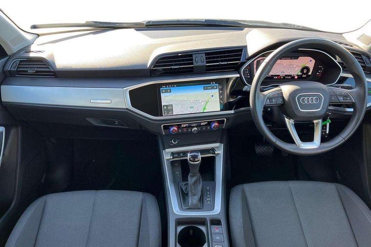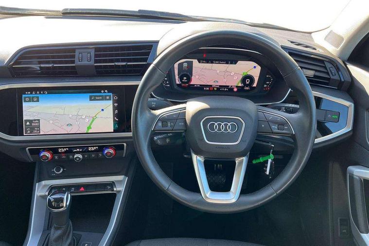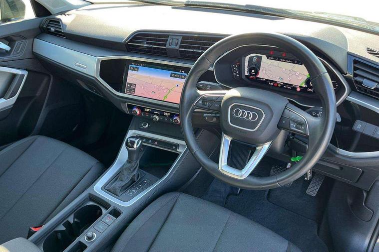 Amazon alexa Integration, Audi drive select, Audi lane departure warning, Audi smartphone interface includes wireless Apple carplay/Android Auto, Audi Virtual Cockpit - 10.25" display, Bluetooth interface, Camera based traffic sign recognition, Legal emergency call, MMI Navigation Plus with high resolution 10.1 inch touchscreen colour display, Power operated tailgate, Progressive steering, Service interval indicator, Start stop system with recuperation, Voice control system with natural language interaction, Standard suspension, 2 USB-C ports with charge and data functions, 6 passive loudspeakers, DAB digital radio module, Acoustic windscreen, Auto dimming frameless rear view mirror, Black roof rails, Body colour door mirrors, Diffuser in grained anthracite, Electrically folding, adjustable and heated door mirrors with integrated LED side indicators and kerb view function for passenger side, Exterior bumper with wheel arch trims and side sill trims in grained black matt, Front and rear electric windows, Grained radiator protective grille, Halogen rear lights, LED headlights with LED daytime running lights, Rain and light sensors, Rear side wing doors, Rear wiper, Third brake light, Variable front intermittent wipers, 12V socket in rear centre console, 3 seat bench in 2nd row, 3 spoke multi-function leather steering wheel, 40:20:40 folding with manual adjustment for 60:40 forwards/backwards position and backrest angle, Dual zone electronic climate control, Front and rear floor mats, Front and rear headrests, Front and rear roof module including reading lights, Front centre armrest, Glove compartment lighting, Height and reach adjustable steering wheel, ISOFIX child seat mounting for front passenger with airbag deactivation and outer rear seat including top tether attachment point for outer rear seats, Luggage compartment light, Lunar silver cloth headlining, Manual front seats with height adjustment, Single front passenger seat, Stainless steel luggage compartment sill finisher, Non smoking pack - Q3, 3x3 point rear seatbelts, 6 airbags - Driver, front passenger, curtain and side windows, Audi pre-sense front with pedestrain and cyclist recognition, Electrically operated child locks on rear doors, Electromechanical parking brake, Electronic stabilisation control including ABS, ASR and EDL, Front seatbelt reminder, Hill descent control, Hill hold assist, Pre sense basic, Seatbelt monitoring, Tyre pressure warning, Warning triangle and first aid kit, Anti theft alarm, Anti theft wheel bolts, Immobiliser, Remote central locking, Detail dashboard around MMI touch colour display in glass look, black with surround in aluminium look, Micrometallic silver inlay, 17" 5 twin spoke design alloy wheels,