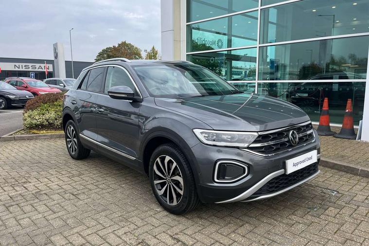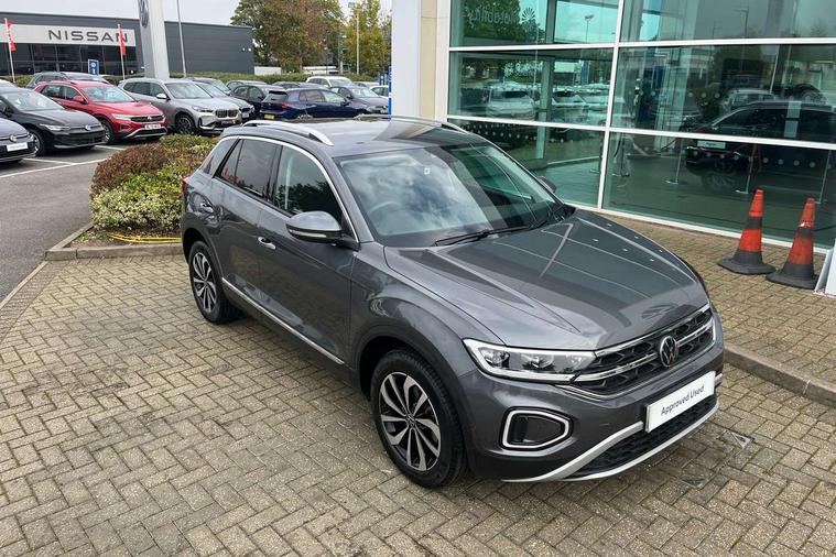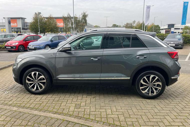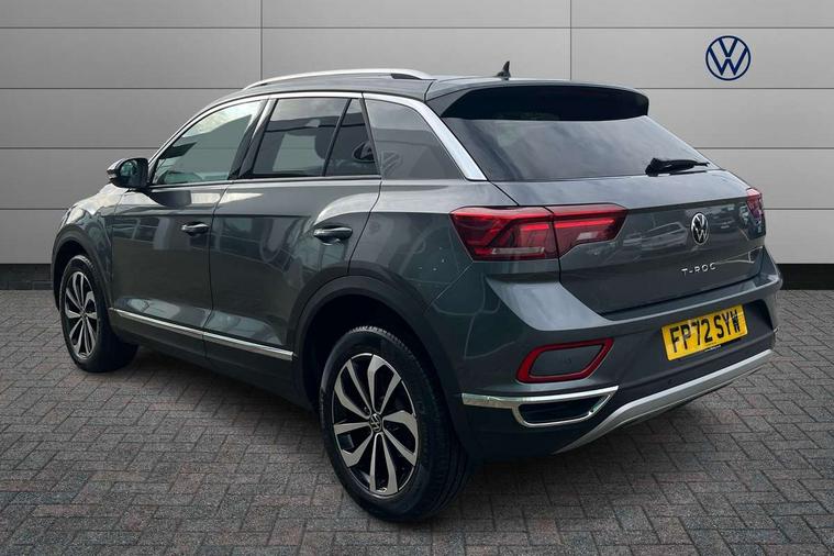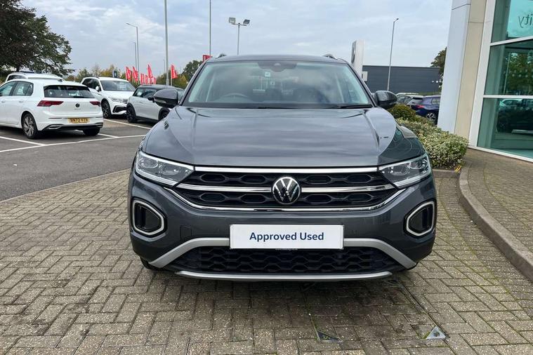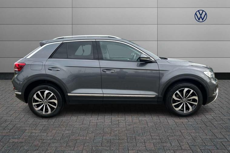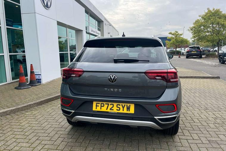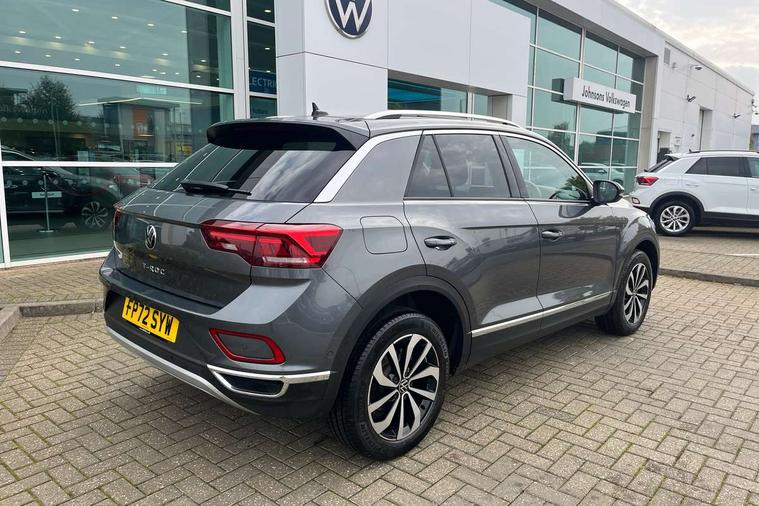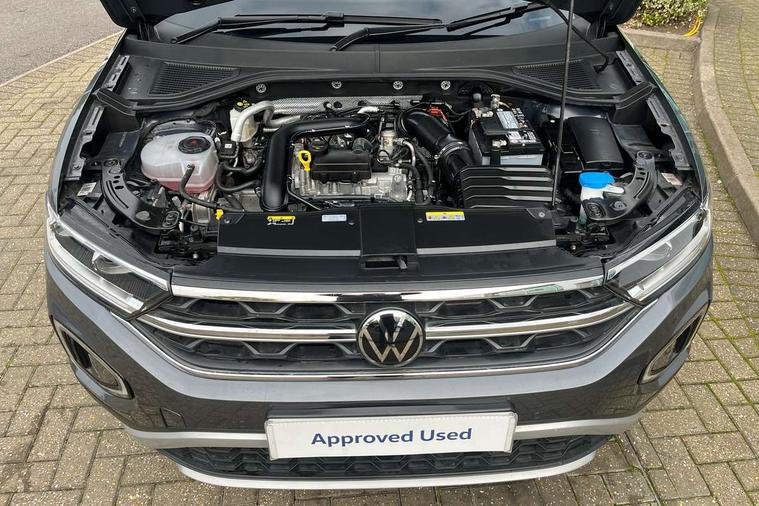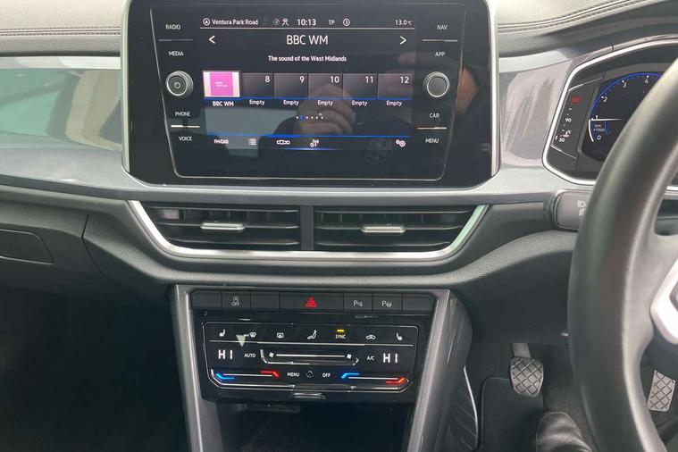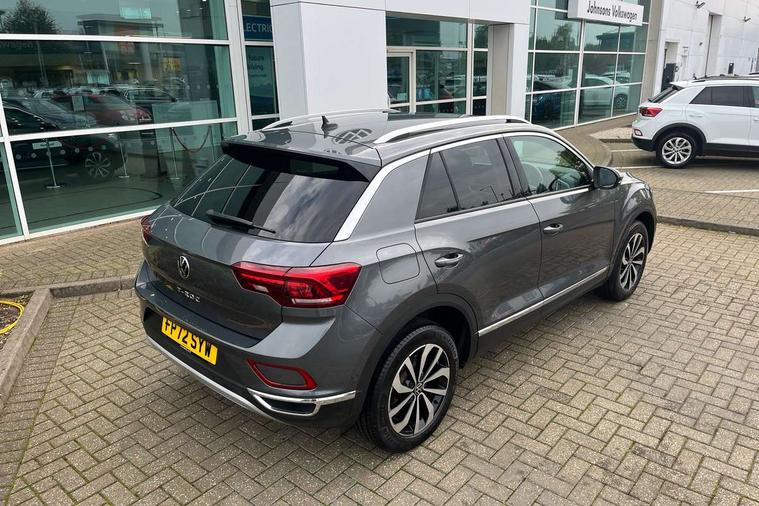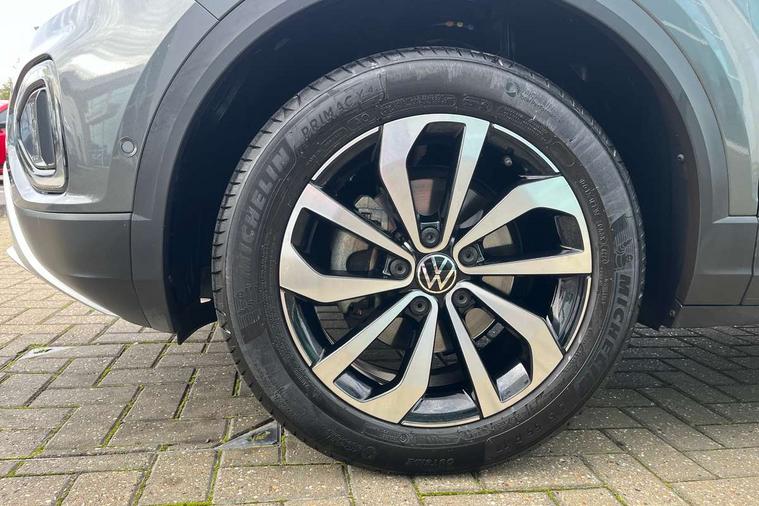 10.25" Digital cockpit pro, Bluetooth mobile phone interface, Driver alert system with fatigue detection, Driver tips and journey analysis, Dynamic road sign display, Emergency call service, Lane keeping system Lane Assist, Modified key software - reduce switch off time for key status change to Long no motion, Online services, Park assist including front and rear parking sensors, Power assisted speed sensitive steering, Service interval indicator, Tailgate/trunk lid release from outside, Think blue trainer driver tips and journey analysis, Warning sound and light for front seatbelts unfastened, Wireless app connect, Battery regeneration during braking, Front shock absorption, Rear shock absorption chassis with increased ride height, Start/stop function with battery regeneration, Diversity antenna for FM reception, Front and rear 6 speakers, Music playback - MP3, WMA and AAC files, Premium USB cable in choice of either Apple or Android smartphone compatibility, SD card slot, Simultaneous pairing of 2 compatible mobile devices, Title and cover art display, We Connect and We Connect Plus functionality, 3rd brake light, Auto dimming interior rear view mirror, Automatic hazard lights activation under emergency braking, Automatic headlight control with LED separate daytime running lights with coming/leaving home function, Body colour sports bumpers with silver metallic underbody fascia, Dynamic headlight range control with self adjusting whilst driving, Extended roof spoiler, Exterior mirrors aspherical on driver side, convex on front passenger side, External USB type C socket and charging sockets, Front windscreen wiper with intermittent wipe and 4 position delay, Heated rear window, LED Plus headlamps, LED rear combination lamps, LED rear number plate lights, LED tail lamp rear comination lamps, Light mode for poor weather, rain, fog or snow, Power windows with comfort operation and circuit breaker, Rain sensor, Rear exhaust tailpipe, Rear fog light on one side and reversing lights on both sides, Rear side wing doors, Rear wash/wipe with intermittent wipe setting, Remote electrically foldable door mirrors, puddle lights and reverse activated passenger's door mirror, 12V power socket in centre console, 3 rear head restraints, 3 seat bench in 2nd row, 4 load lashing points in luggage compartment, Air care climatronic air conditoning system with active combination filter and 2-zone temperature control, Chrome plated radiator grille inserts, air vent surrounds and light switch surrounds, Door and side trim panel with leatherette insert, Drawer under drivers seat, Front + rear carpet mats, Front centre armrest, Front comfort sports seats, Front cupholders x 2, Front footwell illumination, Instrument lighting, white adjustable panel illumination, Interior ambient lighting and surround lighting, Interior light delay, Isofix child seat preparation, Leather gearshift handle, LED interior light with switch off delay/dimmer and 2 front/rear LED reading lights, Load-through provision with cup holder when folded down ('Unsplit rear seat bench, split folding backrest, with centre armrest), Luggage compartment lighting, Non-folding front passenger seat backrest, Single front passenger seat, Storage compartment in left and right luggage area, Storage compartment in rear doors, Storage compartments in driver and front passenger doors, Sunvisors with illuminated vanity mirrors, Variable boot floor, height adjustable and removable, Driver assistance pack without proactive passenger protection - T-Roc, 3 point height adj front seatbelts + pretensioners, 3 point seatbelts in outer rear with ECE label, ABS, Child locks on rear doors, Driver and front passenger airbag with front passenger airbag deactivation, Driver and front passenger safety-optimised head restraints, Drivers seatbelt reminder, Electronic parking brake, Electronic Stability Control (ESC) inc EDL (Electronic Differential Lock) and ASR (Traction Control), Front and rear passengers curtain airbag system including front side airbags, Front assist with city emergency braking and pedestrian monitoring, Front disc brakes, Front seat side impact airbags, Predictive pedestrian protection, Rear disc brakes, Single tone horn, Tyre pressure loss indicator, Volkswagen roadside assistance, Alarm with interior protection, Anti-theft alarm system with interior monitoring, backup horn, and towing protection, Remote central locking with SAFELOCK, radio remote control with 2 remote control folding keys, Trims for alloy wheels,