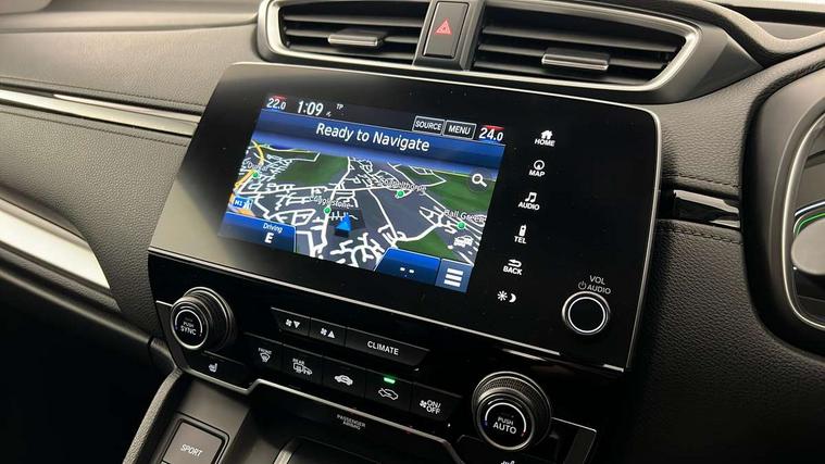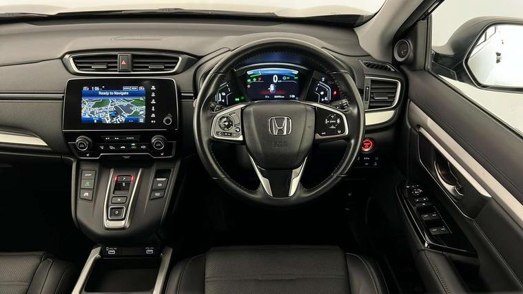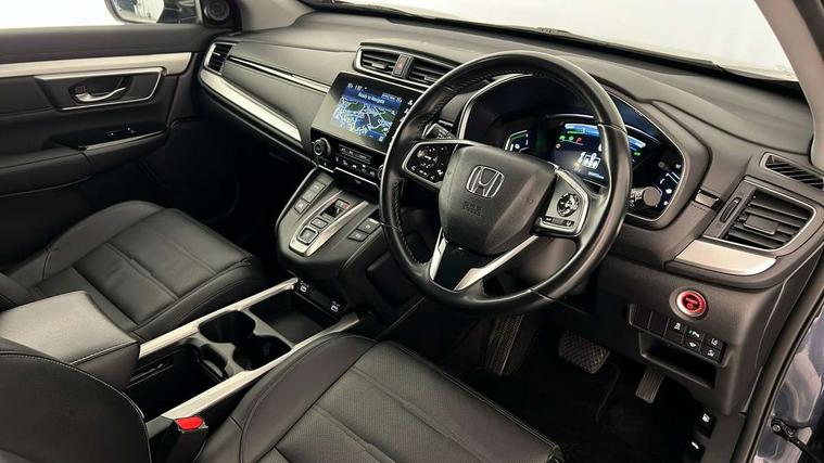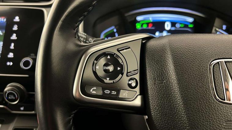 Adaptive cruise control, Agile handling assist, BLIS (Blind Spot Information System) with dual power heated blind spot mirrors, Bluetooth hands free telephone connection, E-call, Economy mode, Electric power steering, Emergency stop signalling system, Forward collision warning, Front parking sensors, Honda CONNECT with GARMIN Navigation + 7" touchscreen, DAB radio, Apple CarPlay, Android Auto, Aha app integration and internet browsing, Intelligent multi info display, Lane departure warning system, Lane keep assist system, Low speed following, Rear parking sensors, Rear view camera, Road departure mitigation, Speed limiter, Traffic sign recognition, Vehicle stability assist, 2 USB sockets in rear, 2x USB sockets in front, 9 speakers, DAB Digital radio, Dashboard centre speaker, Front tweeters, Steering wheel mounted controls, Subwoofer, Aspheric door mirrors, Auto dimming rear view mirror, Automatic headlights with dusk sensor, Body colour bumpers, Body colour door handles, Cornering light, Door mirrors tilt when reversing, Electric front windows/one touch facility, Electric rear windows + one touch facility, Electrically adjustable and heated door mirrors, Electrically retractable door mirrors, Front windscreen de-icer, High beam assist, LED daytime running lights, LED front fog lights, LED Headlights, LED rear lights, Rain sensor, Rear privacy glass, Rear side wing doors, Rear wiper, Roof rails, Shark fin roof aerial, Tailgate spoiler, Third brake light, Welcome home function, 3 seat bench in 2nd row, 60/40 split folding rear seat, Accessory sockets, Ambient interior lighting, AWD emblem rear, Cargo hooks, Courtesy lights, Driver's electric adjustable lumbar support, Driver/passenger front seatback pockets, Driver/passenger sunvisors with illuminated vanity mirrors, Dual zone automatic climate control, Electric lumbar adjustment on passenger's seat, Footwell ambient lighting, Front centre armrest, Front map lights, Front passenger seat height adjust, Heated front seats, Height adjustable driver's seat, Hybrid emblem, Illuminated glovebox, Instrument panel with garnish wood film, Isofix child seat preparation, Leather steering wheel, Leather upholstery, Paddle shift controls, Rear air vents, Rear centre armrest, Rear headrests, Rear reading lights, Rear seat conversation mirror, Silver interior door handles, Single front passenger seat, Sunglasses holder with mirror, Tilt/telescopic adjustable steering wheel, Tonneau cover, Trunk light, 5 x 3 point seatbelts, ABS/EBD, Anti-whiplash front headrests, Brake assist function, Collision mitigation braking system, Deflation detection system, Driver airbag, Electronic parking brake with auto hold, Front and rear curtain airbags, Front and rear seat belts with emergency locking retractor (ELR), Front side airbags, Hill start assist, Manual child lock in rear doors, Passenger airbag deactivate switch, Honda super locks, Immobiliser, Security alarm, Smart entry + Smart start, Ultrasonic security sensor, Tyre repair kit,