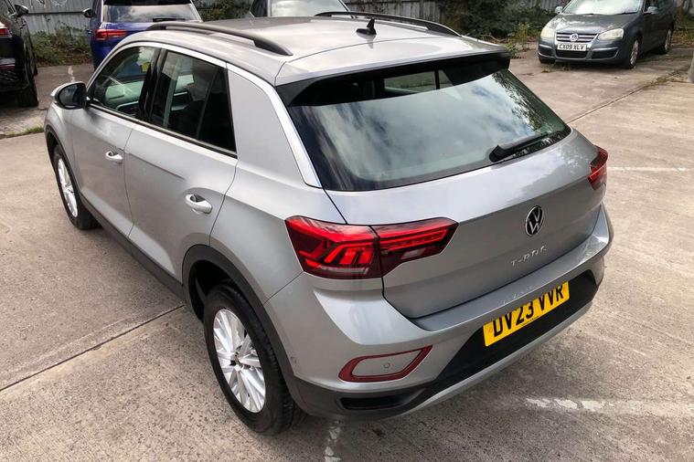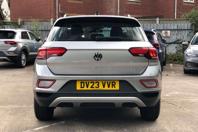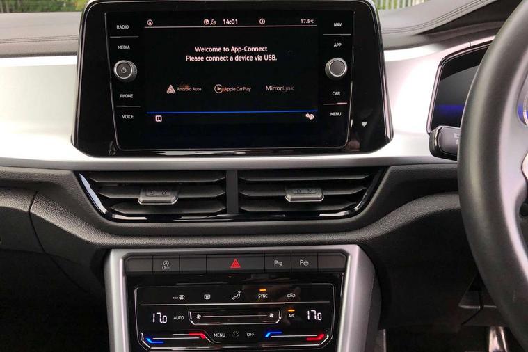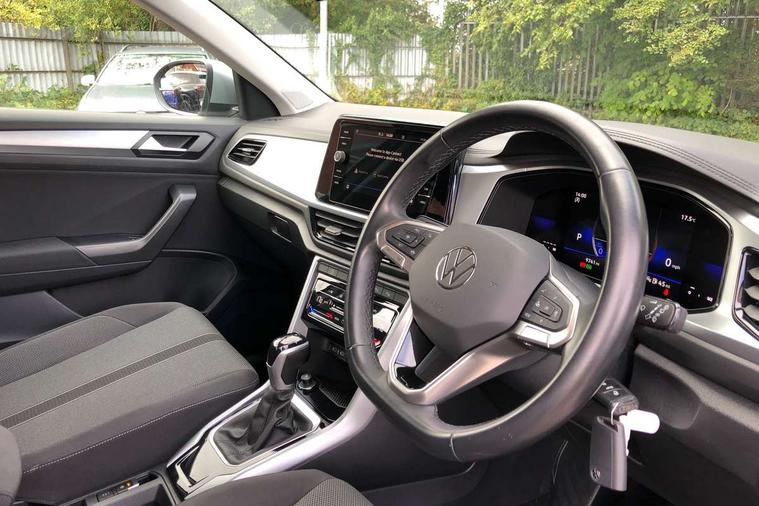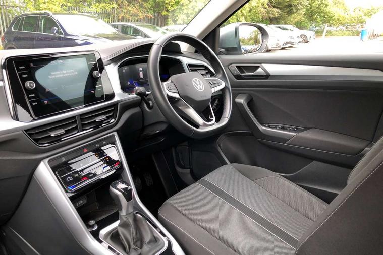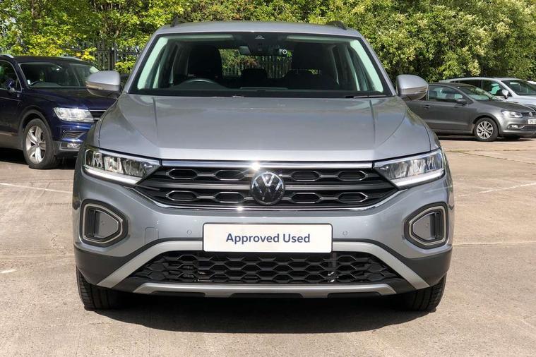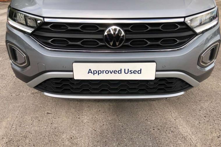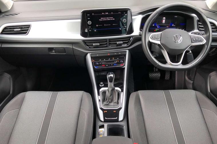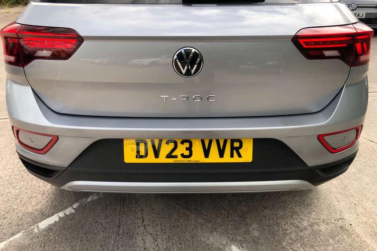 Bluetooth mobile phone interface, Driver alert system with fatigue detection, Driver tips and journey analysis, Emergency call service, Lane keeping system Lane Assist, Modified key software - reduce switch off time for key status change to Long no motion, Online services, Park assist including front and rear parking sensors, Power assisted speed sensitive steering, Service interval indicator, Tailgate/trunk lid release from outside, Think blue trainer driver tips and journey analysis, Warning sound and light for front seatbelts unfastened, Wireless app connect, Battery regeneration during braking, Front shock absorption, Rear shock absorption chassis with increased ride height, Start/stop function with battery regeneration, DAB Digital radio, Diversity antenna for FM reception, Front and rear 6 speakers, Music playback - MP3, WMA and AAC files, Premium USB cable in choice of either Apple or Android smartphone compatibility, SD card slot, Simultaneous pairing of 2 compatible mobile devices, Title and cover art display, We Connect and We Connect Plus functionality, 3rd brake light, Auto dimming interior rear view mirror, Automatic hazard lights activation under emergency braking, Automatic headlight control with LED separate daytime running lights with coming/leaving home function, Black roof rails, Body coloured bumpers and radiator grille with chrome trim and front fog lamps with chrome bezel, Body coloured exterior mirror housings and door handles, Extended roof spoiler, Exterior mirrors aspherical on driver side, convex on front passenger side, External USB type C socket and charging sockets, Front windscreen wiper with intermittent wipe and 4 position delay, Heated rear window, LED Headlights, LED rear combination lamps, LED rear number plate lights, LED tail lamp rear comination lamps, Power windows with comfort operation and circuit breaker, Rain sensor, Rear exhaust tailpipe, Rear fog light on one side and reversing lights on both sides, Rear side wing doors, Rear wash/wipe with intermittent wipe setting, Remote electrically foldable door mirrors, puddle lights and reverse activated passenger's door mirror, 12V power socket in centre console, 3 rear head restraints, 3 seat bench in 2nd row, 4 load lashing points in luggage compartment, Air care climatronic air conditoning system with active combination filter and 2-zone temperature control, Ambient lighting with mirror logo projection, Cloth upholstery, Door and side trim panel in cloth, Drawer under drivers seat, Driver/front passenger seat height adjustment, Front centre armrest, Front comfort sports seats, Front cupholders x 2, Front reading light, Instrument lighting, white adjustable panel illumination, Interior light delay, Isofix child seat preparation, Leather gearshift handle, Load-through provision with cup holder when folded down ('Unsplit rear seat bench, split folding backrest, with centre armrest), Luggage compartment lighting, Lumbar support for driver's and front passengers seat, Non-folding front passenger seat backrest, Single front passenger seat, Storage compartment in left and right luggage area, Storage compartment in rear doors, Storage compartments in driver and front passenger doors, Sunvisors with illuminated vanity mirrors, Variable boot floor, height adjustable and removable, Driver assistance pack without proactive passenger protection - T-Roc, 3 point height adj front seatbelts + pretensioners, 3 point seatbelts in outer rear with ECE label, ABS, Child locks on rear doors, Driver and front passenger airbag with front passenger airbag deactivation, Driver and front passenger safety-optimised head restraints, Drivers seatbelt reminder, Electronic parking brake, Electronic Stability Control (ESC) inc EDL (Electronic Differential Lock) and ASR (Traction Control), Front and rear passengers curtain airbag system including front side airbags, Front assist with city emergency braking and pedestrian monitoring, Front disc brakes, Front seat side impact airbags, Hill start assist, Predictive pedestrian protection, Rear disc brakes, Single tone horn, Tyre pressure loss indicator, Volkswagen roadside assistance, Alarm with interior protection, Anti-theft alarm system with interior monitoring, backup horn, and towing protection, Remote central locking with SAFELOCK, radio remote control with 2 remote control folding keys, Pewter matt decorative inserts for intrument panel, centre console and door panels at the front, Trims for alloy wheels,