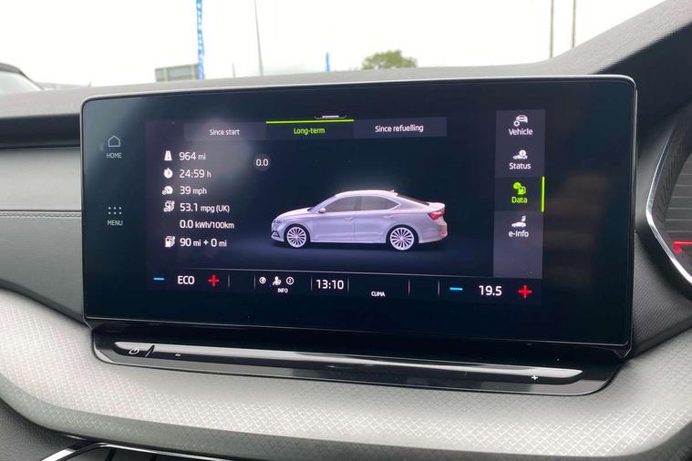 1x USB Type C port in rear view mirror (charging only), 2x USB Type C ports in rear of front centre armrest (charging only), Bluetooth system, Boot lid release from inside vehicle (electrically), Columbus satellite navigation with 10" touchscreen display, Driver fatigue sensor, E mode button for electric/hybrid drive, eCall emergency system, Electro-mechanical power steering, Front and rear parking sensors with manoeuvre assist, Front assist system, Smartlink (includes android auto and mirrorlink), Speed limiter, Turn Assist, Unique iV instrument panel, Virtual Cockpit - 10.25" digital display, Voice control system, Wireless SmartLink for Apple Car Play, 10 amp mains UK 3 pin charge cable mode 2, 16 amp AC charge cable for wallbox/charge points mode 3, E-noise generator for electric drive with noise emitted upto speed of 50km/h, 2x USB Type C ports (for charging and data transfer), 8 Speakers, DAB Digital radio, Aero front windscreen wipers with intermittent function, Black window surrounds, Body colour door mirrors and handles, Chrome grille surround, Dimming rear view mirror, Electric front and rear windows, Electrically adjustable and heated door mirrors, Heated rear windscreen, High level third brake light, Ice scraper in fuel cap, Rain and light sensors, Rear fog light on one side, Rear side wing doors, Unique iV badge on tailgate, 3 rear headrests, 3 seat bench in 2nd row, 4 foldable roof handles, Charging socket cover on front left fender, Chrome inner door handles, Climatronic dual-zone electronic air conditioning, Cloth upholstery, Front centre armrest, Front head restraints, Grey headlining, Height adjustable driver and front passenger seat with lumbar support, Illuminated glovebox, Leather trimmed gearshift lever, Luggage compartment lighting x1 light, Parcel shelf - folding, Satin black textured with artificial stiching in dash board pads, Single front passenger seat, Sport button for hybrid drive delivering maximum system performance, Storage compartment for charging cables under the luggage compartment mat, Sunglasses storage, Textile floor mat set, Ticket holder, Two-spoke leather multi function steering wheel with paddles, Umbrella in door panel, Unsplit rear bench seat and split folding backrest, 3 point front/outer rear seatbelts+pre-tensioners, Alarm with interior monitoring, tilt sensor and back up horn, Automatic door unlocking in case of crash, Automatic fuel cut off in case of crash, Automatic warning lights in case of emergency braking, Curtain airbags and front side airbags, Driver and front passenger airbags, Drivers knee airbag, Electronic parking brake, Emergency call and proactive services, ESC including ABS, EBV, MSR, ASR, EDS, HBA, DSR, Front central airbag, Hill hold control, Hill start assist, ISOFIX on front passenger seat and outer rear seats, Manual rear child locks, Passenger airbag deactivate switch, Rear disc brakes, Two tone horn, Tyre pressure monitor, Visual and acoustic seat belt reminder, Warning reflectors in front door, Door locks with immobiliser, Keyless start/stop, Remote central locking, Aluminium decorative inserts, Unique decorative door sills front and rear, Tyre repair kit,