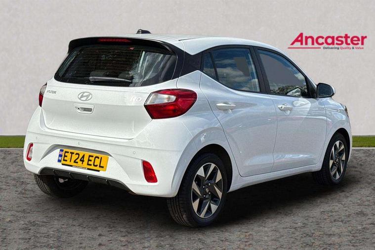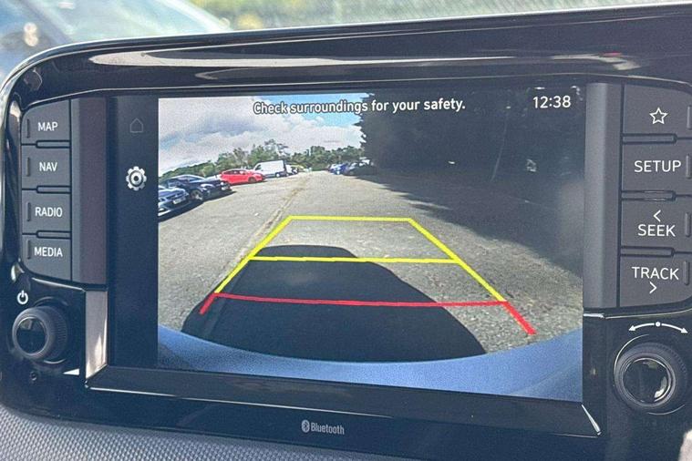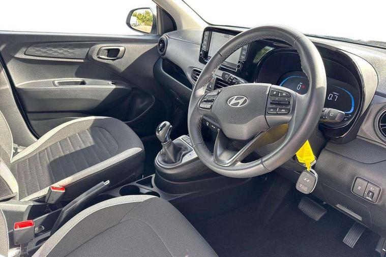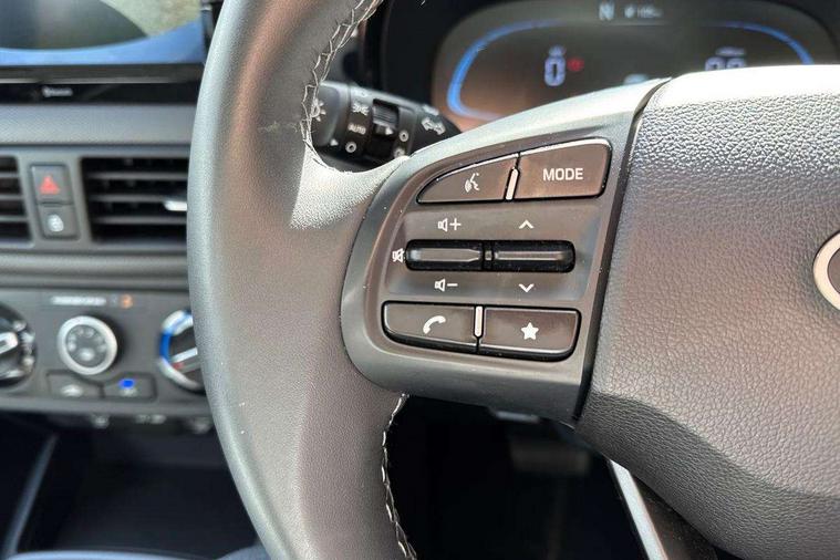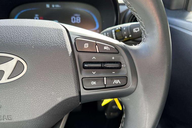 Apple car play/Android Auto, Bluelink mobile remote connectivity, Bluetooth connectivity with voice recognition, Cruise control, Driver attention alert system, eCall emergency call system, Forward Collision-Avoidance Assist (FCA) - Pedestrian/Cyclist, Front USB-C charging and USB-A data, Full-width 4.2" LCD instrument cluster, Intelligent speed limit assist, Lane departure warning system with lane keep assist - LKAS, Lane follow assist, PAS, Rear parking sensors, Rear view camera with guidelines, Roadside assistance, Start/Stop function, Tailgate, Trip computer, 2 front/2 rear speakers, Rear USB-C device charger, Steering wheel audio, phone and cruise controls, 1 speed non intermittent rear windscreen wiper, Black finish on B pillars, Body colour door handles, Body coloured bumpers, Body coloured door mirrors, Electric front windows, Electric rear windows, Electrically adjustable and heated door mirrors, Flat metal emblem, Front grille in matte black, Front intermittent wipers, Halogen daytime running lights, Halogen headlights, Headlights inner with Black Blade design, Heated rear window, High beam assist, Indicator light on door mirrors, Rear roof spoiler with integrated LED brake light, Rear side wing doors, 12v power outlet - front, 3 seat bench in 2nd row, 60/40 split folding flat to floor rear seats, Air conditioning, Auto light control, Bottle holders in front/rear doors + front centre console, Cabin and luggage compartment interior lighting, Cloth upholstery, Driver + passenger vanity mirrors, Driver's seat height adjustment, Driver/passenger sunvisors with ticket holders, Floor mats, Front door pockets, Front Head Restraints - Vertical and Horizontal Adjustment, Glove compartment, Height adjustable steering column, Isofix child seat preparation, Leather multifunction steering wheel, Rear door pockets, Single front passenger seat, Vertical adjustment rear head restraints, 3x3 point rear seatbelts, Airbags - front, front side and curtain airbags, Anti-lock brake system (ABS), Autonomous emergency braking (AEB) with forward collision warning system, Brake assist function, Childproof rear door locks, Electronic stability control, Front and rear seatbelt reminder, Front seatbelt pretensioners, Hill start assist control (HAC), Passenger airbag deactivate switch, Traction control, Tyre pressure monitoring system, Immobiliser, Perimeter alarm, Rear occupant alert, Remote central locking, Second remote key, Speed sensitive auto door locking, 15" Alloy wheels, Tyre repair kit,