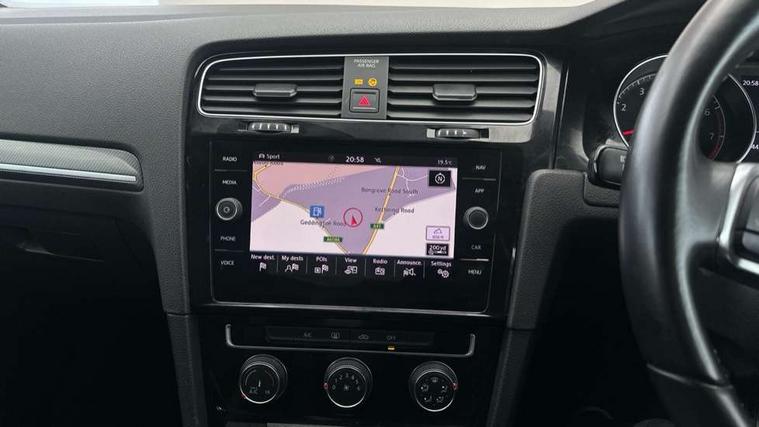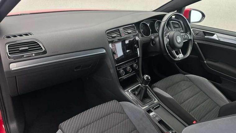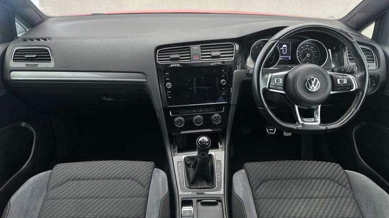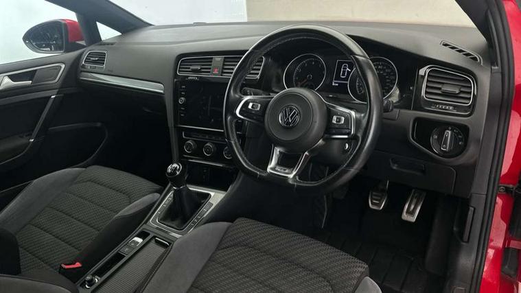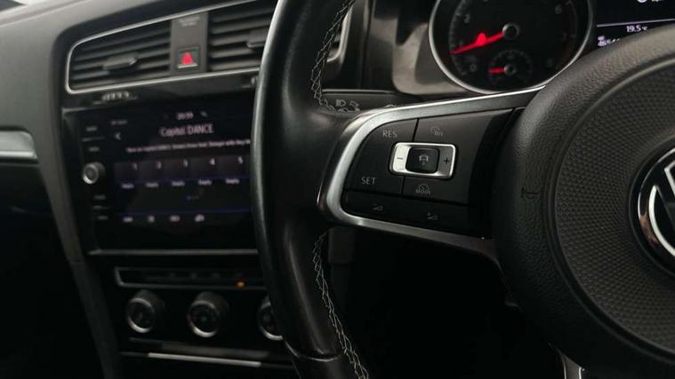 'Lights On' Reminder warning buzzer, 8" touch screen, Adaptive Cruise Control with pedestrian detection and speed limiter, App-Connect, Bluetooth hands free telephone connection, Brake pad wear indicator warning light, Driver alert system, Driver profile selection, Exterior temperature gauge, Front assistant collision mitigation, Instrument cluster in white, Multifunction computer, PAS - speed related, Rev counter, Trip and service interval display, Ultrasonic front and rear optical and audible parking sensors, Warning buzzer and light for front seatbelts unfastened, Lowered sports suspension, XDS electronic differential lock, CD/MP3/WMA, USB and SD card reader, aux-in, Composition media system, DAB Digital radio, Auto dimming rear view mirror, Automatic coming/leaving home lighting function, Automatic headlights, Black front air intake and radiator grille with chrome insert, Black sports rear diffuser, Body colour bumpers, Body colour door handles, Body colour door mirrors, Body colour rear roof spoiler, Chrome grille surround, Chrome trapezoidal exhaust, Electric front windows, Electrically adjustable and heated door mirrors, Heat insulated tinted glass 65% light absorbing from B pillar back, Heated rear windscreen, LED daytime running lights, LED rear lights, Rain sensor, Rear windscreen washer and wiper with interval delay, Stainless steel door sill protection, 12V socket in luggage compartment, 3 rear headrests, 3 spoke steering wheel, 60/40 split folding rear seat, Bag hook in luggage compartment, Black headlining, Boot lashing points, Cooled glovebox, Courtesy light delay, Cover for storage compartment in centre, Dust/pollen filter, Easy entry slide seats (access to rear seats), Front + rear carpet mats, Front centre armrest with storage box and rear air vents, Front passenger seat height adjust, Front reading lights, Front seat back storage pockets, Grab handles, Height adjustable driver's seat, Height/reach adjust steering wheel, Illuminated vanity mirrors, Isofix preparation for 2 rear child seats, Leather gear knob and handbrake grip, Load through provision with rear centre armrest and cupholders x2, Luggage compartment cover, Luggage compartment lighting, Multifunction leather steering wheel with grey stitching leather trimmed gear knob including paddle shift, Overhead storage box, Stainless steel pedals, Storage box in luggage compartment, Storage compartments in doors, Sun visors, Variable boot floor, height adjustable and removable, Ambient lighting pack - Golf, Mirror pack - Golf, 3 point height adj front seatbelts + pretensioners, 3 rear 3 point seatbelts, ABS, Automatic post collision braking, Child locks on rear doors, Driver/Front Passenger airbags, Driver/Passenger whiplash optimised head restraints, Drivers knee airbag, Electronic parking brake with auto hold, ESP with EDL + ASR, Front and rear curtain airbags, Front passenger airbag deactivation, Front side airbags, Pre crash system, Tyre pressure monitor, Alarm with interior protection, Electronic engine immobiliser, Remote central locking with 2 remote folding keys, Chrome-plated light switch surround, Dark Diamond decorative inserts in dash and door panels, Piano black centre console with aluminium inlay, Steel space saver spare wheel,