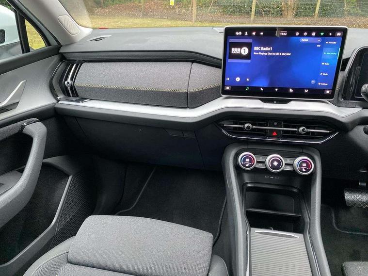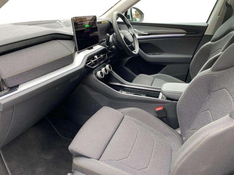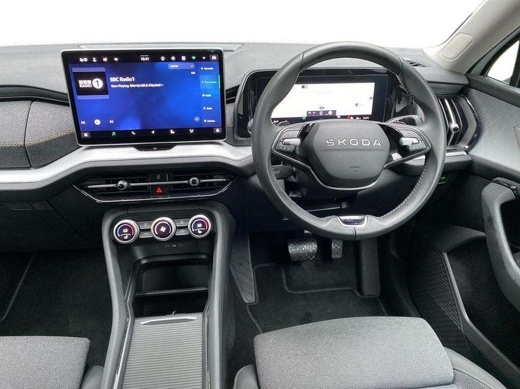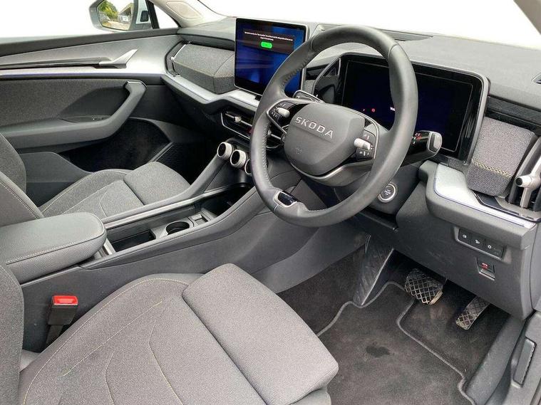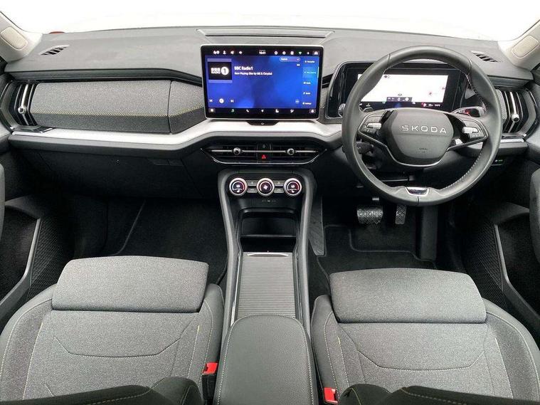 13" satellite navigation touchscreen display, Blind spot detection with door exit warning, Bluetooth system, ChatGPT functionality, Driver alert - Fatigue and drowsiness monitor, Dry display cleaner, Emergency call, Front and rear parking sensors, Front cross traffic assist, Lane assist, PAS, Rear traffic assist, Rear view camera, Tailgate unlocking from outside, Traffic sign recognition, USB C Port x 2 in front centre console, Virtual Cockpit - 10.25" digital display, Voice control system, Wireless charging for two smartphones (15W) with cooling function, Wireless SmartLink for Apple CarPlay and Android Auto, Stop/start function, 2x USB-C in the rear, 8 Speakers, DAB Digital radio, Aero front windscreen wipers with intermittent function, All weather light, Auto dimming rear view mirror, Black wheel arch surrounds, Body colour bumpers, Body colour door mirrors and handles, Cornering light and poor weather light, Electric folding /adjustable/separted heated/folding door mirrors, auto dimming with boarding sports and memory function, Electric front and rear windows, Exterior black decorative trims, Heat insulating glass in windshield, Heated rear window, Ice scraper in fuel tank cap, Invisible tailpipe, LED daytime running lights, LED front fog lamps, LED Headlights, LED rear fog light, LED rear lights, LED third brake light in rear spoiler, Light assistant with automatic headlight control and coming home feature, Logo projection in door mirrors, Rear roof spoiler, Rear side wing doors, Rear window wiper, Safety reflectors on front and rear doors, Unique dark chrome design logo on alloy wheels, Window control switches with black trim, Windscreen wipers with rain sensor, Without engine designation, 1.5l bottle holder points in all door, 1x centre rear reading light, 2 seat bench in 3rd row, 3 configurable smart dials with 32mm coloured display, 3 seat bench in 2nd row, 4 foldable roof handles with rear coat hooks, Ambient interior lighting - Dashboard, front-door stowage compartments, front and rear door panels and footwell lighting, Automatic gear selector on steering column, Chrome interior door handles, Driver/front passenger reading lights, Fabric headlining, Fixed bench 40:60:40 split folding backrests, Front and rear floor mats, Front centre armrest with jumbo box storage compartment, cup holder and 12V socket, Height adjustable front headrests, Isofix child seat fittings in outer middle row rear seats and front passenger with top tether, Manual height adjustment for front passenger seats and thigh support extender, Manual lumbar support for front passenger seat, Manually adjustable steering column, Pollen filter, Rear centre armrest with cupholders, Rear seat boot backrest release, Single front passenger seat, Skoda lettering on steering wheel, Storage pocket including mobile phone pockets on the backs of the front seats, Sunvisors with illuminated vanity mirrors, Three rear height adjustable headrests, Ticket holder on A Pillar, Tri zone climate control, Umbrella in door panel x1 made from sustainable materials, Upper and lower glovebox with card holder and coin compartment, USB C port by rear view mirror for charging only (15W), Variable boot floor, Auto door release and activation of warning lights in the event of an accident, Driver and front passenger airbag with knee airbag and front passenger airbag deactivation, Electric child locks, Electronic parking brake, ESC (incl. ABS+EMD+MSR+ASR+EDL+HBA+DSR+RBS+ESBS+MCB+TSA+XDS), Front assist with braking reaction to vehicles, pedestrians and cyclists, Front disc brakes, Fuel cut off safety device, Height adjustable front 3 point seatbelts + pretensioners, Hill hold assist, Junction assist with automatic emergency braking, Rear disc brakes, Safety vest holder in door, Seat belt reminder for all seats, Three point rear seat belts, Two tone horn, Tyre pressure monitor, Alarm with interior monitoring and tilt sensor with safe function, Anti-theft wheel bolts, Immobiliser, Remote central locking with 2 keys, Breakdown kit, Tool kit,