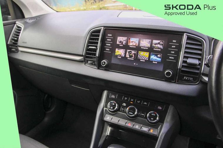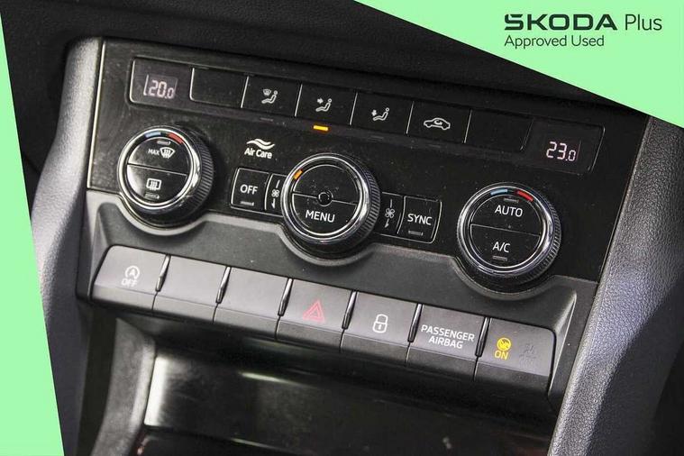 Care connect, Driver fatigue sensor, Electro-mechanical PAS, Outside temperature gauge, Service interval indicator, SmartLink wireless for Apple and wired for Android, Start/stop system with regenerative braking, USB C Port x 2 in front centre console, DAB radio with Bluetooth, USB connection, Acoustic glass, Aero front windscreen wipers with intermittent function, Automatic headlight control system, Black electric window control buttons, Body colour door mirrors and handles, Body coloured bumpers, Electric front and rear windows with child proof lock, Electrically adjustable heated folding and auto dimming door mirrors, Heated rear windscreen, LED rear lights with high functionality, Light assistant (coming/leaving home/tunnel light), Privacy glass, Safety reflectors on front doors, Third brake light, 1.5 litre bottle holders in driver and front passenger door panels, 12V socket in boot, 12v socket in front centre armrest with storage compartment and rear air vents, 2 Folding hooks and nets in boot, 2 Front readings lights for driver and passenger, 3 rear height adjustable headrests, 4 foldable roof handles with rear coat hooks, Cargo elements in boot, Chrome inner door handles, Driver and passenger seats height adjust, Folding tables on the front seat backrests, Front head restraints, Height adjustable front three point seats belts with tensioners, Height/reach adjust steering wheel, Ice scraper, Illuminated and cooled glovebox, Illuminated luggage compartment, Isofix child seat preparation outer rear, Manual lumbar support for front seats, Net programme in boot, Pen holder, Pollen filter, Rear boot cover, Rear reading lights, Safety vest holder, Storage box in upper central dashboard closed, Sunvisors with illuminated vanity mirrors, Umbrella under passenger seat, Airbags - Front side, head, knee and curtain, Automatic door unlocking in case of crash, Automatic fuel cut off in case of crash, Driver airbag, Electronic parking brake with auto hold function, Emergency rear braking signal, ESC including ABS, MSR, ASR, EDS, HBA, DSR, RBS, MKB and traction control, Front assist radar scanning of the space in front of the car with automatic braking, Hill hold control, Passenger airbag with switch-off function, Pedestrian monitor, Seatbelt reminder signalisation and pretensioner for all seats, Three point seatbelts rear, Two tone horn, Tyre pressure display, Tyre pressure monitor, Alarm with interior monitoring, back up horn and tilt sensor with safe function, Electronic engine immobiliser, Remote central locking with 2 remote folding keys, Chrome framed air vents, Storage on wheel cover,