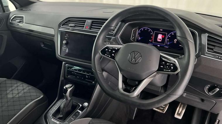 Adaptive cruise control ACC stop and go including speed limiter, App-Connect incl. App-Connect Wireless for Apple CarPlay and Android Auto, Bluetooth phone integration system, Distance control assist, Driver alert system, Driver profile selection, Dynamic road sign display, eCall emergency call system, Electromechanical speed sensitive power steering, Engine start/stop button, Lane keeping system Lane Assist, Lights on warning, Multifunction front facing camera, Outside temperature display, Premium multifunction display with multi colour display, Remote control boot opening, Rev counter, Revision / skills operating concept travel assistant, Service interval indicator, Speed limit display, Start/stop system with regenerative braking, Trip computer, Warning sound and light for doors and tailgate open, All wheel drive - 4Motion, Battery regeneration during braking, XDS electronic differential lock for improved traction and handling, 4 X 20 watt output, 8 Speakers, Diversity antenna for FM reception, Radio, SD card slot, Simultaneous pairing of 2 compatible mobile devices, SMS functionality - read, compose and send SMS messages using touch-screen display, Title and cover art display, USB C ports, Auto dimming interior rear view mirror, Automatic headlight control system, Body colour door handles, Chrome moldings on the side windows, Coming/leaving home lighting function, Dynamic headlight range control, Front and rear electric windows, Heated rear window, High level 3rd brake light, Laminated safety glass windshield, heat and sound insulating, LED headlamps with LED separate daytime running light and dynamic cornering light, LED rear combination lamps, LED rear number plate lights, License plate carrier in front and rear, Poor weather light and cornering light, R Line body kit, R Line side sills, Rain sensor windscreen wipers, Rear exhaust tailpipe, Rear fog lamp, Rear side wing doors, Rear spoiler in R style, Rear windscreen washer and wiper with interval delay, Side and rear windows in heat insulating glass, Trailer Stability Programme, Unique R Line badging, Windscreen wipers/ intermittent wipe + 4 position delay, 12V outlet in center console rear and in luggage compartment, 12V outlet in front and tray, 2 cup holders in front, 2 LED front reading lights, 2 LED rear reading lights, 3 bench rear seats in 2nd row, 3 rear headrests, 4 load lashing points, 40:20:40 split folding rear seats, Air Care Climatronic 3 zone automatic climate control with enhanced air filter and controls in the rear, Backrest release for left front seat, Black headlining, Brushed stainless steel pedals and footrest, Carpet mats in front and rear with decorative stitching in Gray, Climate control unit rear with touch function, Door and side trim panel in foam film, insert in leatherette, Front centre armrest, Front footwell illumination, Front seats head restraints (x-adjustment), Height adjustable front seats, Height/reach adjust steering wheel, Instrument lighting white adjustable panel illumination, Interior light with delay, Isofix Preparation 2 Rear child seats, Leather gear knob, Lockable cooled glovebox, Luggage compartment lighting, Luggage net, Rear bench seat asymetrically split folding, longitudinally movable and folding with load-through hatch and center armrest, Remote unlocking for rear seat backrest, Removable luggage cover, Removable rear headrests, Safety optimised front head restraints, Single front passenger seat, Sliding/reclining rear seats, Standard rear seat release, Storage compartment in driver's door, Storage compartment in passenger's door, Storage compartment in rear doors, Storage compartments in luggage area left and right, Storage tray on dashboard, Sun visors with illuminated vanity mirrors, Top front comfort seats, Variable boot floor, height adjustable and removable, Driver assistance pack plus - Tiguan DSG, 3 point seat belt for centre rear seats, 3 point seat belts with seat belt pretensioners for the outer rear seats, Active bonnet, Curtain airbags for front and rear passengers, Driver/Front Passenger airbags, Drivers knee airbag, Electronic parking brake with auto hold, Electronic Stability Control with driver steering recommendation, ABS, ASR, EDL, EDTC and trailer stabilization, Front assist with autonomous emergency braking (for Adaptive Cruise Control ACC up to 130 mph), Front disc brakes, Front passenger airbag deactivation, Front side airbags, Height adjustable front 3 point seatbelts + pretensioners, Hill hold control, Manual child proof rear door locks, Pedestrian monitoring system, Power assisted brakes, Proactive passenger protection system in combination with front assist, Rear disc brakes, Rigid safety cell with front and rear crumple zones, Two tone horn, Warning sound and light for front seat belts if unfastened, Anti theft alarm system with interior monitoring, backup horn and towing protection, Anti theft wheel bolts, Electronic engine immobiliser, Tool kit,