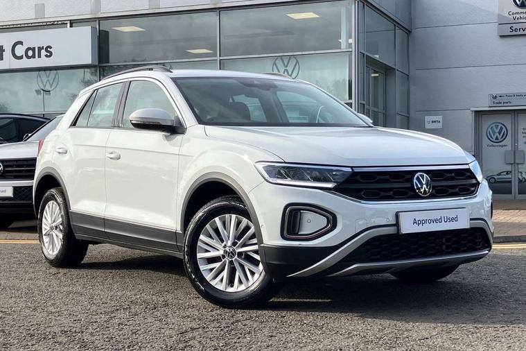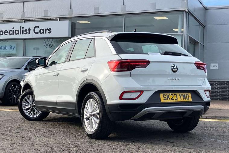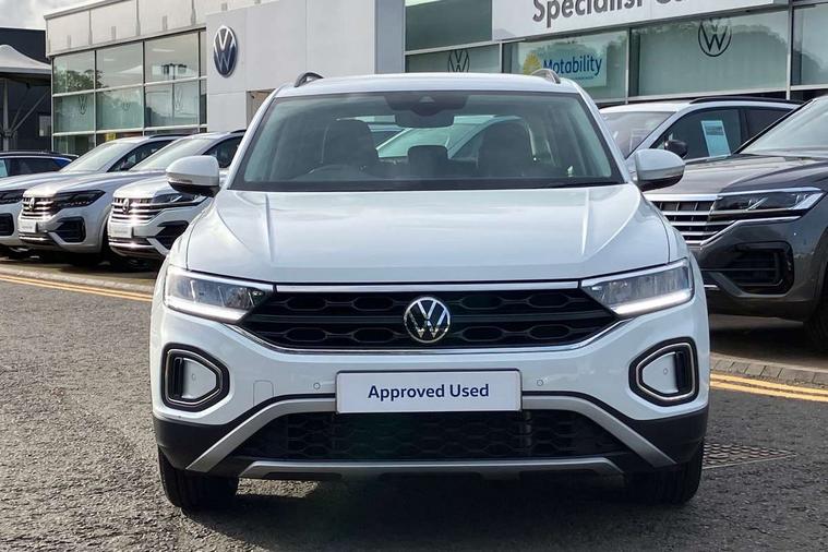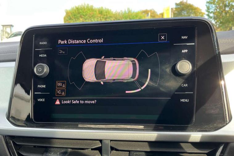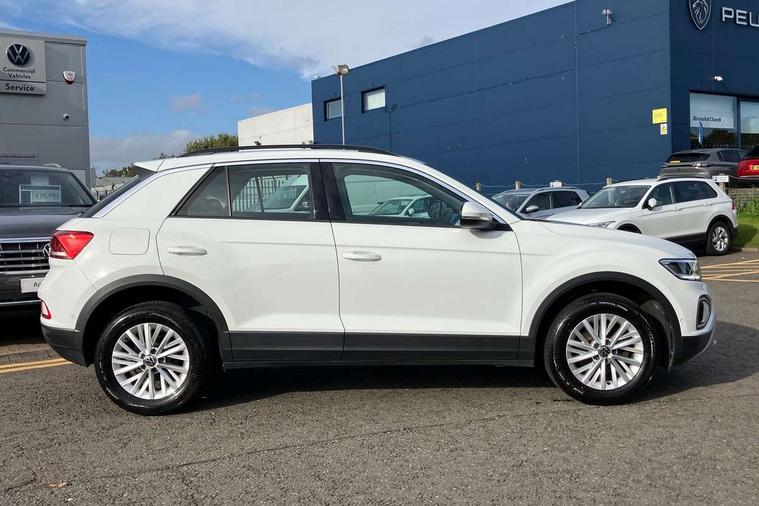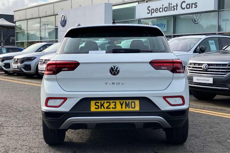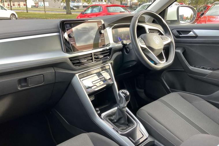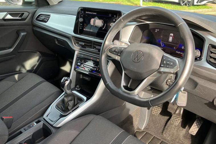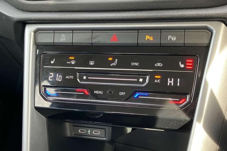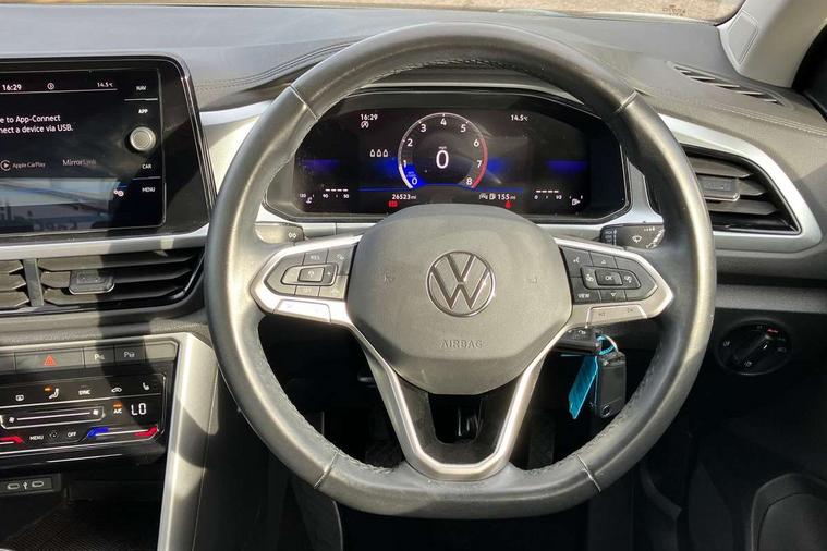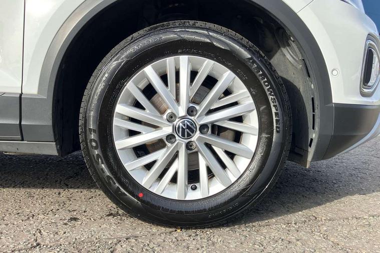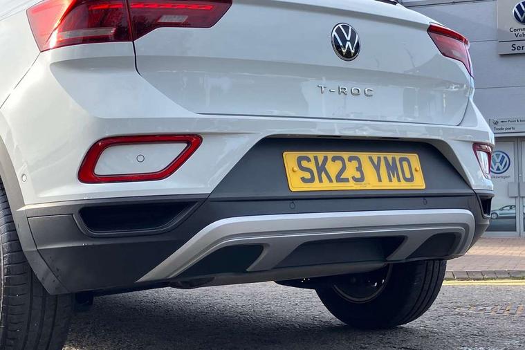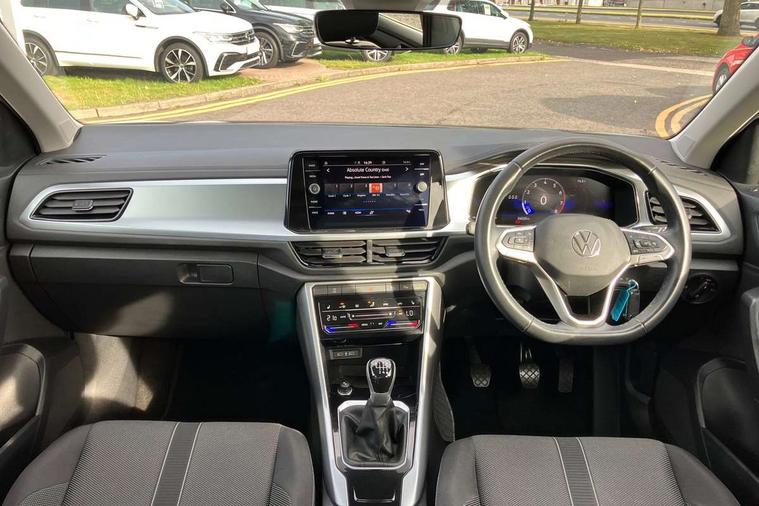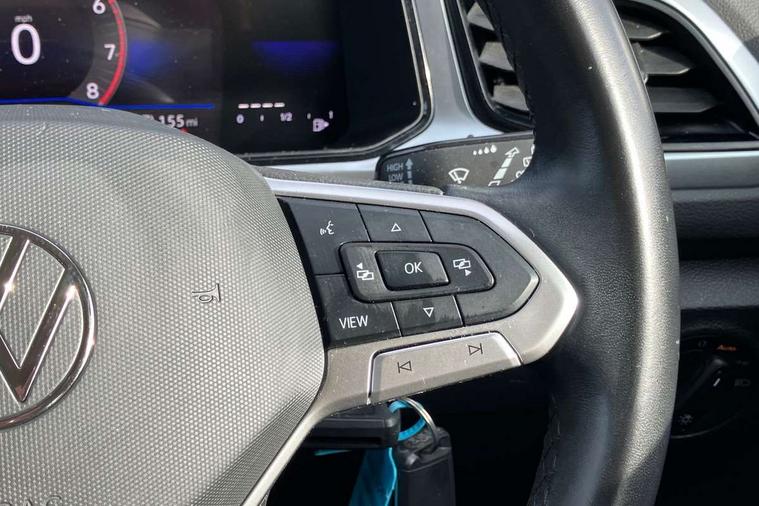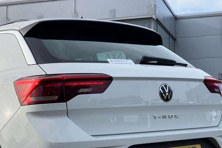 Bluetooth mobile phone interface, Driver alert system with fatigue detection, Driver tips and journey analysis, Emergency call service, Lane keeping system Lane Assist, Modified key software - reduce switch off time for key status change to Long no motion, Online services, Park assist including front and rear parking sensors, Power assisted speed sensitive steering, Service interval indicator, Tailgate/trunk lid release from outside, Think blue trainer driver tips and journey analysis, Warning sound and light for front seatbelts unfastened, Wireless app connect, Battery regeneration during braking, Front shock absorption, Rear shock absorption chassis with increased ride height, Start/stop function with battery regeneration, DAB Digital radio, Diversity antenna for FM reception, Front and rear 6 speakers, Music playback - MP3, WMA and AAC files, Premium USB cable in choice of either Apple or Android smartphone compatibility, SD card slot, Simultaneous pairing of 2 compatible mobile devices, Title and cover art display, We Connect and We Connect Plus functionality, 3rd brake light, Auto dimming interior rear view mirror, Automatic hazard lights activation under emergency braking, Automatic headlight control with LED separate daytime running lights with coming/leaving home function, Black roof rails, Body coloured bumpers and radiator grille with chrome trim and front fog lamps with chrome bezel, Body coloured exterior mirror housings and door handles, Extended roof spoiler, Exterior mirrors aspherical on driver side, convex on front passenger side, External USB type C socket and charging sockets, Front windscreen wiper with intermittent wipe and 4 position delay, Heated rear window, LED Headlights, LED rear combination lamps, LED rear number plate lights, LED tail lamp rear comination lamps, Power windows with comfort operation and circuit breaker, Rain sensor, Rear exhaust tailpipe, Rear fog light on one side and reversing lights on both sides, Rear side wing doors, Rear wash/wipe with intermittent wipe setting, Remote electrically foldable door mirrors, puddle lights and reverse activated passenger's door mirror, 12V power socket in centre console, 3 rear head restraints, 3 seat bench in 2nd row, 4 load lashing points in luggage compartment, Air care climatronic air conditoning system with active combination filter and 2-zone temperature control, Ambient lighting with mirror logo projection, Cloth upholstery, Door and side trim panel in cloth, Drawer under drivers seat, Driver/front passenger seat height adjustment, Front centre armrest, Front comfort sports seats, Front cupholders x 2, Front reading light, Instrument lighting, white adjustable panel illumination, Interior light delay, Isofix child seat preparation, Leather gearshift handle, Load-through provision with cup holder when folded down ('Unsplit rear seat bench, split folding backrest, with centre armrest), Luggage compartment lighting, Lumbar support for driver's and front passengers seat, Non-folding front passenger seat backrest, Single front passenger seat, Storage compartment in left and right luggage area, Storage compartment in rear doors, Storage compartments in driver and front passenger doors, Sunvisors with illuminated vanity mirrors, Variable boot floor, height adjustable and removable, Driver assistance pack without proactive passenger protection - T-Roc, 3 point height adj front seatbelts + pretensioners, 3 point seatbelts in outer rear with ECE label, ABS, Child locks on rear doors, Driver and front passenger airbag with front passenger airbag deactivation, Driver and front passenger safety-optimised head restraints, Drivers seatbelt reminder, Electronic parking brake, Electronic Stability Control (ESC) inc EDL (Electronic Differential Lock) and ASR (Traction Control), Front and rear passengers curtain airbag system including front side airbags, Front assist with city emergency braking and pedestrian monitoring, Front disc brakes, Front seat side impact airbags, Hill start assist, Predictive pedestrian protection, Rear disc brakes, Single tone horn, Tyre pressure loss indicator, Volkswagen roadside assistance, Alarm with interior protection, Anti-theft alarm system with interior monitoring, backup horn, and towing protection, Remote central locking with SAFELOCK, radio remote control with 2 remote control folding keys, Pewter matt decorative inserts for intrument panel, centre console and door panels at the front, Trims for alloy wheels,
