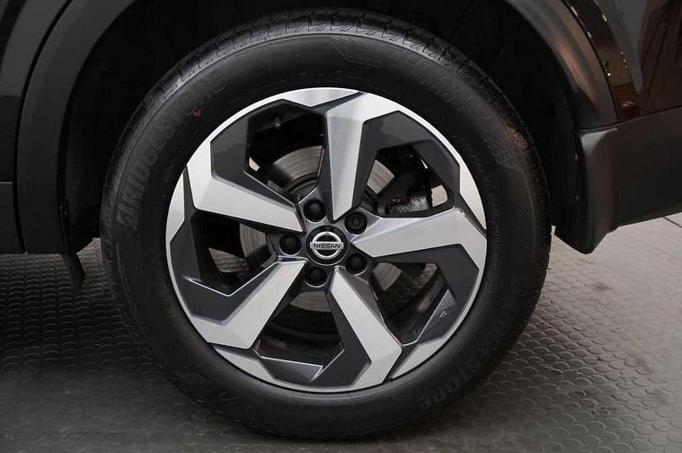 Android auto/Apple CarPlay (Wired), Blind spot warning, Drive modes (sport, normal, eco), Electric speed sensitive power steering, Emergency and breakdown call, Front and rear parking sensors, Full Digital 12.3" TFT Digital Combimeter, Google maps services - search, weather, 3D maps and Google street view, Idle stop/start system, Intelligent around view monitor, Intelligent Cruise control (ICC), Intelligent driver alert system, Intelligent forward collision warning, Intelligent lane intervention, Lane departure prevention, Lane departure warning system, Maximum speed limiter, Moving object detection, Nissan connect 12.3 inch touchscreen infotainment system, Nissan connect navigation, Push button starter, Rear cross traffic alert, Rear view camera, Remote control services - door locks, lights, horn and car locator, Telematics - notifications and connectivity services, TomTom live traffic services, Traffic sign recognition with legal speed adjustment, Trip computer, Virtual personal assistant and firmware over the air capability, Wireless apple carplay, 6 speakers, AM/FM audio system with DAB, Bluetooth audio streaming, Front USB connections (Type-A and Type-C), Rear USB charging only ports (Type-A and Type-C), Auto dimming rear view mirror, Auto rear wiper when reversing, Automatic hazard signal with emergency stop signal, Body colour mirror caps, Body coloured door handles, Bodyside mouldings, Chrome side window finisher, Door handle with button, Dusk sensor, Electric auto folding door mirrors, Electrically adjustable and heated door mirrors with LED turn indicator, Follow me home headlights, High beam assist, Intelligent auto headlights, LED daytime running lights, LED Headlights, LED rear lights, One touch front and rear electric windows with remote opening and closing, Partially body coloured bumpers, Privacy glass, Rear bumper with graphite insert, Rear reversing light (bulb lighting), Rear roof spoiler, Rear side wing doors, Rear styling plate, Shark fin antenna, Splash free rain sensing wipers, Super UV and infrared cut glass, Three blink turn signal, 12v power socket in dashboard and luggage, 2 way electrical driver lumbar adjustment, 2x Rear coat hooks, 3 bench rear seats in 2nd row, 3 rear headrests, 4 folding assist grip, 6 Luggage hooks - 4 on floor, 2 on side, 6-way manually adjustable driver's seat, 60/40 split folding rear seat bench, Ambient lighting around centre console, Centre console storage tray, Chrome interior door handles, Cloth monoform upholstery, Driver and front passenger sunvisors with illuminated vanity mirrors, Driver seat back pocket, Dual zone automatic climate control with pollen filter, Front and rear door storage, Front centre console and armrest, Front cupholders x 2, Front door with bottle holders, Glovebox with light, Hard trunk cover, Height adjustable front headrests, Height adjustable passenger seat, Leather shift knob, Leather steering wheel, Luggage board system, Luggage space lighting, Manually adjustable passenger (slide recline + lifter), Multifunction steering wheel, Passenger seat back pocket, Rear armrest with 2 cupholders, Rear door bottle holders, Single front passenger seat, Soft PVC kneepad, Steering wheel switches, Sunglasses holder, Tilt/telescopic adjustable steering wheel, Two rear isofix child seat anchorage points with top tether, Welcome light and console tray ambient lighting, 3x3 point rear seatbelt pretensioners + load limiters, ABS with EBD and brake assist, Active brake limited slip, Auto hold function, Child locks on rear doors, Curtain and front side, far side airbags, Driver and passenger airbags, Driver, passenger and 2nd row rear seat belt reminder, Electronic parking brake, Front seatbelt pretensioners + load limiters, Height adjustable front seatbelts, Hill start assist, Intelligent blind spot intervention, Intelligent front emergency braking with pedestrian, cyclist recognition and junction assist, Intelligent rear automatic braking, Tyre pressure monitoring system, Vehicle dynamic control, Capless fuel filler, Engine immobiliser, Nissan i-key, Remote central door locking with deadlocking, Thatcham Cat.1 alarm, Interior instrumental panel B finisher, 18" Diamond cut alloy wheels, Tyre puncture repair kit,