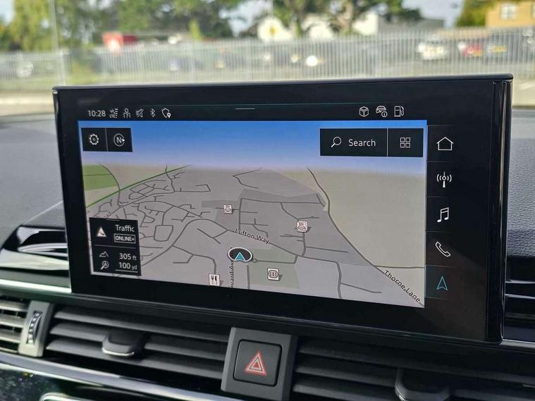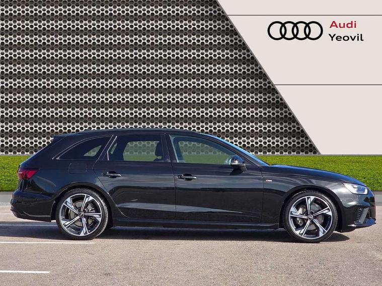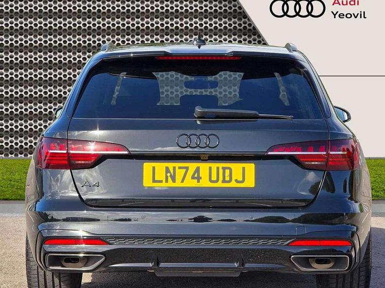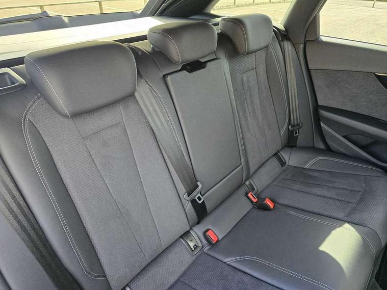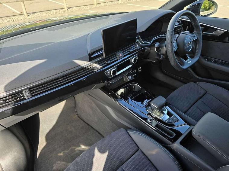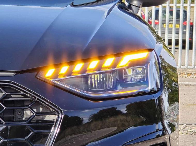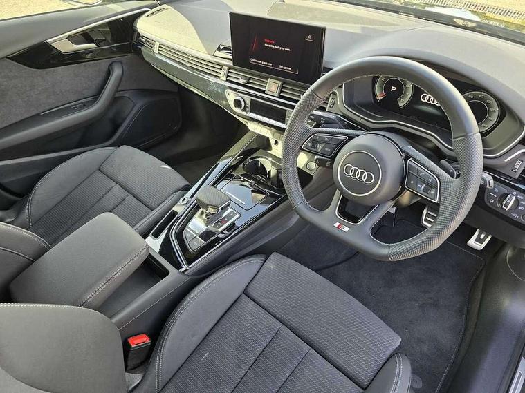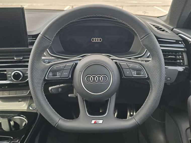 Audi connect safety and service (e-call), Audi drive select, Audi smartphone interface, Audi virtual cockpit, Automatic start-stop system with coasting functionality and efficiency programme, Bluetooth interface, Camera based traffic sign recognition, Electromechanical power steering, Email, calendar and text messages displayed via MMI, Front and rear parking sensors, Lane departure warning, MMI Navigation plus with MMI touch includes 10.1" high resolution colour MMI display, 3D map, Power operated tailgate, Rear view camera, Voice control system, 54 litre fuel tank, Sports suspension lowered by 23mm, 2 USB charging ports, 8 passive loudspeakers, DAB digital radio reception, Audi beam uses LEDs to project the audi logo onto the ground as you exit your A4, Auto dimming rear view mirror, Black Audi rings and black badging (with removed engine badging), Body colour door handles, Body colour front spoiler lip, Body colour side sill trim, Electric adjustable/heated/folding door mirrors with auto dimming, Exhaust tailpipes in dark chrome, Grained matt black side air inlets with matt aluminium silver inlay, High beam assistant, High gloss black B pillar trims and triangular rear door trim, LED headlights with LED rear lights + dynamic rear indicators + headlight adjustment and high beam, turning light + LED daytime running lights, LED third brake light, Privacy glass, Rain and light sensors, Rear diffuser in matt black with trim strip in matt aluminium silver, Rear side wing doors, Rear wiper, RS4 rear spoiler in body colour, S Line roof edge spoiler, Sport front and rear bumpers with side skirts, Variable intermittent front wash/wipe, Windscreen with acoustic glazing, 4 way electric lumbar support for driver and front passenger, 40/20/40 split folding 3 rear seat bench in 3 parts with rear centre armrest, Black carpets, Black cloth headlining, Black perforated leather gearknob, Contrast stitching on seats, steering wheel and gear lever gaiter, Deluxe 3 zone electronic climate control, Electric load area cover, Front and rear head restraints, Front centre armrest, Heated front seats, Illuminated door sill trims with S logo, ISOFIX child seat mounting and top tether, Manual seat adjustment, Single front passenger seat, Stainless steel pedals and foot rest, Black styling pack - A4 Avant, LED Interior light pack - A4/S4, 3 rear seatbelts, 6 airbags - Driver, front passenger, curtain and side windows, Attention and drowsiness assist, Electronic Stabilisation Control (ESC) including ABS, ASR and EDL, Hill hold assist, Multi collision brake assist, Pop-up bonnet for pedestrian protection, Pre sense city, Rear door child safety locks, Seatbelt monitoring, Warning triangle and first aid kit, Anti theft alarm, Anti theft wheel bolts, Central locking, Keyless Go, Piano black finish inlay, Tool kit, Tyre repair kit,