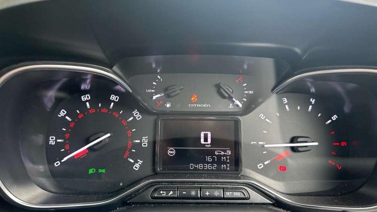 9" Touchscreen display, Citroen Connect Nav with 3D navigation, Coffee Break Alert, Cruise control with speed limiter, Driver instrument cluster including trip computer and rev counter with white text LCD display and white needles and chrome decor, eCall emergency call system, Lane departure warning system, Mirror screen with Apple CarPlay and Android auto, Outside temperature sensor, Rear parking sensors, Tailgate, Traffic signs and speed limit recognition and recommendation, Variable assistance power steering, Voice recognition for radio, navigation and telephone features, Bluetooth hands free and media streaming with USB socket, Citroen connected DAB radio with 6 speakers, Steering wheel mounted controls for stereo and telephone, 3D effect LED rear lights, Automatic Eco LED headlights, Automatic lights and windscreen wipers, Black roof bars, Body colour painted door handles, Chrome chevrons front grille, Electric front windows + one touch + anti-pinch, Electric rear windows with one touch/anti-pinch, Electrically adjustable door mirrors, Electrically folding door mirrors, Fog lights integrated into front bumper, Front and rear body coloured bumpers, Heated door mirrors, Integrated roof spoiler, LED daytime running lights, LED third brake light, Painted door mirrors to match colour pack, Rear side wing doors, Rear wiper, Roof aerial, Tinted rear windows and rear quarterpanel glass, Variable front intermittent wipers, 12V socket in rear of vehicle, 60/40 split folding rear seat, Automatic air conditioning, Boot light, Centre console with closed storage and chrome insert, Driver and front passenger cup holders, Driver and passenger sunvisor with courtesy mirror, Flex load/Pull out boot floor, Front and rear courtesy reading lights, Front and rear door storage, Front head restraints, Gloss black air vent surrounds and steering wheel insert, Glovebox with closable lid, Height adjustable driver's seat, Height and reach adjustable steering wheel, Manual handbrake with chrome insert, Passenger compartment headlight adjustment, Rear isofix mounting points (outside seats) with top tether, Row 2 - Three seats with individually adjustable head rests, Satin chrome interior door handles, Single front passenger seat, 3 point, height adjustable, pre tensioned front seatbelts, ABS with Electronic brakeforce distribution and Emergency braking assistance, Automatic illumination of hazard warning lights, Curtain airbags, Driver airbag, Drivers/passengers and rear seats unfastened seat belt warning, ESC (Electronic Stability Control), Front lateral airbags, Front passenger airbag, Front passenger airbag deactivation switch, Hill start assist function, Mono-tone horn, Rear door child safety locks, Three 3 point rear seatbelts, Tyre pressure monitor, Automatic door and boot locking when moving off with automatic unlocking in case of impact, Automatic locking of the vehicle (after 30 seconds if door or boot unopened), Immobiliser, Perimetric and volumetric anti theft alarm, Remote central locking + deadlocks, Vehicle locater function (headlights illuminate when button on key pressed),