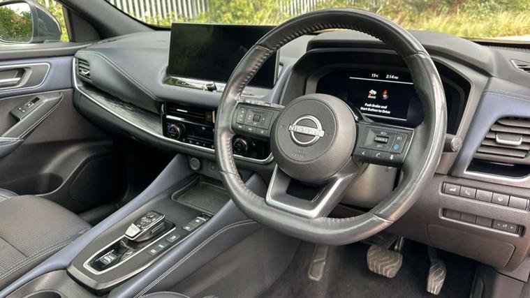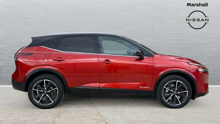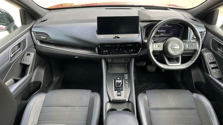 Advanced windscreen head up display, Android auto/Apple CarPlay (Wired), Blind spot warning, Drive modes (sport, normal, eco), Electric speed sensitive power steering, Emergency and breakdown call, Front and rear parking sensors, Full Digital 12.3" TFT Digital Combimeter, Google maps services - search, weather, 3D maps and Google street view, Hands free power tailgate, Idle stop/start system, Intelligent around view monitor, Intelligent Cruise control (ICC), Intelligent driver alert system, Intelligent forward collision warning, Intelligent lane intervention, Lane departure prevention, Lane departure warning system, Lane keep assist, Moving object detection, Nissan connect 12.3 inch touchscreen infotainment system, Nissan connect navigation, ProPILOT with Navi-Link, Push button starter, Rear cross traffic alert, Rear view camera, Remote control services - door locks, lights, horn and car locator, Telematics - notifications and connectivity services, TomTom live traffic services, Traffic sign recognition with legal speed adjustment, Trip computer, Virtual personal assistant and firmware over the air capability, Wireless apple carplay, Wireless charging pad, 6 speakers, AM/FM audio system with DAB, Bluetooth audio streaming, Front USB connections (Type-A and Type-C), Rear USB charging only ports (Type-A and Type-C), Auto dimming rear view mirror, Auto rear wiper when reversing, Automatic hazard signal with emergency stop signal, Body colour mirror caps, Body coloured door handles, Bodyside mouldings, Chrome side window finisher, Door handle with button, e-POWER badging, Electric auto folding door mirrors, Electrically adjustable and heated door mirrors with LED turn indicator, Follow me home headlights, Front and rear LED turning signals, Headlights auto levelling system, Intelligent auto headlights, LED daytime running lights, LED headlights with adaptive driving beam, LED rear lights, One touch front and rear electric windows with remote opening and closing, Partially body coloured bumpers, Privacy glass, Rear bumper with graphite insert, Rear reversing light (bulb lighting), Rear roof spoiler, Rear side wing doors, Rear styling plate, Shark fin antenna, Splash free rain sensing wipers, Super UV and infrared cut glass, Thermaclear heated windscreen, Three blink turn signal, 12v power socket in dashboard and luggage, 2x Rear coat hooks, 3 bench rear seats in 2nd row, 3 rear headrests, 4 folding assist grip, 6 Luggage hooks - 4 on floor, 2 on side, 60/40 split folding rear seat bench, Ambient lighting around centre console, Ambient lighting in front doors, Centre console storage tray, Chrome interior door handles, Cloth/syntech leather monoform upholstery, Dark black/blueish PVC wrapping, Dark headlining, Driver and front passenger sunvisors with illuminated vanity mirrors, Driver seat back pocket, Dual zone automatic climate control with pollen filter, e-POWER shifter, Electrically adjustable driver seat, Electrically adjustable lumbar support for driver, Front and rear door storage, Front centre console and armrest, Front cupholders x 2, Front door with bottle holders, Glovebox with light, Hard trunk cover, Heated front seats, Heated steering wheel, Height adjustable driver's seat, Height adjustable front headrests, Height adjustable passenger seat, Leather steering wheel, Luggage board system, Luggage space lighting, Manual lumbar support on passenger seat, Manually adjustable passenger (slide recline + lifter), Multifunction steering wheel, Passenger seat back pocket, Rear armrest with 2 cupholders, Rear door bottle holders, Single front passenger seat, Soft PVC kneepad, Steering wheel switches, Tilt/telescopic adjustable steering wheel, Two rear isofix child seat anchorage points with top tether, Welcome light and doors with console tray ambient lighting, Glass roof pack with roof rails - Qashqai, 3x3 point rear seatbelt pretensioners + load limiters, ABS with EBD and brake assist, Active brake limited slip, Auto hold function, Child locks on rear doors, Curtain and front side, far side airbags, Driver and passenger airbags, Driver, passenger and 2nd row rear seat belt reminder, Electronic parking brake, Front seatbelt pretensioners + load limiters, Height adjustable front seatbelts, Hill start assist, Intelligent blind spot intervention, Intelligent front emergency braking with pedestrian, cyclist recognition and junction assist, Intelligent rear automatic braking, Tyre pressure monitoring system, Vehicle dynamic control, Capless fuel filler, Engine immobiliser, Intelligent Key, Remote central door locking with deadlocking, Thatcham Cat.1 alarm, Interior instrumental panel C finisher, 19" Diamond cut alloy wheels, Tyre puncture repair kit,