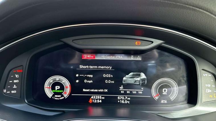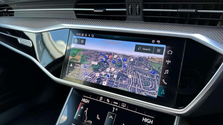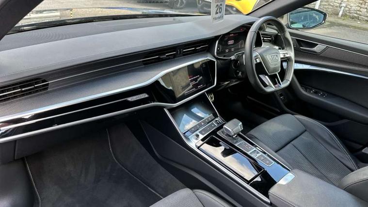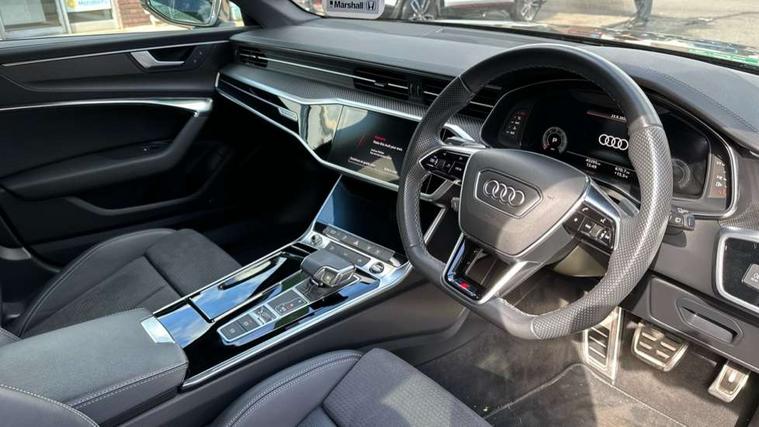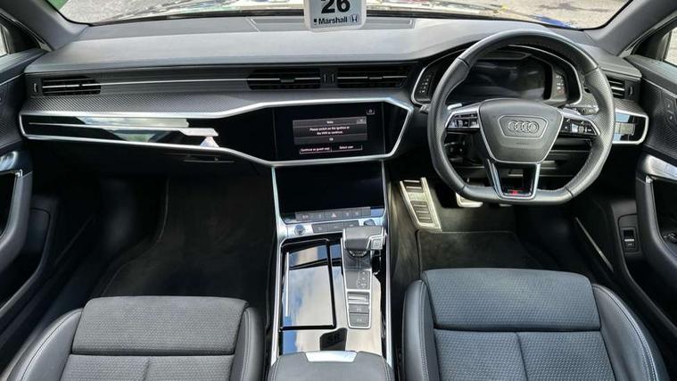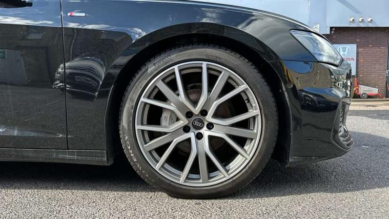 7" high resolution colour driver information display system, Audi connect safety and service (e-call), Audi connect with Amazon Alexa Integration, Audi drive select, Audi parking system plus - acoustic and visual park assist system for front and rear, Automatic start/stop system with coasting functionality, Bluetooth interface, Lane departure warning system, Power operated tailgate, Progressive steering, Rear view camera, Service interval indicator, Smartphone interface includes wireless Apple carplay/Android Auto, Voice control system, 12V Mild hybrid, 24 litre AdBlue tank, Diesel particulate filter, Quattro on demand, Sports suspension, Audi front music interface, Audi sound system, Auxiliary input socket, DAB Digital radio, USB connection, Black roof rails, Electric front/rear windows, Frameless auto dimming interior rear view mirror, Front intermittent wipers, Gloss black highlights on the exterior area of the Audi Single frame, Gloss black highlights on the front and rear bumpers, Gloss black highlights on the radiator grille, Gloss black highlights on the side windows trim strips, Headlight washers, Heat insulating darkened glass in side and rear windows, Heat insulating glass in windshield, LED signature front daytime running light, LED third brake light, Matrix LED headlights, Matt black rear diffuser with diffuser strip and tailpipes in chrome, Matt black side air intake grille with inlay in matt aluminium, Privacy glass, Rain and light sensors, Rear roof spoiler, Rear side wing doors, Rear wiper, Signature rear LED light design, 2 zone deluxe electronic climate control, 4 way electric lumbar support for driver and front passenger, 40/20/40 split folding 3 rear seat bench in 3 parts with rear centre armrest, Black cloth headlining, Black front and rear carpet floor mat, Black steering wheel insert, Electrically adjustable front seats with driver memory, Front centre armrest, Front head restraints, Heated front seats, Height/reach adjust steering wheel, Illuminated door sill trims with S logo, Illuminated sun visors with vanity mirrors, ISOFIX child seat mounting and Top Tether with front passenger airbag deactivation, Leather gear knob, Luggage compartment system, Rear headrests, Single front passenger seat, Stainless steel pedals and foot rest, LED Interior Ambient Lighting Pack - A6, Non smoking pack - A6, Technology pack - A6, 3 point seatbelts on all seats, Airbags - Front side, front and rear including head, Audi pre-sense front, Black seatbelts, EBD - Electronic brakeforce distribution, Electromechanical parking brake, Electronic Stability Control (ESC) including ABS, ASR and EDL, Extended pedestrian protection measures, Manual child proof rear door locks, Seatbelt monitoring, Tyre pressure warning light, Warning triangle and first aid kit, Anti theft alarm with tow away protection, Anti-theft wheel bolts and wheel loosening detection, Immobiliser, Keyless Go, Remote central locking, Carbon twill inlays, 20" 5 V spoke star design Audi sport cast aluminium alloy wheels in matt grey look,