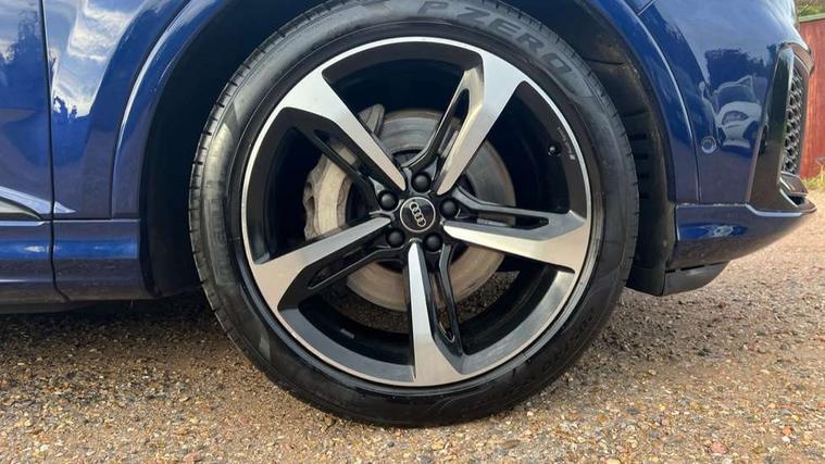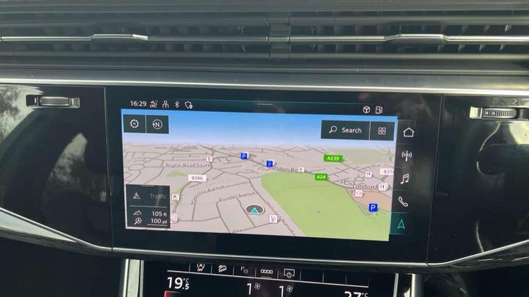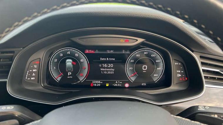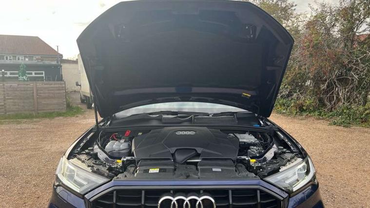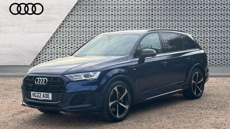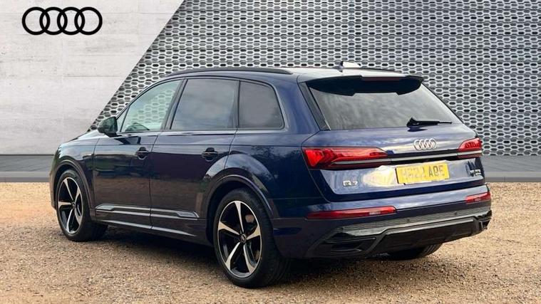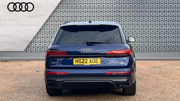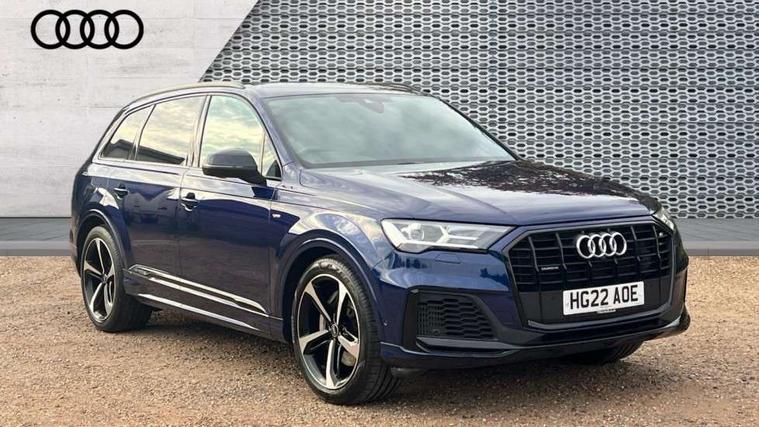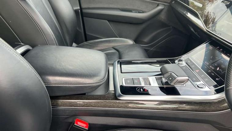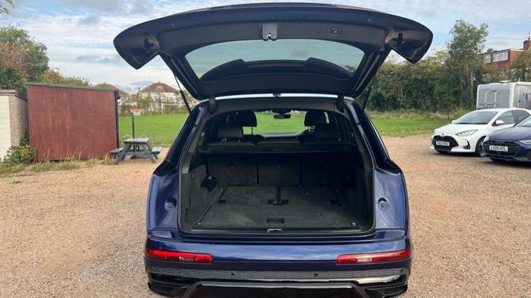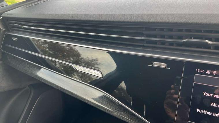 Audi connect safety and service (e-call), Audi connect with Amazon Alexa Integration, Audi drive select (Auto, Comfort, Dynamic, Efficiency, Individual, Off-road and All road), Audi smartphone interface includes wireless Apple carplay/Android Auto, Bluetooth interface, Camera based traffic sign recognition, Electromechanical steering, MMI navigation plus with MMI touch screens includes 10.1" and 8.6" screens with haptic feedback, Natural voice recognition, Parking system plus with 360 degree display (front, rear and side sensors) - acoustic and visual park assist system, Power operated tailgate, Rear view camera, Start/stop system, 48V Mild hybrid technology, 85 litre fuel tank, Adaptive air sports suspension, Quattro all wheel drive with self locking centre differential, Audi music interface - front 2 USB-C ports with charger and data functions, Audi sound system with 6 channel amplifier, 180 watt amplifying capacity and 10 loudspeakers including subwoofer, DAB digital radio module, 3rd brake light, Audi matrix LED headlights with dynamic front and rear indicators, Auto dimming frameless rear view mirror, Black roof rails, Bumpers in contrast paint scandium grey finish includes door trim and wheel arch trim strips, inlays in door strip contain quattro embossing, Electrically adj heated/folding + automatically dimming exterior mirrors with memory + automatic kerb side function for passenger side exterior mirror, Heat insulating glass in windshield, Integrated LED indications in door mirrors, LED daytime running lights, LED rear tail lights, Privacy glass - dark tinted rear and rear side windows from B-pillar backwards, Rear side wing doors, Rear wiper, 2 seat bench in 3rd row, 3 seat bench in 2nd row, 4 zone deluxe automatic climate control, 7 seat layout with ISOFIX points for the front passenger seat and rear passenger seat, Black cloth headlining, Comfort front centre armrest, Electric adjustable front seat with 4 way lumbar support, driver memory functionality, Folding rear seats, Front head restraints, Front/rear floor mats, Heated front seats, Illuminated door sill trims with S logo, LED interior ambient lighting, Luggage compartment cover, Luggage compartment sill protection in stainless steel, Rear head restraints, Single front passenger seat, Stainless steel pedals, Sunvisors with illuminated vanity mirrors, Tool kit, Titanium black styling pack - Q7/SQ7, 3 point seatbelts on all rear seats, Audi pre sense front, Child locks on rear doors, Driver and front passenger, front side and curtain airbags, Electromechanical parking brake, Electronic Stabilisation Control (ESC) including ABS, ASR and EDL, Extended pedestrian protection measures, Hill hold assist, Seatbelt monitoring, Tyre pressure loss indicator, Warning triangle and first aid kit, Anti theft alarm, Anti-theft wheel bolts and wheel loosening detection, Keyless Go, Remote central locking, Polished oak trim with grey finished, Tyre repair kit,
