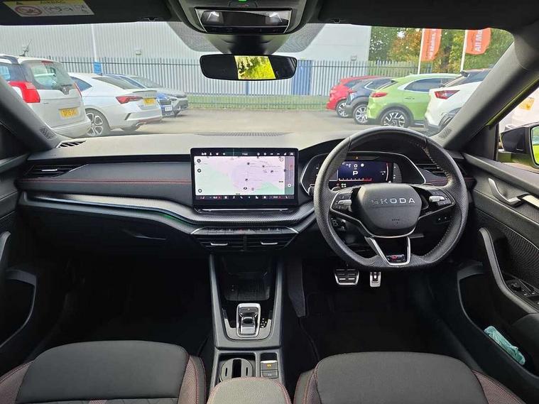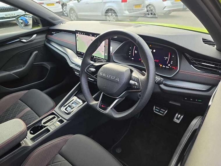 1x USB Typc C port in rear view mirror, 4x USB Type C ports - 2x in front centre console and 2x in rear (45W), Drive mode selection, Driver fatigue sensor, eCall emergency system, Electrically operated boot with virtual pedal, Front assist system, Progressive dynamic steering, Traffic sign recognition, Turn Assist, Virtual Cockpit - 10.25" digital display, Voice control system, Wireless charging (15W) with cooling function, Wireless SmartLink for Apple CarPlay and Android Auto, Electronically controlled limited slip differential, vRS suspension, 13" touchscreen display with navigation, DAB Digital radio, Aero front windscreen wipers with intermittent function, Auto dimming rear view mirror, Black sport exhaust pipes, Body colour bumpers, Body colour door handles, Electric front and rear windows, Exterior gloss black sports styling including front grille, window surrounds, door mirrors and badging, Gloss black diffuser, Gloss black spoiler, Heated rear windscreen, High beam control, High level third brake light, Ice scraper in fuel cap, LED daytime running lights, Logo projection in front doors, Rain and light sensors, Rear fog light on one side, Rear privacy glass, Rear side wing doors, Unique vRS bumpers and exterior styling, 12 volt socket in boot, 3 rear headrests, 3 seat bench in 2nd row, 4 foldable roof handles, Aluminium pedals, Front head restraints, Front sport seats, Heated front seats, Illuminated glovebox, Interior door handles in dark chrome, Jumbo Box storage, Luggage compartment lighting x2 lights, Mechanical rear seat release from boot, Parcel shelf - folding, Single front passenger seat, Steering wheel in black leather with black stitching, Storage compartments in left and right of boot, Sun visors with mirrors, Sunglasses storage, Ticket holder, Umbrella in door panel, Unsplit rear bench seat, split folding backrest with centre armrest with cupholder, Waste bin in door panel, Comfort package - Octavia, Family package - Octavia, Light and view package plus - Octavia, vRS Design Selection pack - Octavia, 3x3 point rear seat belts, Alarm with interior monitoring, tilt sensor and back up horn, Curtain airbags and front side airbags, Driver and front passenger airbags, Drivers knee airbag, Electronic parking brake, ESC including ABS, EBV, MSR, ASR, EDS, HBA, DSR, Front central airbag, Hill hold assist, ISOFIX on front passenger seat and outer rear seats, Passenger airbag deactivate switch, Red brake calipers, Three point seat belts in front and rear, Two tone horn, Tyre pressure monitor, Visual and acoustic seat belt reminder, Warning reflectors in front door, Anti-theft wheel bolts, Keyless start/stop, Remote central locking, Gloss black air vent surrounds, 19" Elias anthracite alloy wheels,