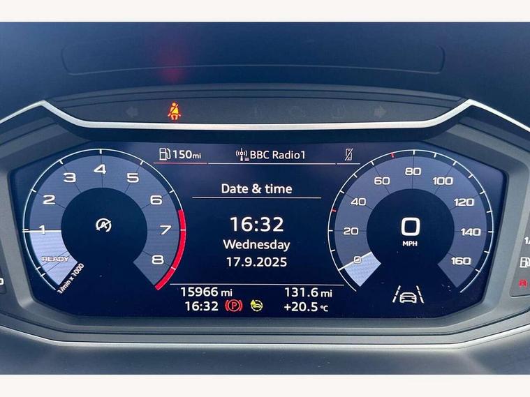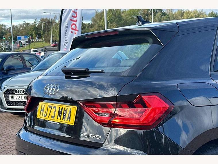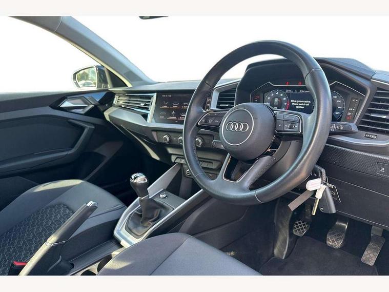 10.25" Digital instrument cluster display classis style instrument dials + speed, odometer, time, outside temperature, telephone menu + fuel level warning, Audi smartphone interface with connect compatible smartphone via USB directly MMI display + Nav, music, third party apps controlled via MMI controller, Automatic start/stop system, Bluetooth interface, Cruise control, Driver's information system, Electromechanical power steering, Emergency e-call, Lane departure warning system, Rear parking sensor, Service interval indicator, Speed limiter, Voice control system, Washer fluid level indicator, Dynamic suspension, 2 x USB type C connection points, 6 passive loudspeakers, DAB Digital radio, MMI radio plus with 10.1" colour MMI display screen and MMI touch, Auto dimming rear view mirror, Body coloured bumpers, Body coloured door mirrors, Electric front and rear windows, Electrically adjustable, heated, folding door mirrors with integrated LED side indicator, Front side air inlets in grained matt black and C frame in anthracite black, Heat insulating glass windscreen and side windows, Heated rear windscreen, High level LED brake light, LED headlights with LED rear lights + dynamic rear indicators + headlight adjustment and high beam, turning light + LED daytime running lights, Radiator grille and rear diffuser in matt anthracite black, Radiator protective grille frame in matt aluminium silver, Rain and light sensors, Rear fog lights, Rear side wing doors, Rear wiper, Side front spoiler lips in grained matt black, 12V socket in centre console with two cup holders, 3 rear seats with headrests, 3 seat bench in 2nd row, 3 spoke leather multifunction plus steering wheel, 40:60 Split folding rear seat or folded fully, Black front and rear floor mats, Door sill trims with aluminium inlay, Driver and passenger seat with manual height adjust with forward and backwards adjustment, Front head restraints, Front passenger seat, Grey cloth headlining, Height and reach adjustable steering wheel, ISOFIX child seat mounting for front passenger and outer rear seats including top tether attachment point of outer rear seats, Leather gear knob with aluminium trim, Leather handbrake grip, Luggage compartment light with front and rear reading lights, Manual air conditioning, Manually adjustable lumbar support in front seats, Novum cloth upholstery with front sport seats, Luggage compartment pack - A1, 3x3 point rear seatbelts, Audi pre-sense front with pedestrain and cyclist recognition, Brake assist function, Driver and front passenger airbag with front side and head airbags, Electronic Stability Control including ABS, EBD, ASR and EDL, Front passenger airbag deactivation switch, Hill hold assist, Manual rear child locks, Seatbelt height adjustment for front seats, Seatbelt monitoring, Tyre pressure warning light, Warning triangle and first aid kit, Anti theft alarm, Anti theft wheel bolts and loose wheel warning, Immobiliser, Remote central locking with 2 foldaway keys, Aluminium trim for control switches, air vents and digital instrument cluster, Black dashboard, Silver grey accent areas including air vents, door handle recesses and centre console in diamond paint finish, Slate grey inlays polygon structure in fine paint finish,