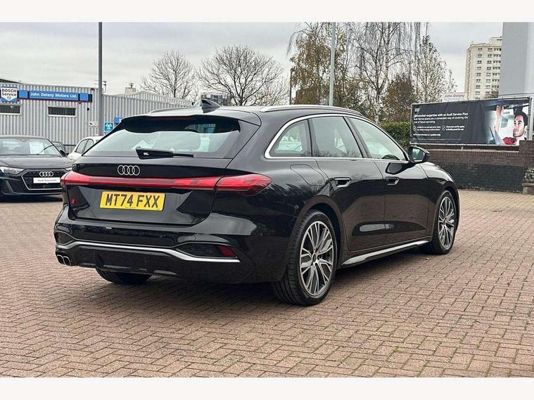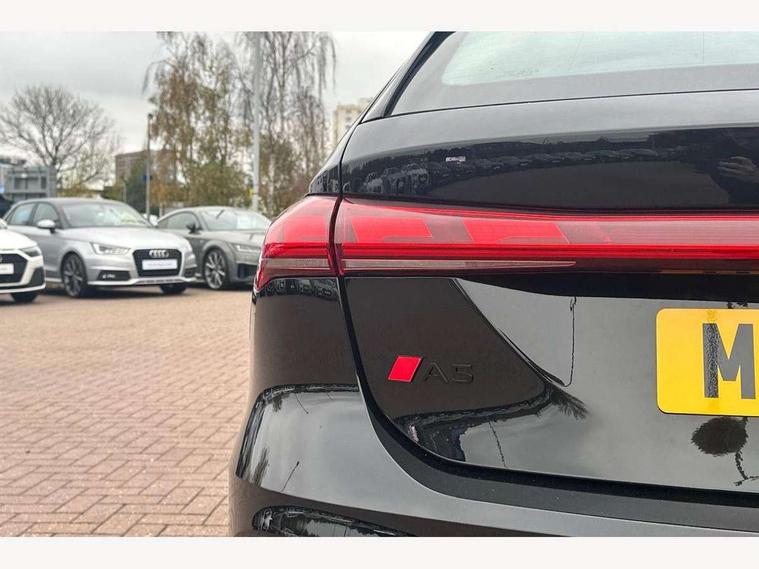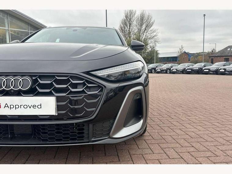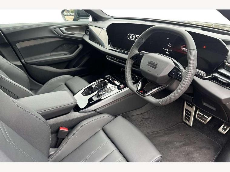 Adaptive cruise control, Advanced driver attention and fatigue montior, Audi application store, Audi assistant, Audi connect emergency call and service, Audi drive select, Audi smartphone interface, Audi virtual cockpit plus with 11.9" OLED colour display, Automatic start/stop system with coasting functionality, Camera based traffic sign recognition, Intersection assist, Lane change assistant with exit warning system, rear cross traffic alert and rear turn assist, Lane departure warning with emergency assist, MMI 10.9" front passenger touch display, MMI navigation plus with high resolution 14.5" OLED touchscreen colour display, Park assist plus, Parking system plus with 360 display, Progressive steering with servotronic, Swerve assist and turn assist, Top view camera, Traffic sign based speed limiter, Sports suspension lowered by 20mm, 2 USB-C ports in both the front and rear, Audi sound system impressive sound with 10 loudspeakers including centre speaker and subwoofer, 6-channel amplifier with a total output of 180 watts, DAB digital radio reception, Smartphone compartment with wireless charging, Aluminium window trims, Auto dimming rear view mirror, Black door handles, Black door mirrors, Black roof rails, Dark chrome-plated tailpipe trims, Door mirrors - electrically adjustable, heated, folding and auto dimming on both sides, Front and rear electric windows, Front door sill trims with aluminium inlays, illuminated with 'S' logo, Headlight cleaning system, High beam assist, LED daytime running lights, LED rear lights pro incl. dynamic rear indicators and illuminated light strip with animated coming and leaving home function, LED third brake light, Matrix LED headlights with eight light signatures selectable via the MMI or the myAudi app, Privacy glass, Rear and side windows with heat insulating glass, Rear side wing doors, Rear wash/wipe, Red S line rhombus badging on rear, S line bumpers, radiator grille and diffuser in phantom black and diffuser insert in matt anthracite, White rhombus logo projection light in exterior mirrors, Windscreen with acoustic glazing, 3 rear headrests, 3 seat rear bench, 3 spoke leather steering wheel with multi-function buttons with touch control, flattened on top and bottom, with S badging and contrast stitching, 3-zone automatic climate control, 40:20:40 split folding rear seat bench with centre armrest and cup holders, Comfort front centre armrest, Electrically adjustable front seats, Front and rear floor mats, Front sport seats with integrated headrest and S embossed logo, Headlining in black cloth, Heated front seats, i-Size child seat mounting on the front passenger side and i-Size and top tether on the outer rear seats, Luggage compartment lid, electrically opening and closing, Manual steering column height and depth adjustment, Memory function for driver seat, Single front passenger seat, Stainless steel pedals and footrest, Steering wheel grips in perforated leather and shift paddles, Ambient lighting package plus - A5, Black styling package plus - A5, 3x3 point rear seat belts, Acoustic vehicle alerting system, Convenience key with safelock, Driver airbag, Electric child safety locks, First aid kit with warning triangle and vests, Front emergency brake assist, Front passenger airbag, Front passenger airbag deactivation, Hill hold assist, Occupant detection in rear seat area, Proactive passenger protection system for front, sides and rear, Red brake calipers, Seat belt monitoring with rear seat occupant reminder, Side airbags in front and rear with head airbag system and front interaction airbag, Tyre pressure loss indicator, Anti theft alarm, Anti-theft wheel bolts, Keyless Go, Accent surfaces and control buttons in gloss black, Black dashboard with contrast stitching, Softwrap in Dinamica with contrast stitching, Upper and lower interior elements in dinamica microfiber, 20" 5 arm fold design Audi sport alloy wheels in silk matt grey and gloss turned finish, Tyre repair kit,