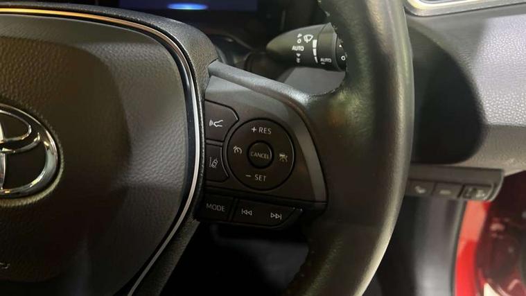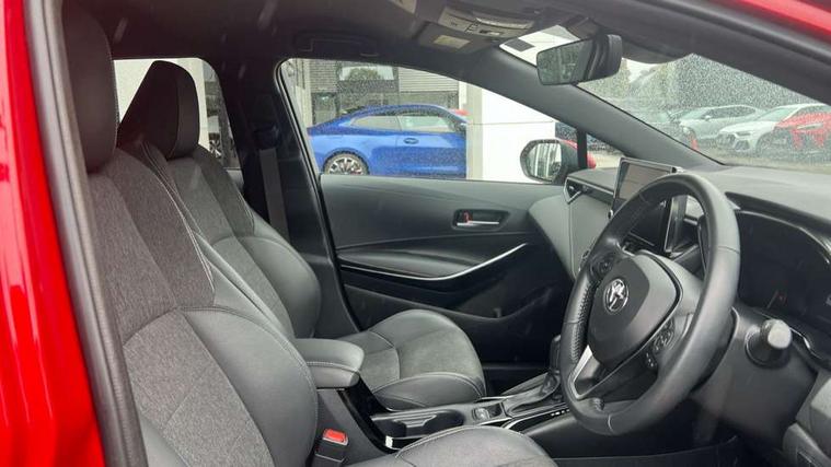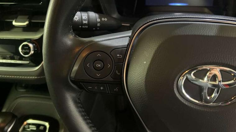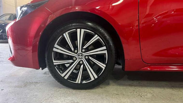 7" Multi information display screen, Bluetooth telephone connectivity, Connected car functionality upgrade, tracker, remote status and e-care, Door trim and centre console material, Dynamic radar cruise control (with RSA) including switch on steering wheel, E-call, Electrically assisted power steering, EV drive indicator, Intelligent park assist, Lane Departure Alert (LDA) switch on steering wheel, Memory on adjustable speed limiter, Push button start, Reversing camera, Smartphone integration with Apple CarPlay and Android auto, Gasoline particulate filter, Vehicle Stability Control (VSC), 6 speakers, 8" Touchscreen with MM19 Multimedia system and voice recognition, AM/FM radio, DAB Digital radio, Toyota touch 2 with go navigation system, USB and Aux in connectors + 12V front outlet, USB charging port in centre storage box, Aluminium roof rails, Anti-jam protection on power windows, Auto dimming inside rear view mirror, Auto up and down function on all power windows, Automatic folding mirrors, Automatic headlights with high beam assist, Black metallic surround on lower front grille, Black toyota logo in front, Body colour rear spoiler, Body coloured bumpers, Body coloured door mirrors, Body coloured outside door handles, Follow me home headlights, LED daytime running lights, LED front fog lights, LED Headlights, LED High mounted stop light, LED rear combi lights with LED lightguide, Noise reduction layer on front windows, Power adjustable heated door mirrors, Power front windows, Power rear windows, Privacy glass, Rain sensing wipers, Rear side wing doors, Rear window defogger, Rear window wiper, Reverse tilting door mirrors, Shark fin antenna, Time adjustment on intermittent wiper, Turning signal integrated indicators in door mirrors, Unique lower skirt, Unique side rocker with black insert, UV-filter on driver and passenger windows, 12v power outlet - luggage side, 3 rear headrests, 3 seat bench in 2nd row, 3 spoke leather steering wheel + gear knob, 60/40 split folding rear seat, Adjustable speed limiter switch on steering wheel, Audio, multimedia and telephone switches on steering wheel, Blue ambient interior illumination to centre tray, front cup holders and front door trim, Boot light, Boot underfloor storage, Clean air filter, Driver and front passenger personal light, Driver and passenger assist grip, Driver and passenger sun visor with mirror and light, Dual sided deck board in boot, Dual zone automatic air conditioning with ECO mode switch, Fabric/synthetic leather upholstery, Front and rear cup and bottle holders, Front and rear door pockets, Front head restraints, Front passenger seat, Heated driver and front passenger seats, Illuminated entry system in room lamp, ISOFIX seat fixing (2 fixings on rear outer seats), Leather gear shift with satin chrome on gear shift console, Leather style armrests, Manual height adjustable for driver and front passenger seat, Passenger seat back pocket, Pollen filter, Power adjustable lumbar support on driver seat, Power window switches with satin chrome inserts, Rear armrest with 2 cupholders, Rear passenger air vents, Rear passenger coat hooks (2), Rear passenger personal lights, Retractable tonneau cover with luggage partition net, Satin chrome inside door handles, Shopping bag hooks in luggage compartment, Side storage in boot, Sliding armrest on centre console box, Slow opening glovebox with lights, Tilt/telescopic steering column, Tonneau cover with under floor storage, Voice recognition switch on steering wheel, Whiplash Injury Lessening (WIL) feature (active headrest) for seats, Parking pack - Corolla, Toyota safety sense 2 pack - Corolla, 3x3 point rear seatbelts, Adjustable driver and front passenger seat belt extender to top anchor point, Anti lock braking system + Electronic brake force distribution, Brake assist function, Child locks on rear doors, Downhill Assist Control (DAC), Electronic parking brake, Emergency brake light signal (EBS), Front passenger airbag on/off switch, Front seatbelt reminder, HAC - Hill start assist control, Rear seat belt reminder, Seatbelt pretensioners and force limiters, Supplemental restraint system (SRS) 7 airbags - dual driver, dual side curtain, side impact and driver knee airbags, Traction control, Tyre pressure warning system, Acoustic vehicle alert system (AVAS), Alarm with motion sensor and immobilizer, Remote central locking + deadlocks, Smart entry, Satin chrome dash trim, Soft touch texture on upper dashboard, Stitching on lower dashboard, Tyre repair kit, Unique wheel finish with red wheel cap,